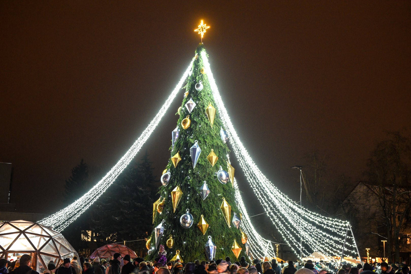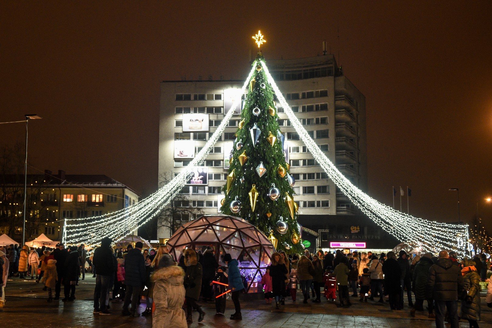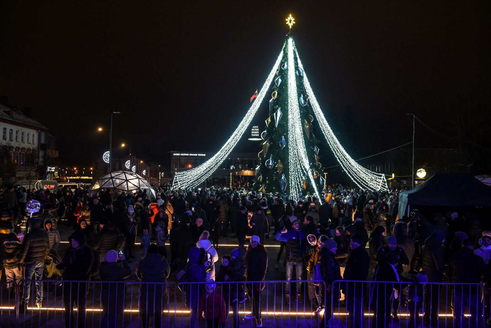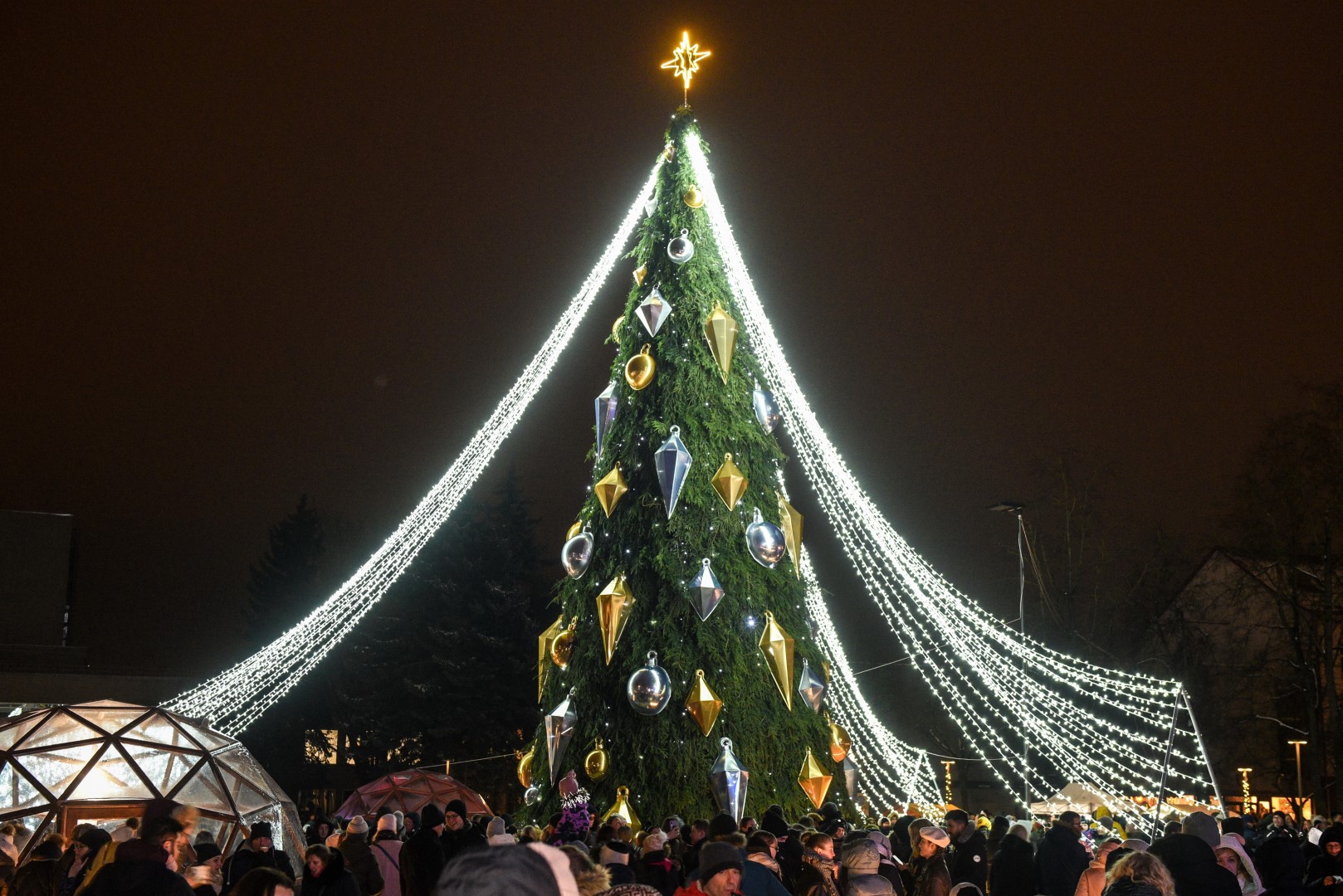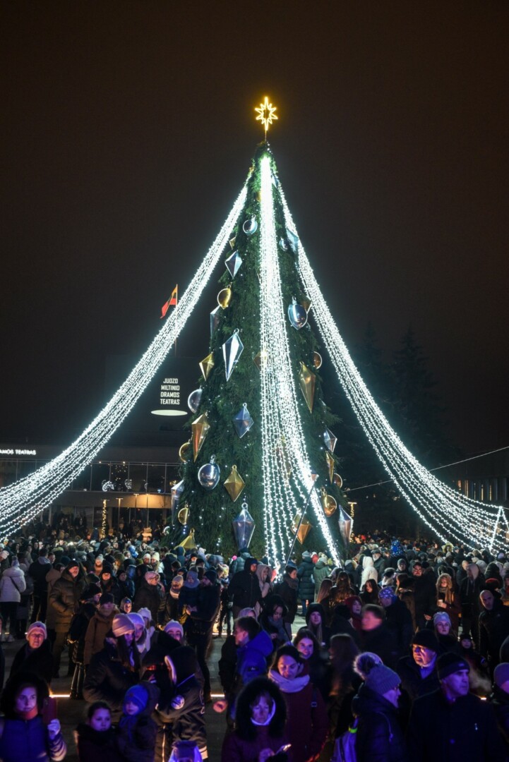 Švenčių dvasia užliejo Panevėžį – penktadienio vakarą Laisvės aikštėje sužibo Kalėdų eglė.