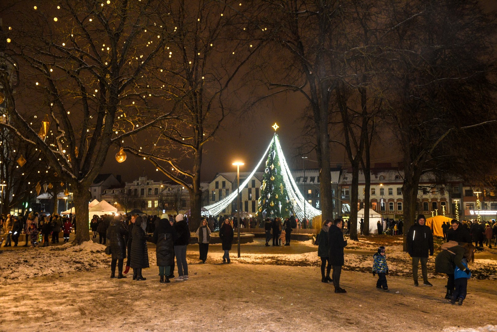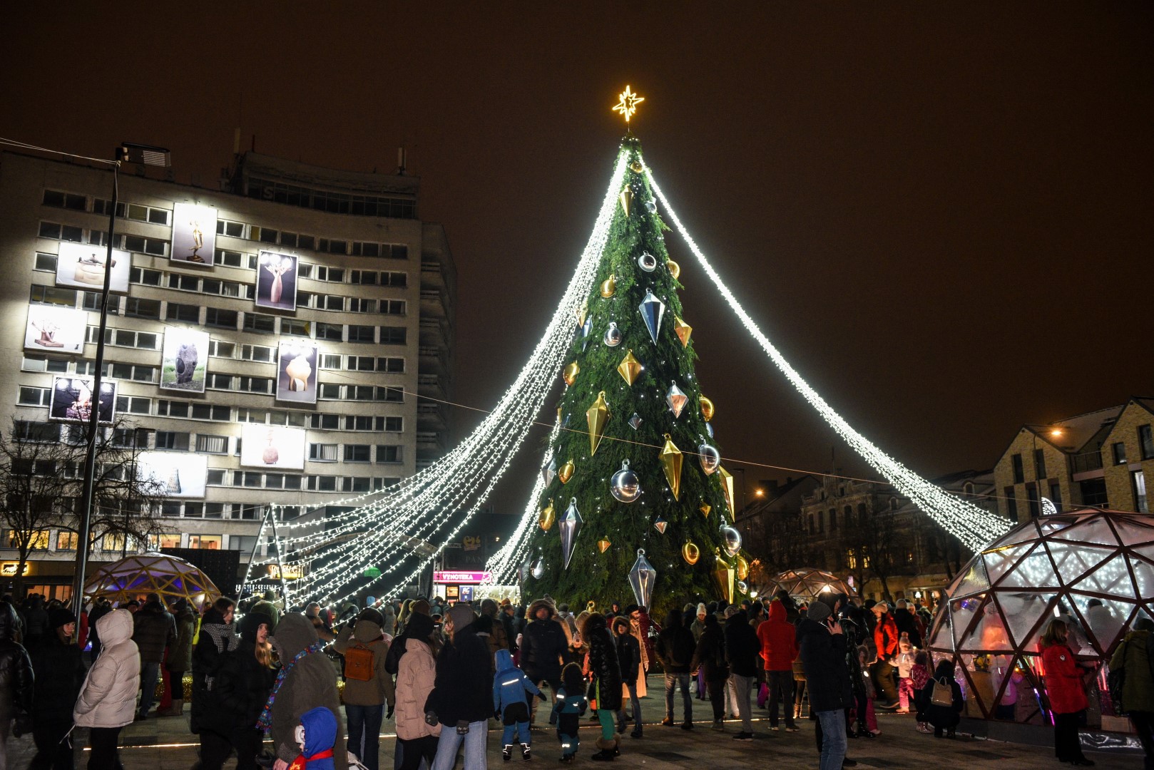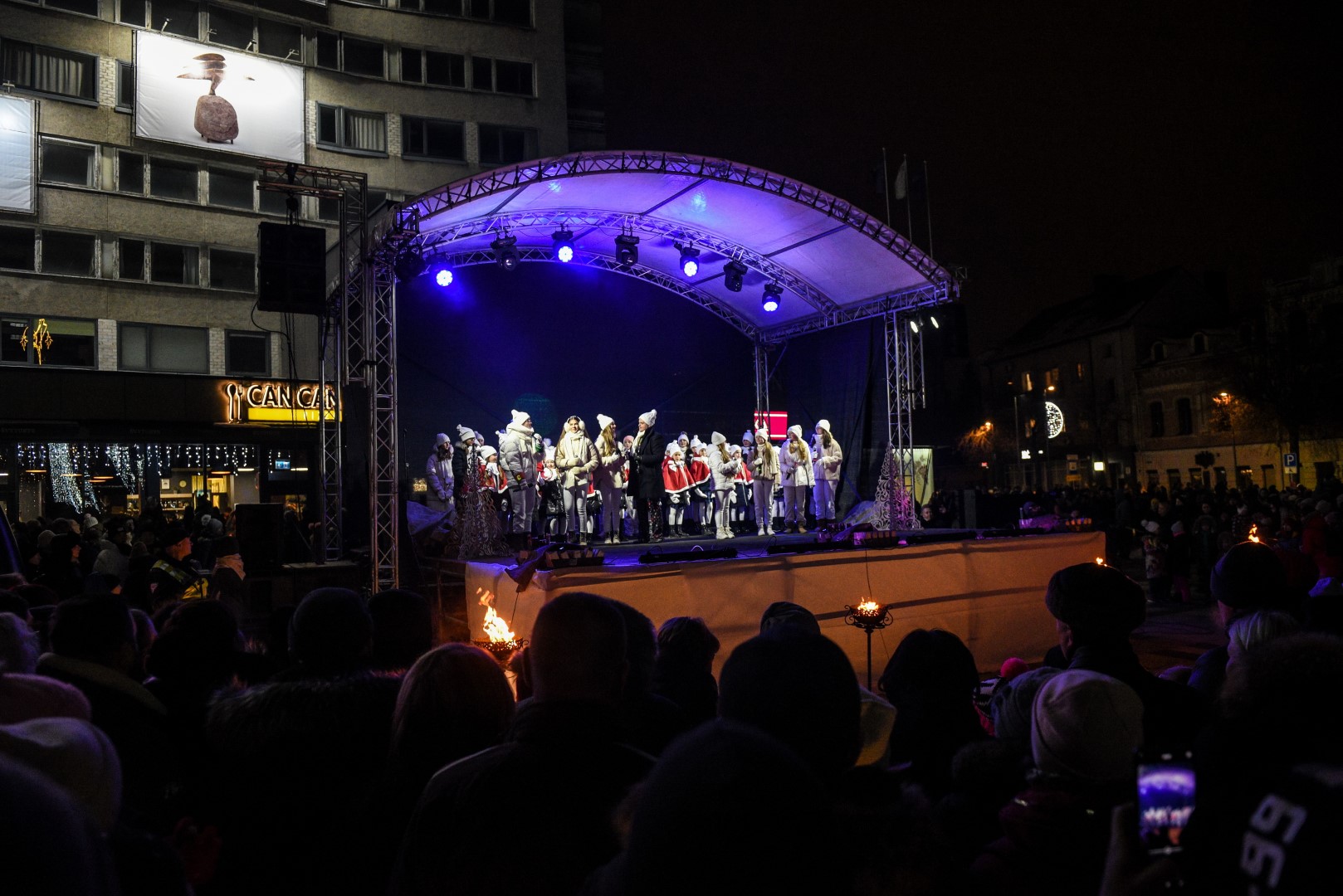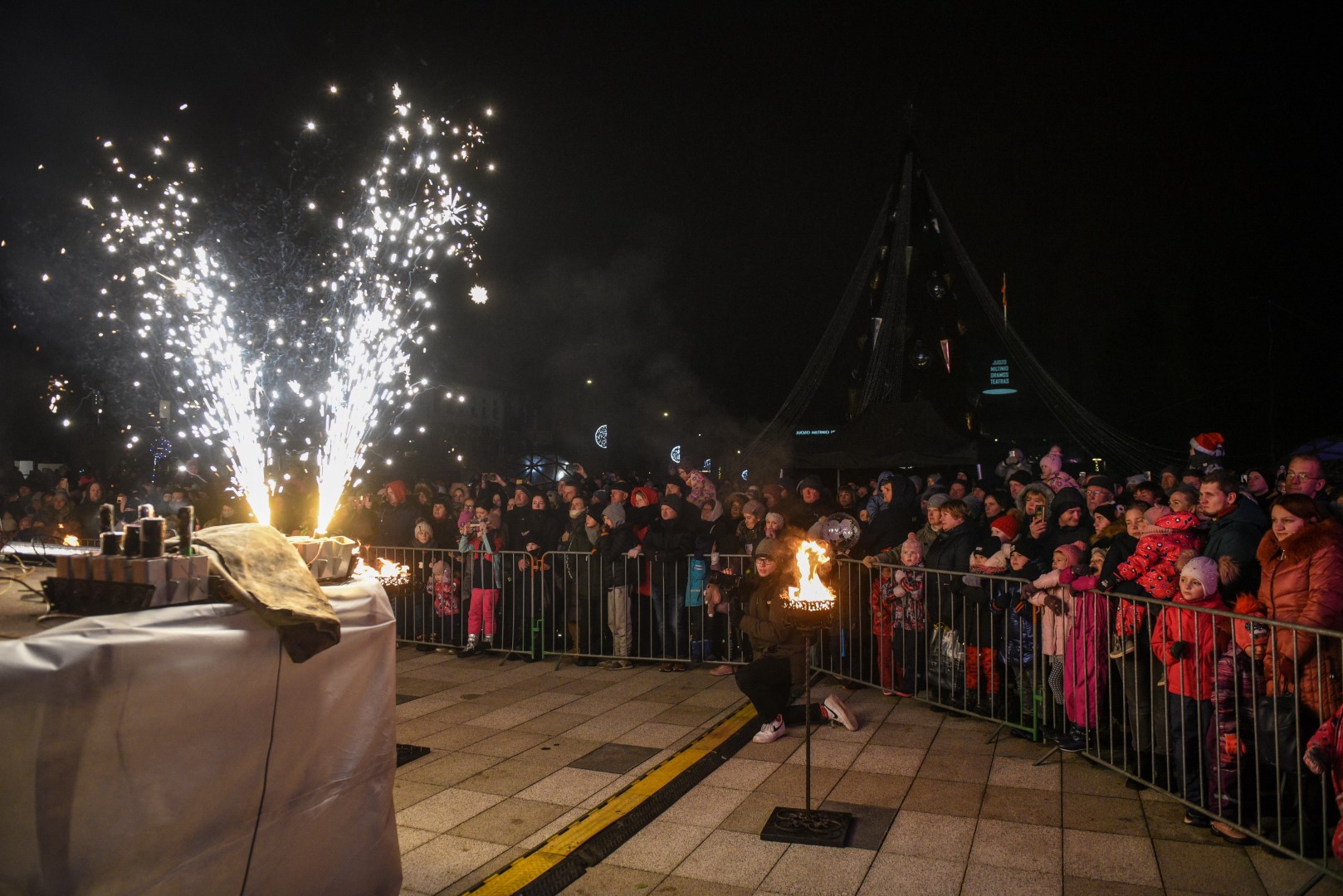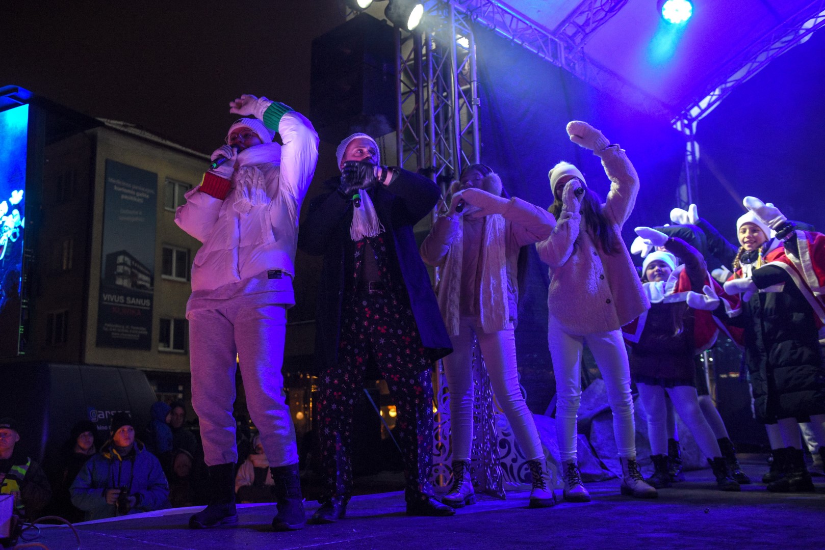 Švenčių dvasia užliejo Panevėžį – penktadienio vakarą Laisvės aikštėje sužibo Kalėdų eglė.