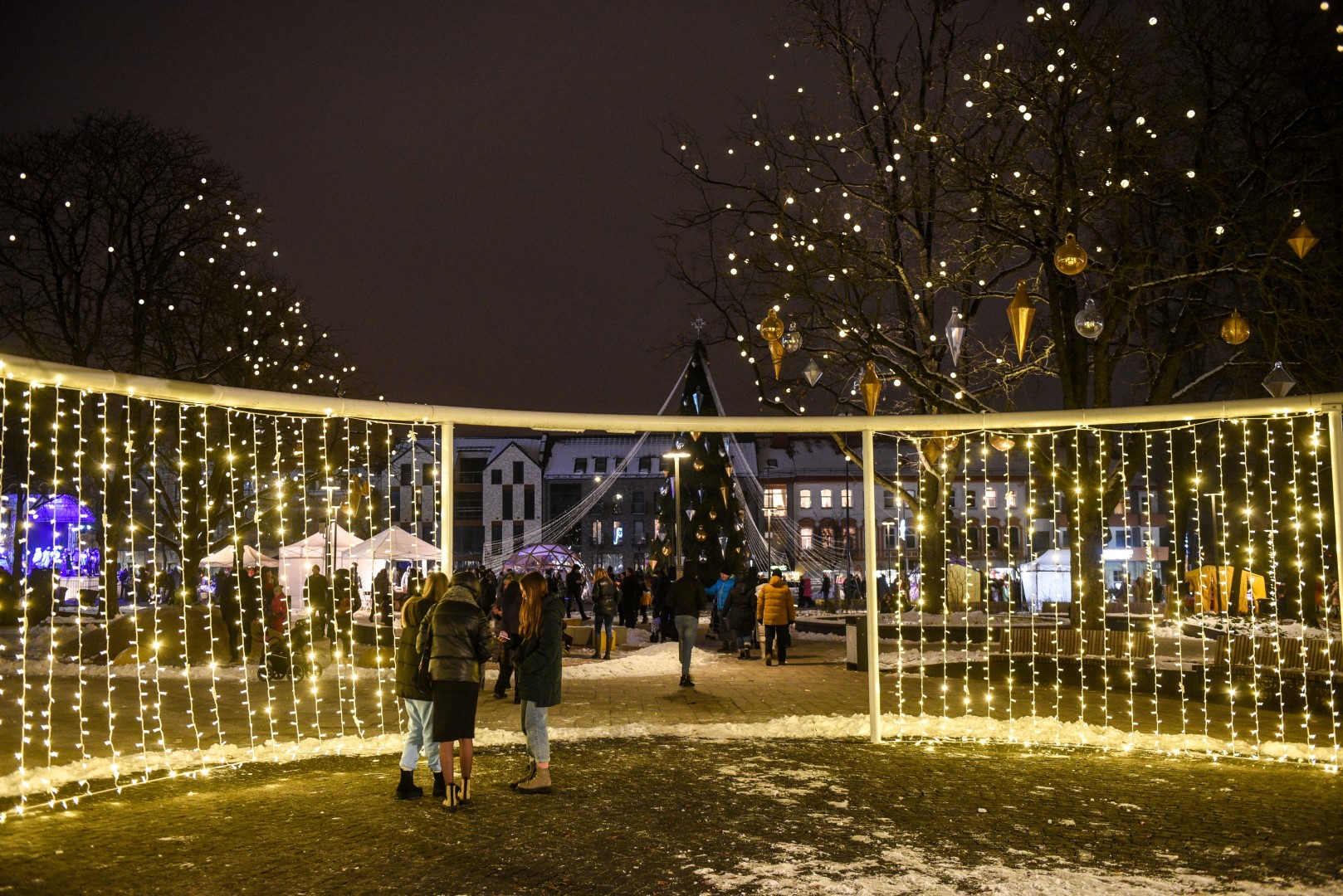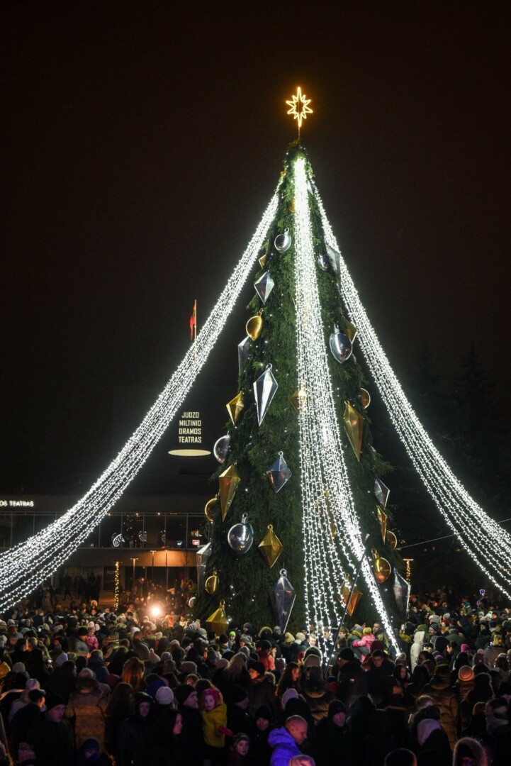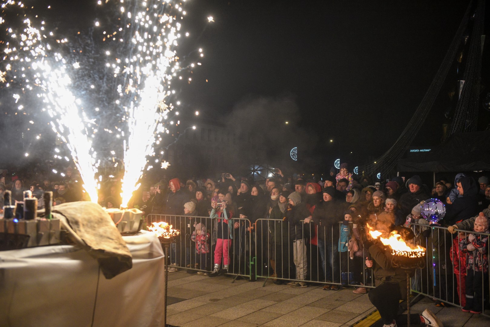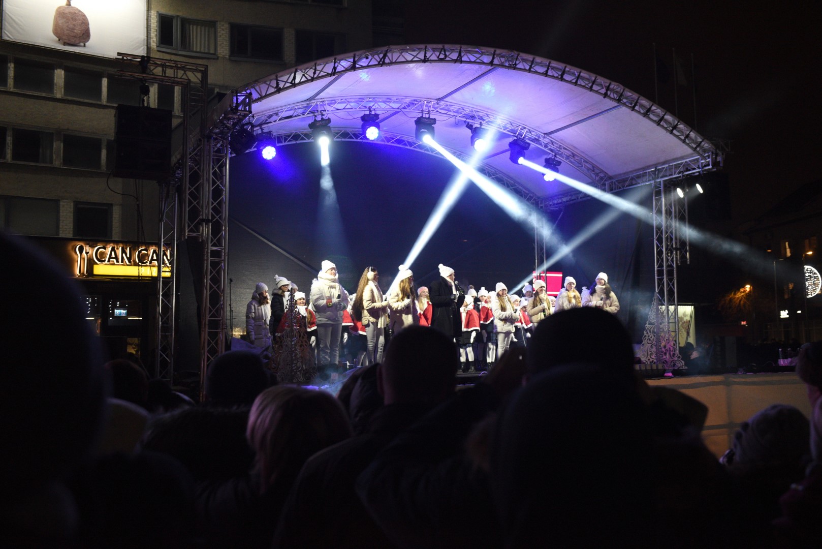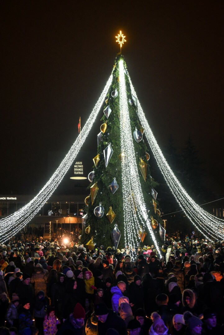 Švenčių dvasia užliejo Panevėžį – penktadienio vakarą Laisvės aikštėje sužibo Kalėdų eglė.