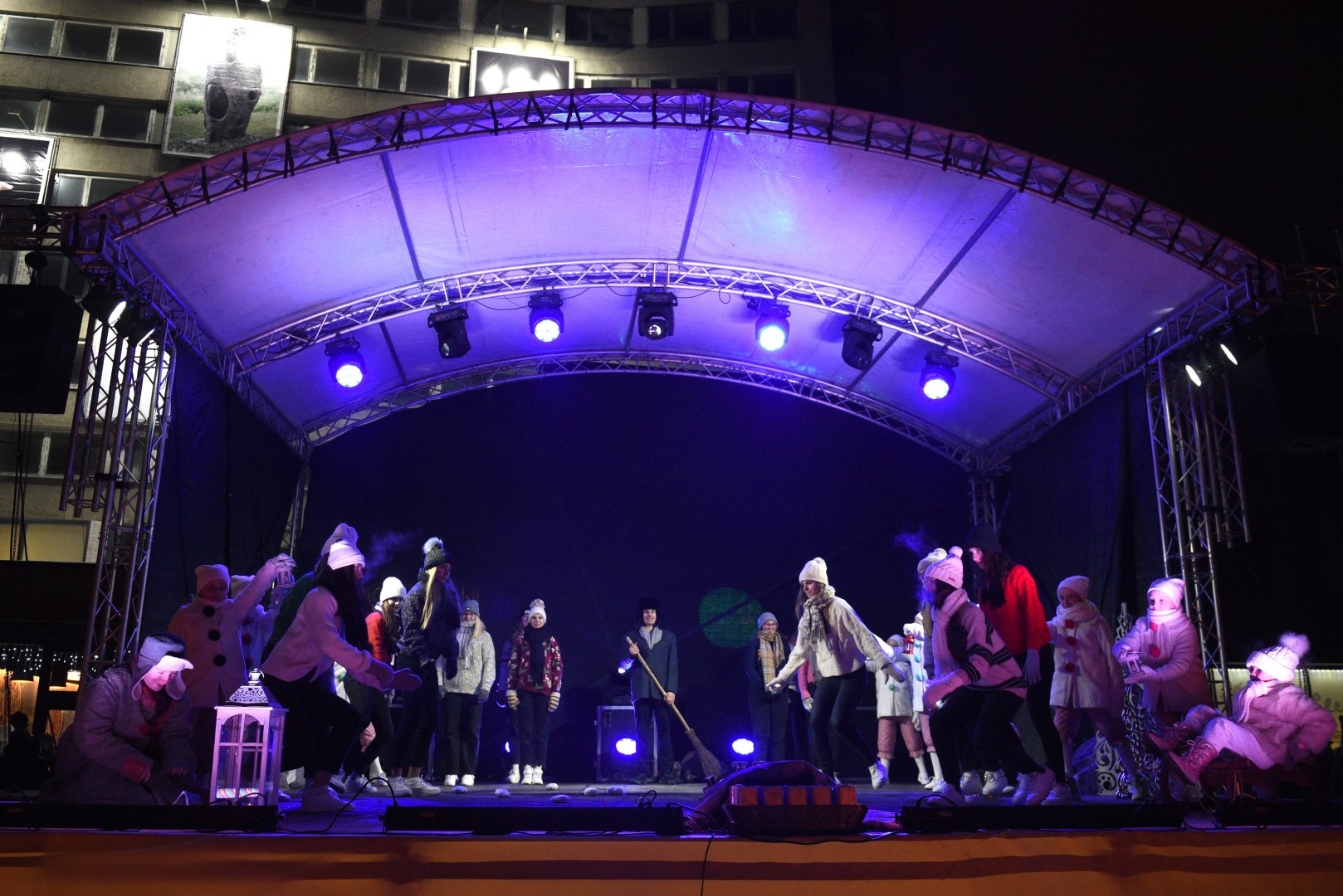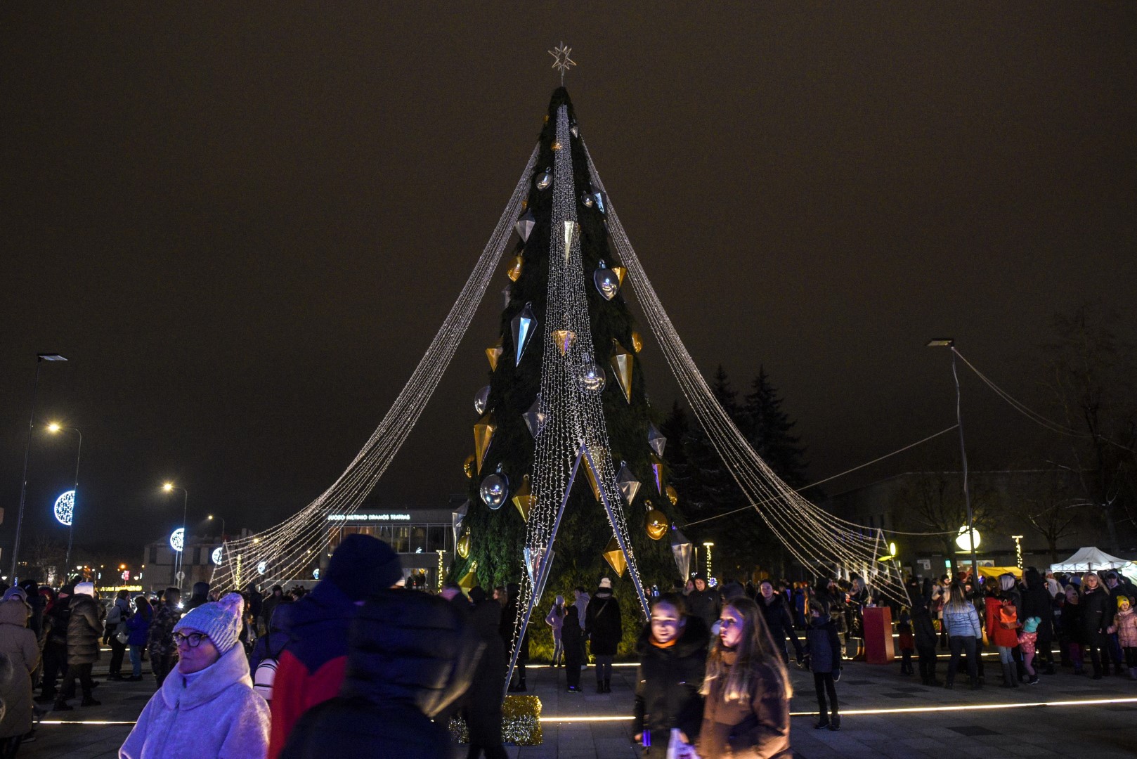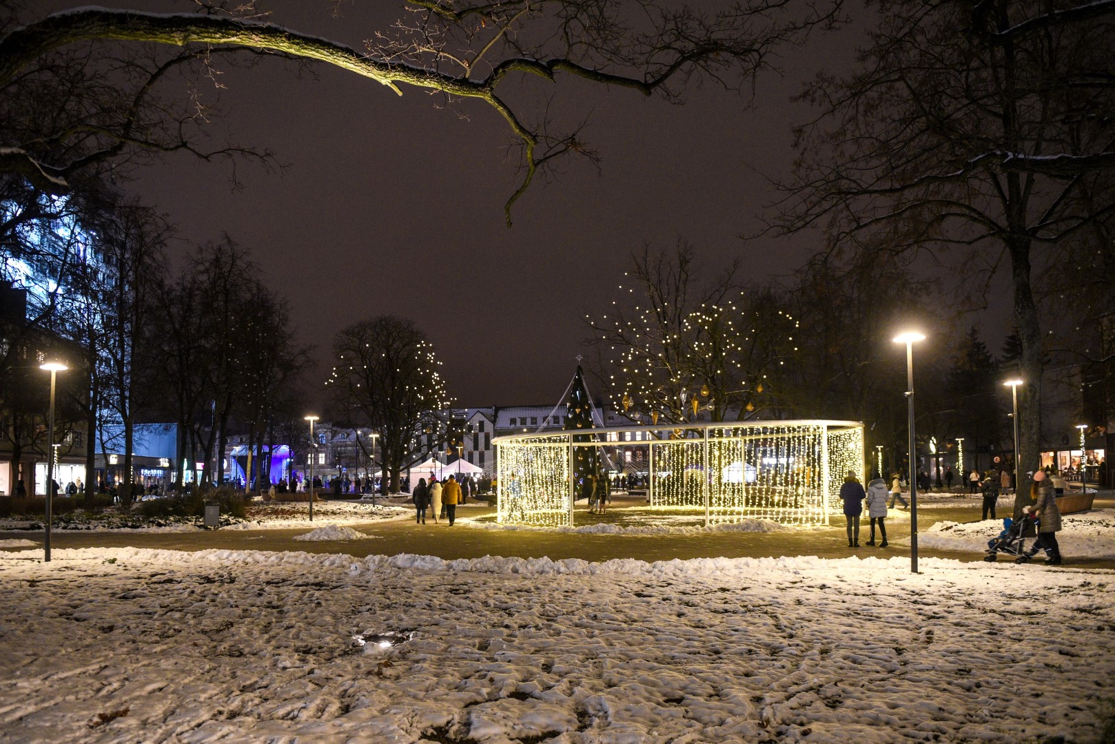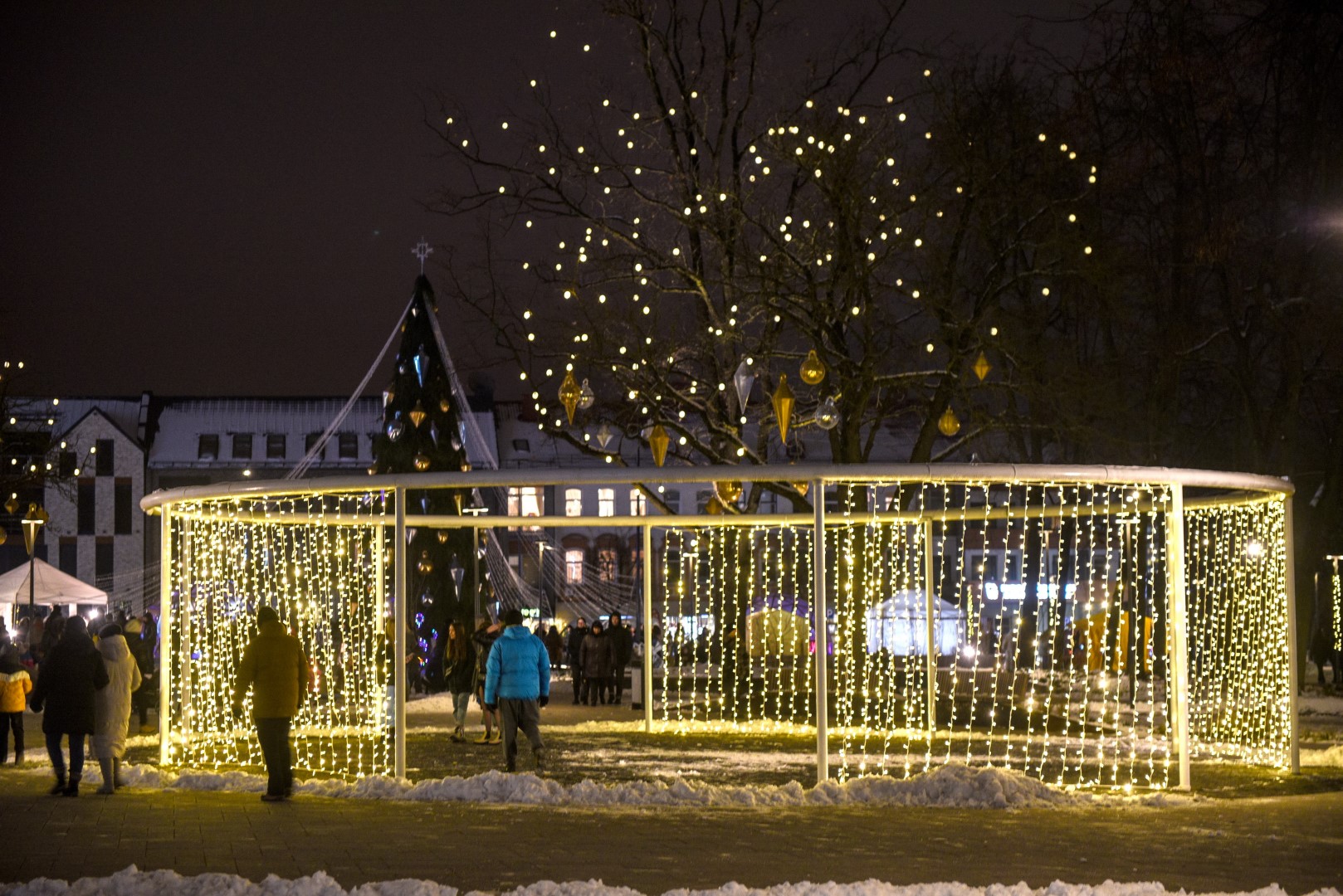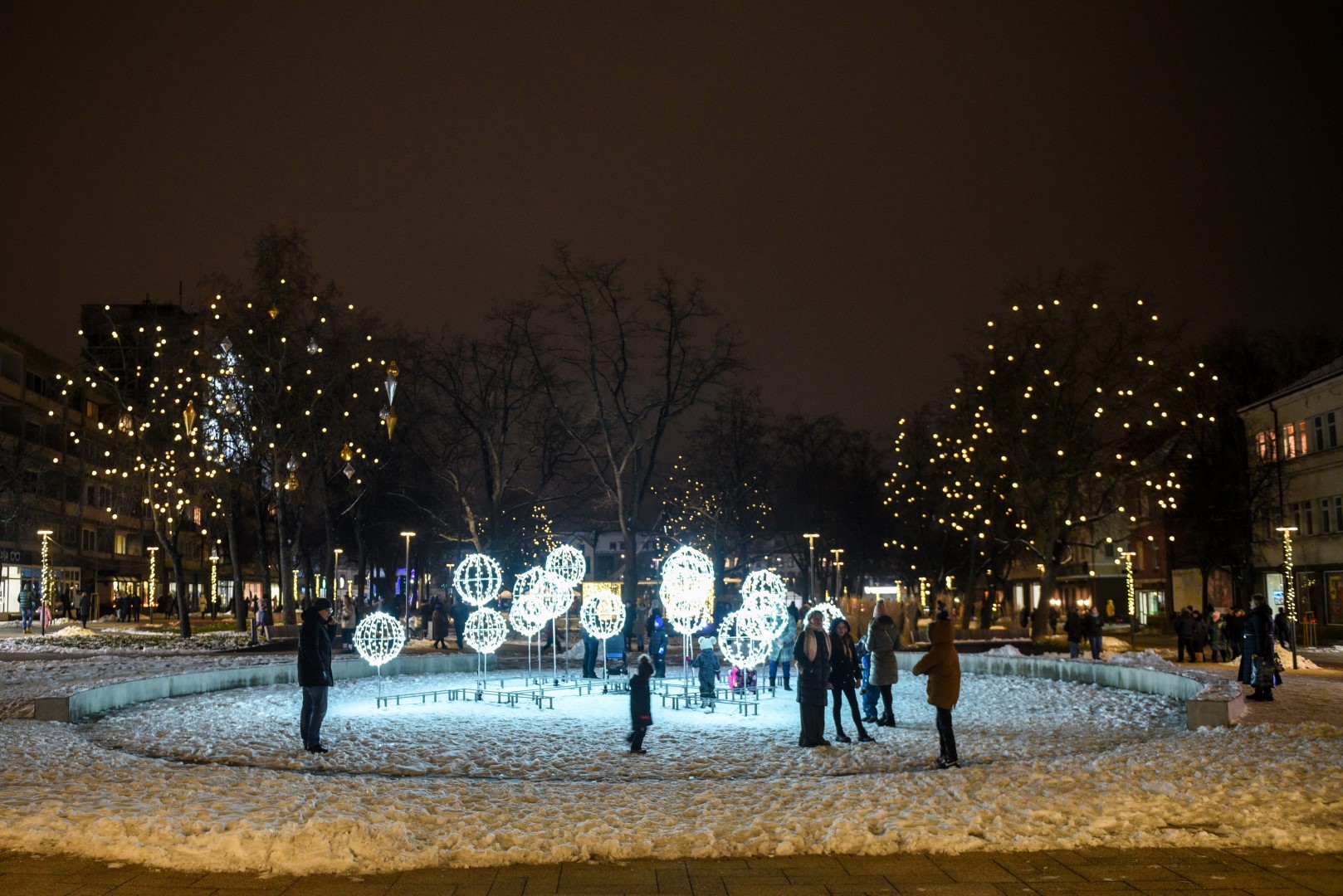 Švenčių dvasia užliejo Panevėžį – penktadienio vakarą Laisvės aikštėje sužibo Kalėdų eglė.