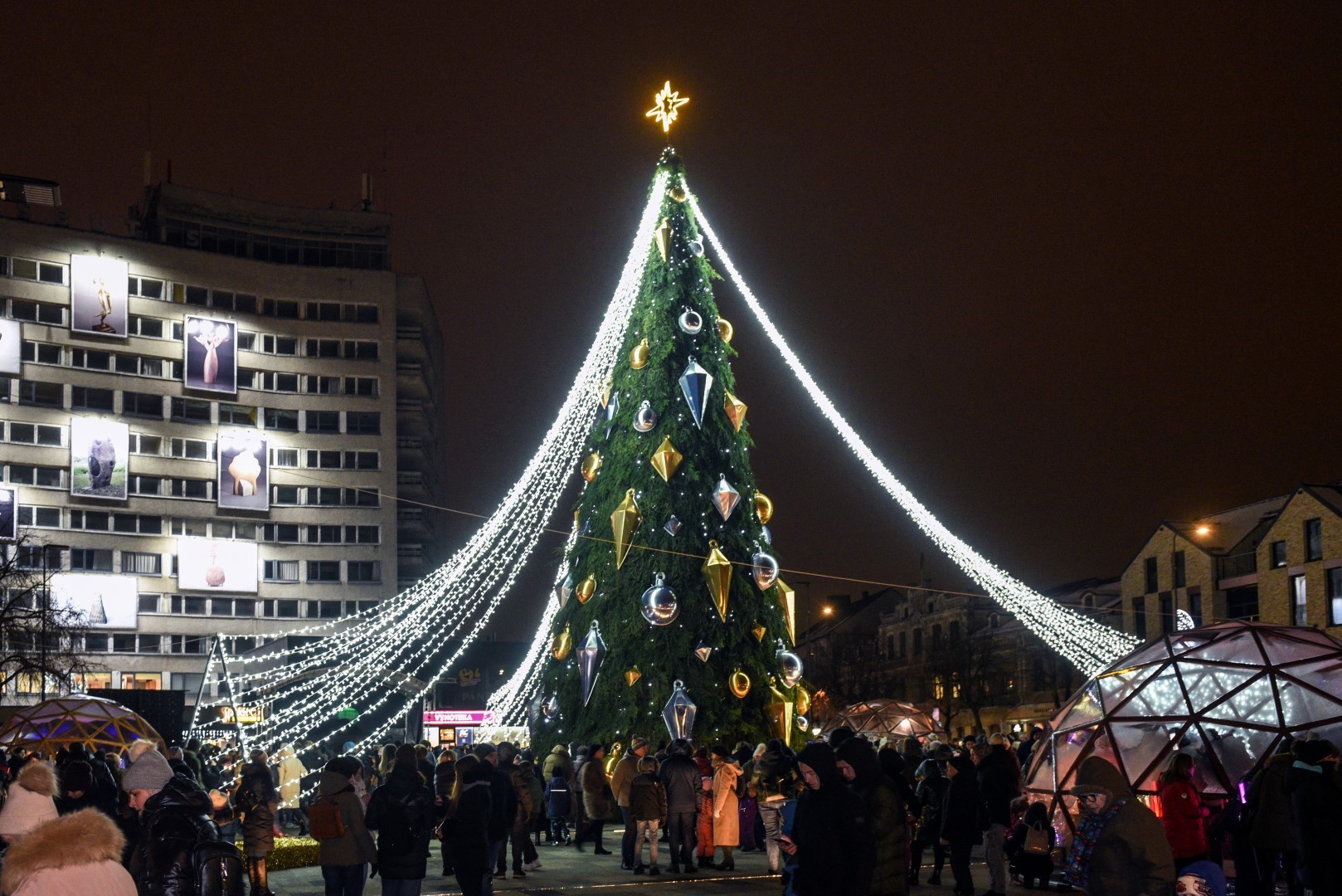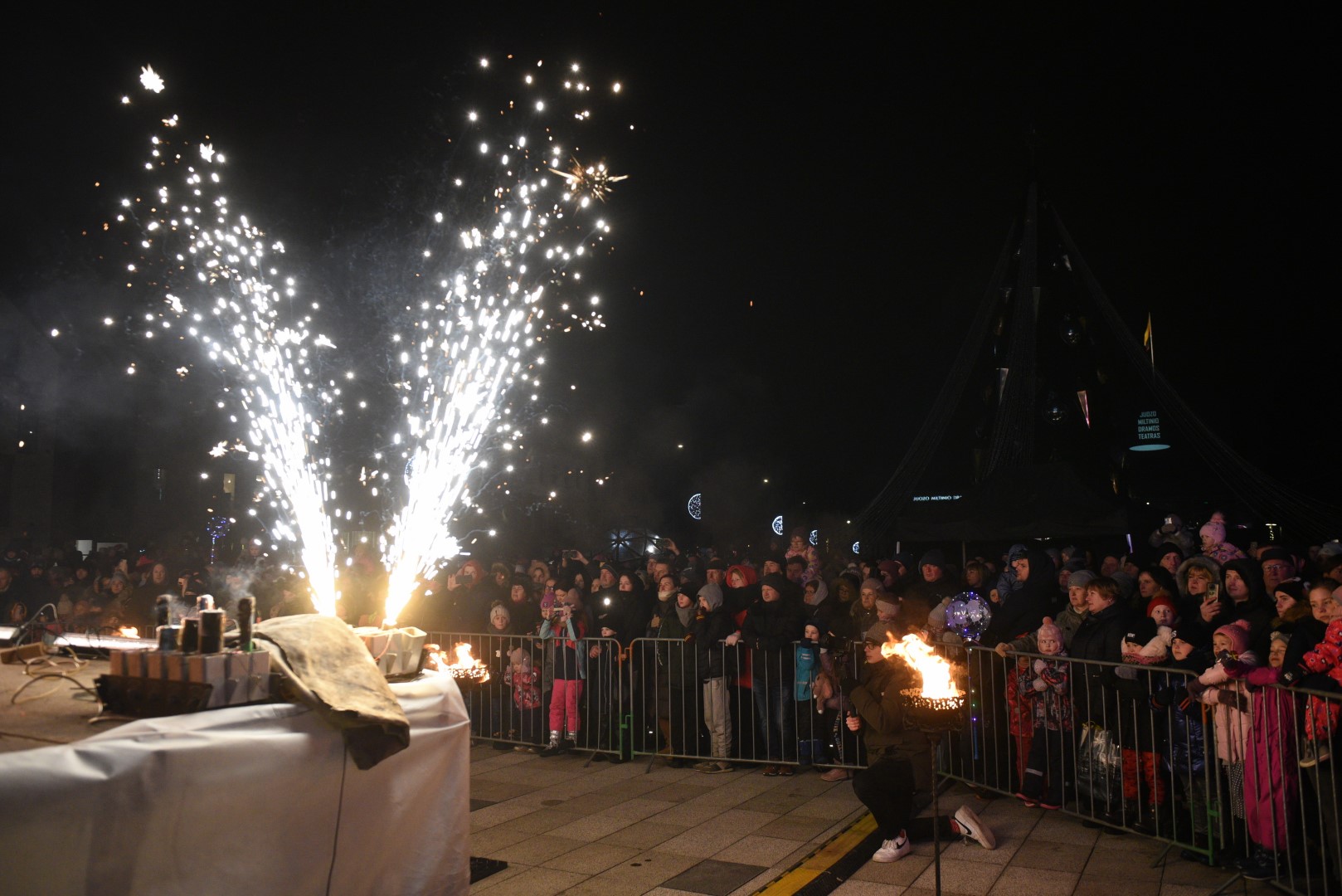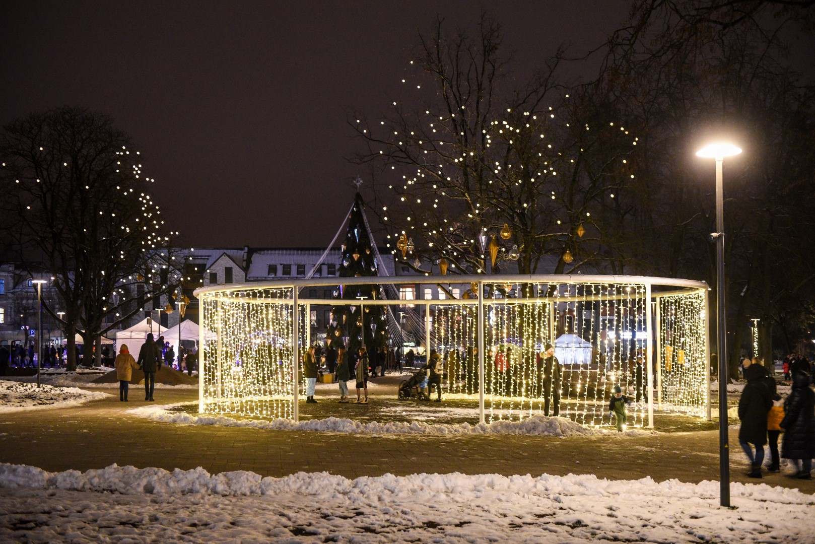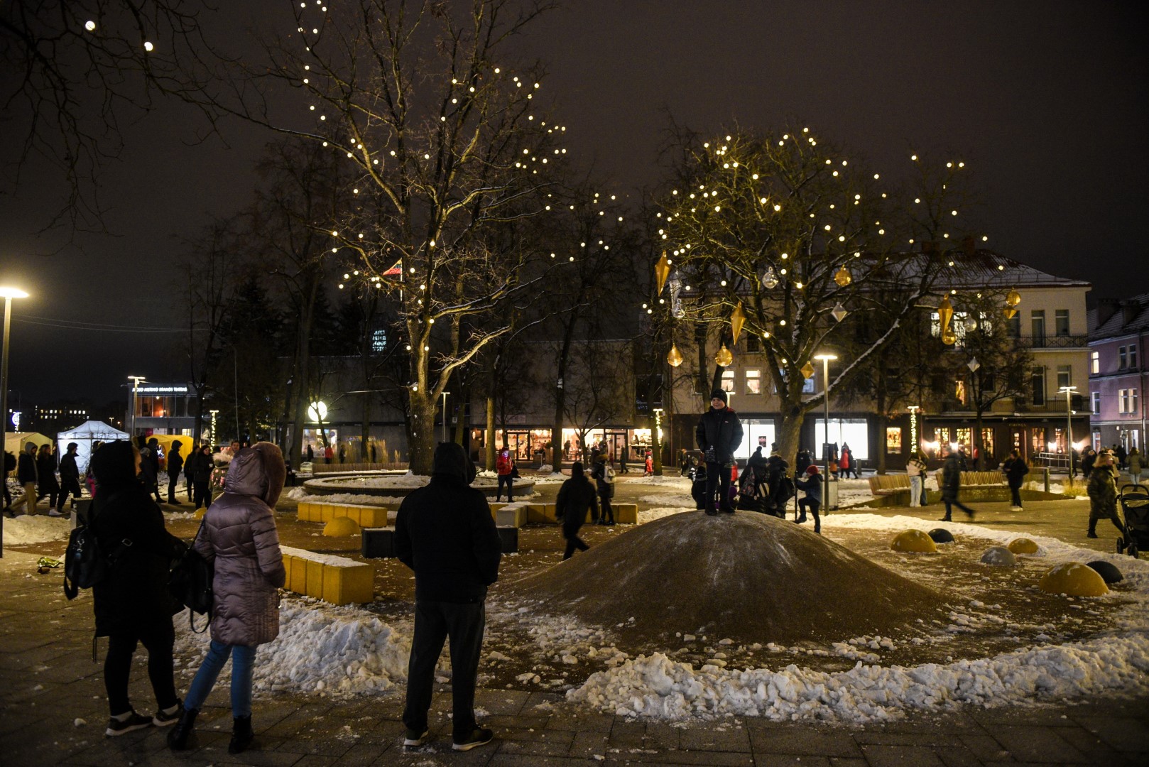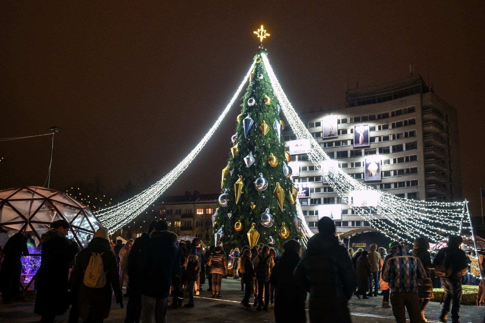 Švenčių dvasia užliejo Panevėžį – penktadienio vakarą Laisvės aikštėje sužibo Kalėdų eglė.
