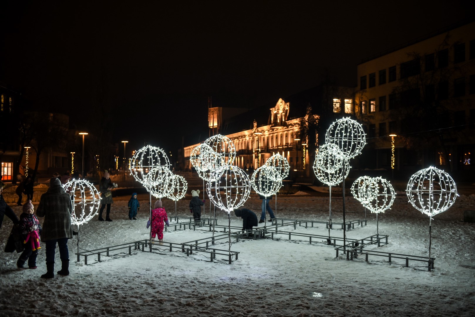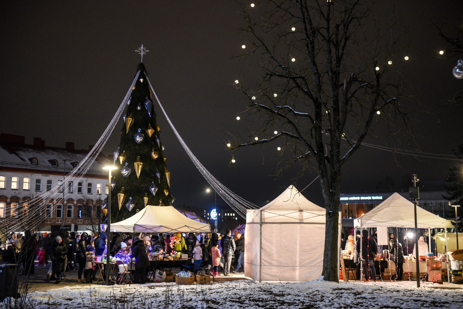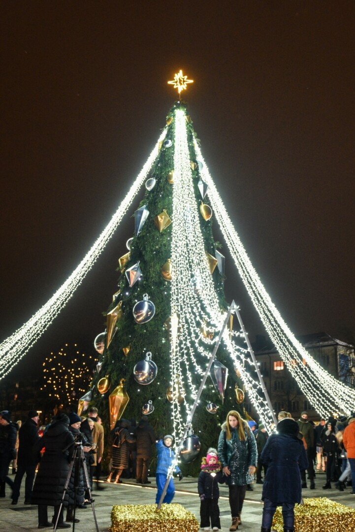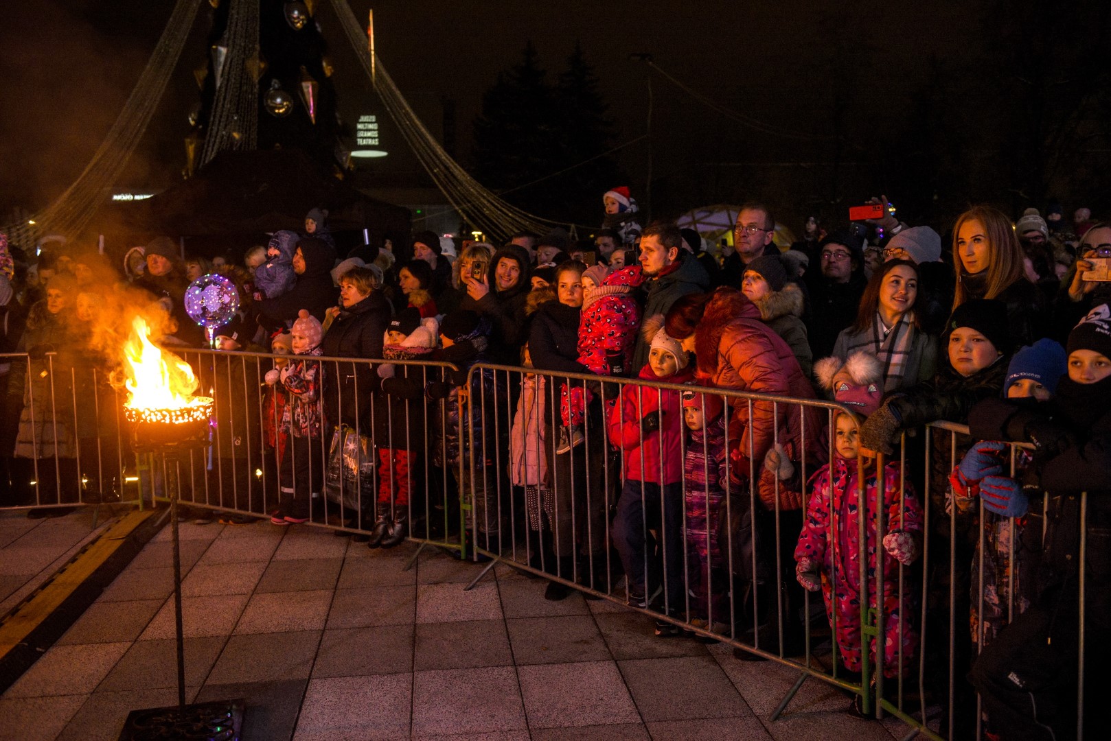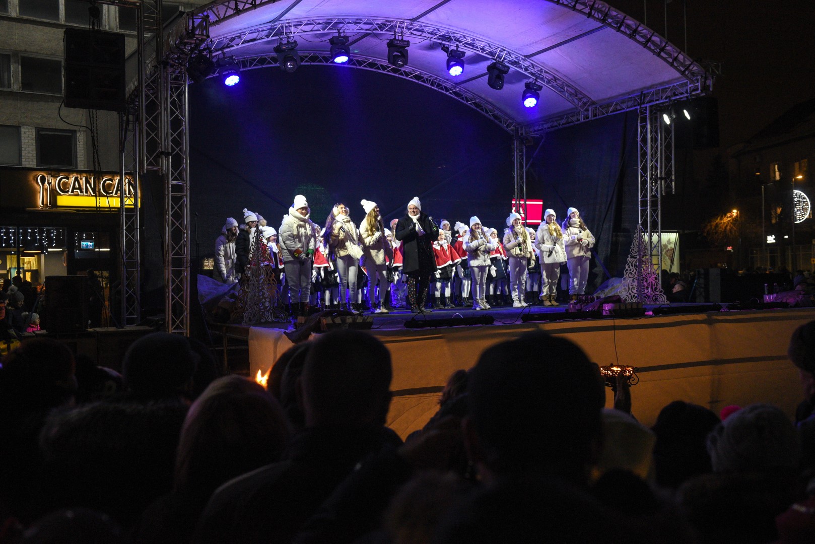 Švenčių dvasia užliejo Panevėžį – penktadienio vakarą Laisvės aikštėje sužibo Kalėdų eglė.
