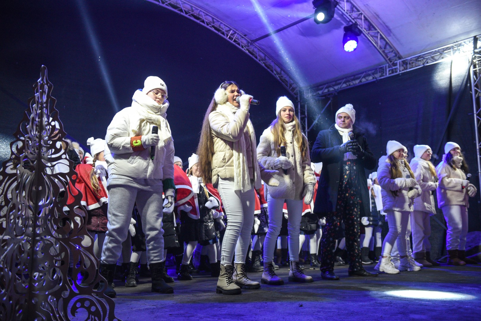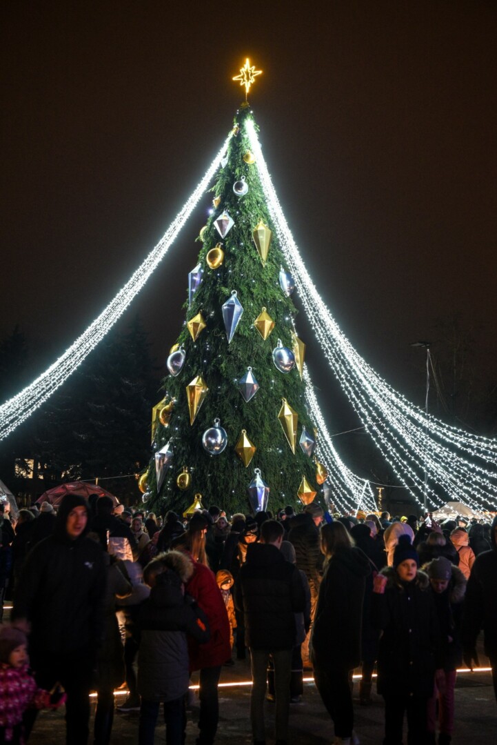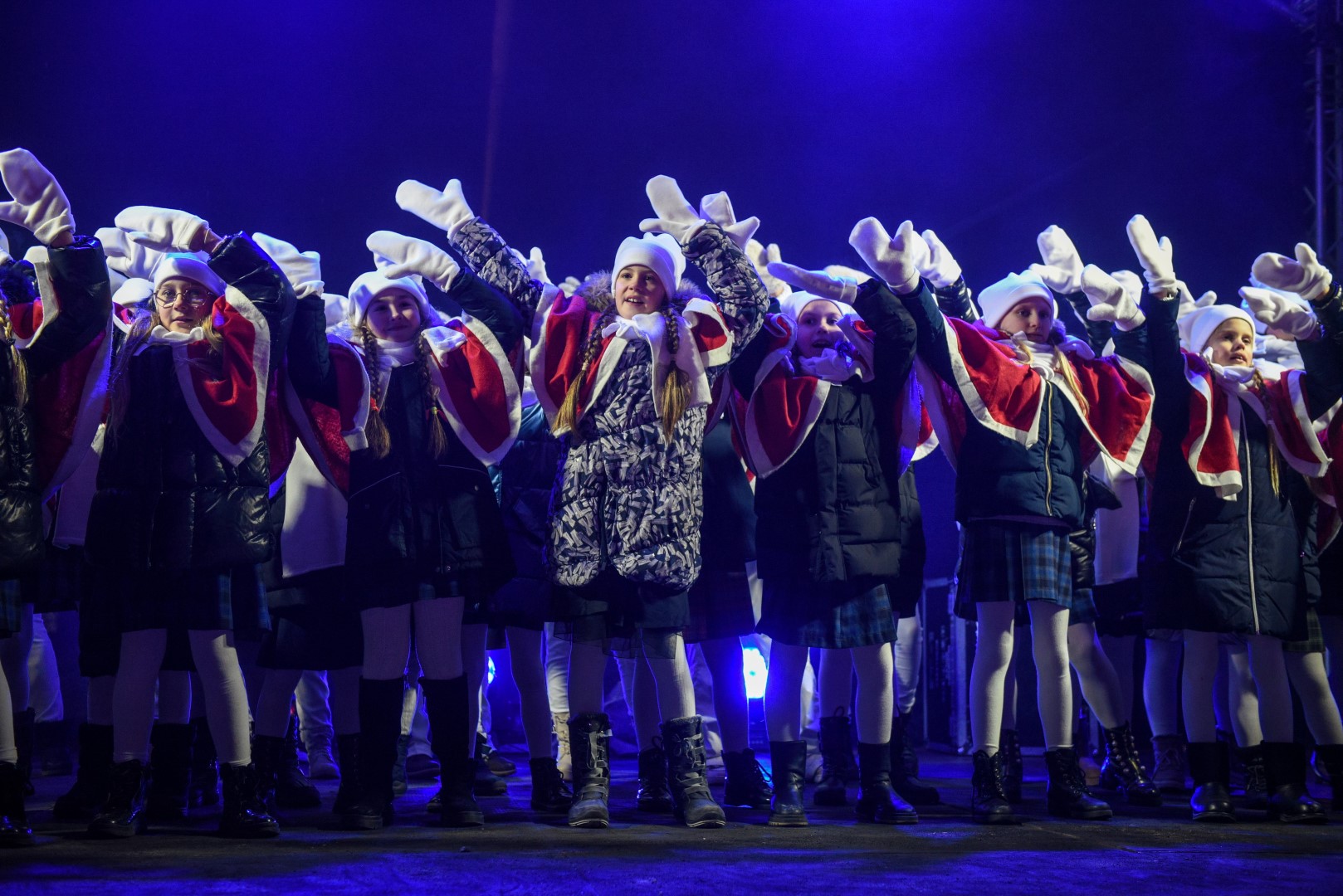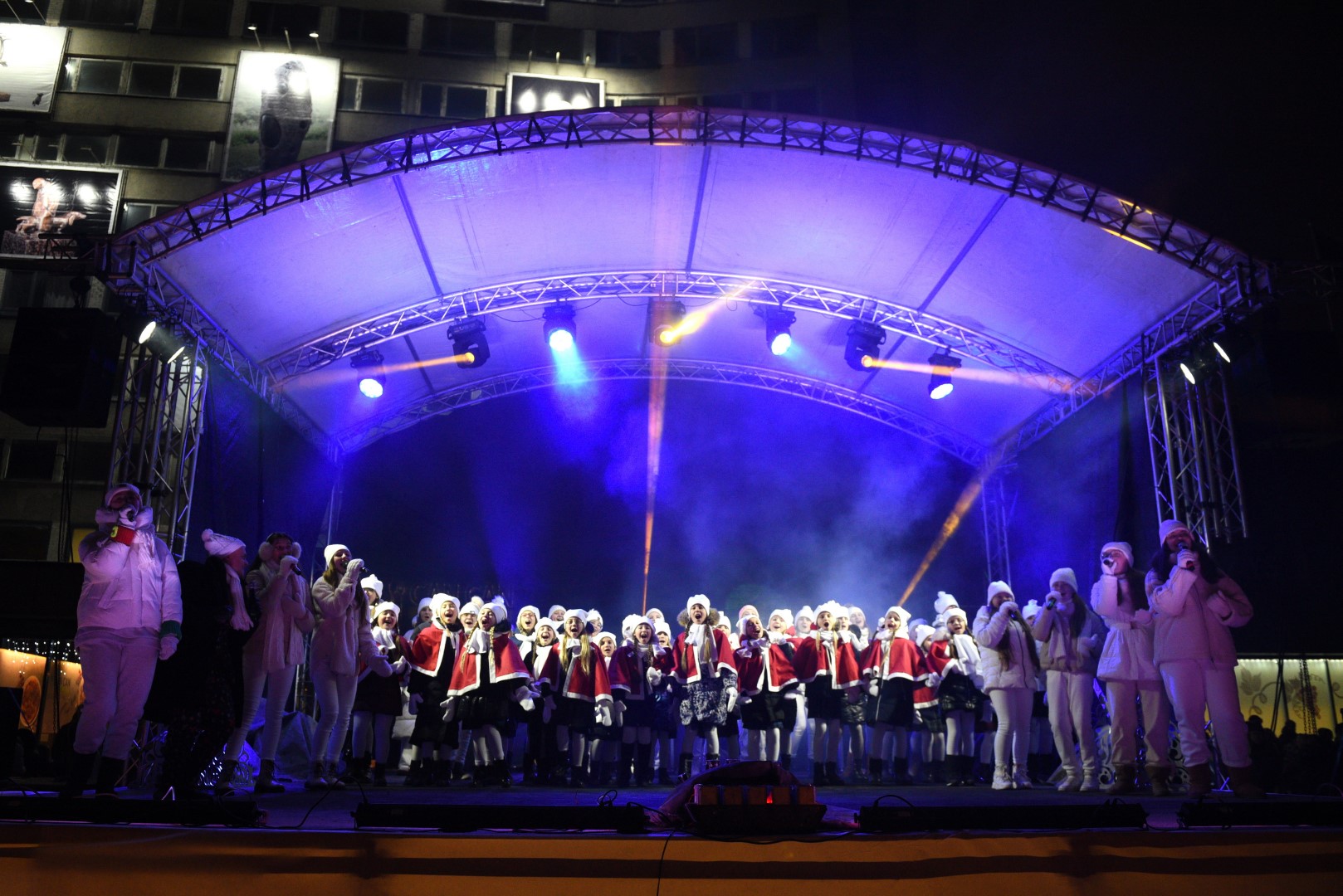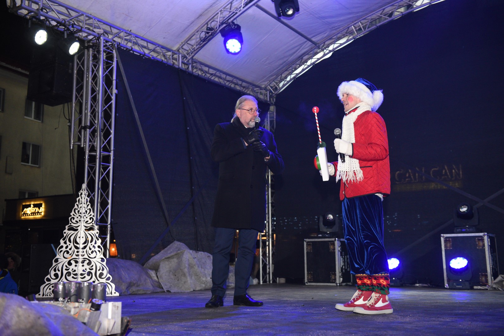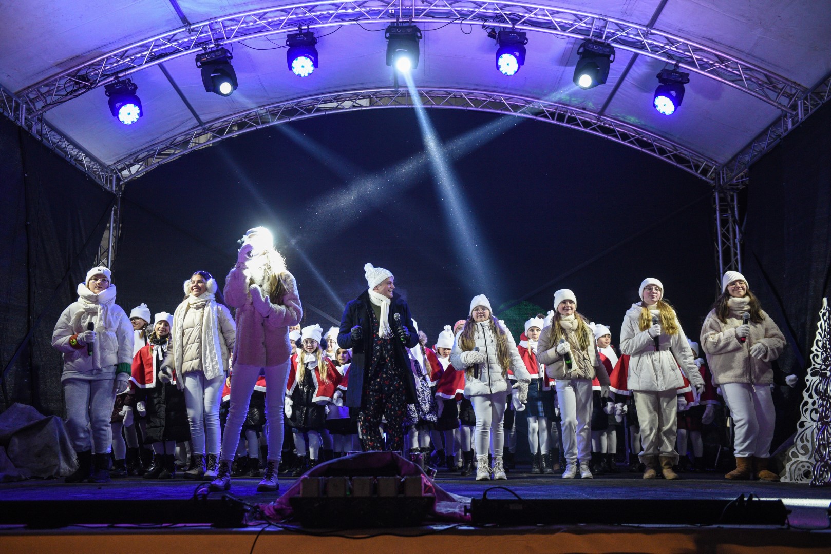 Švenčių dvasia užliejo Panevėžį – penktadienio vakarą Laisvės aikštėje sužibo Kalėdų eglė.