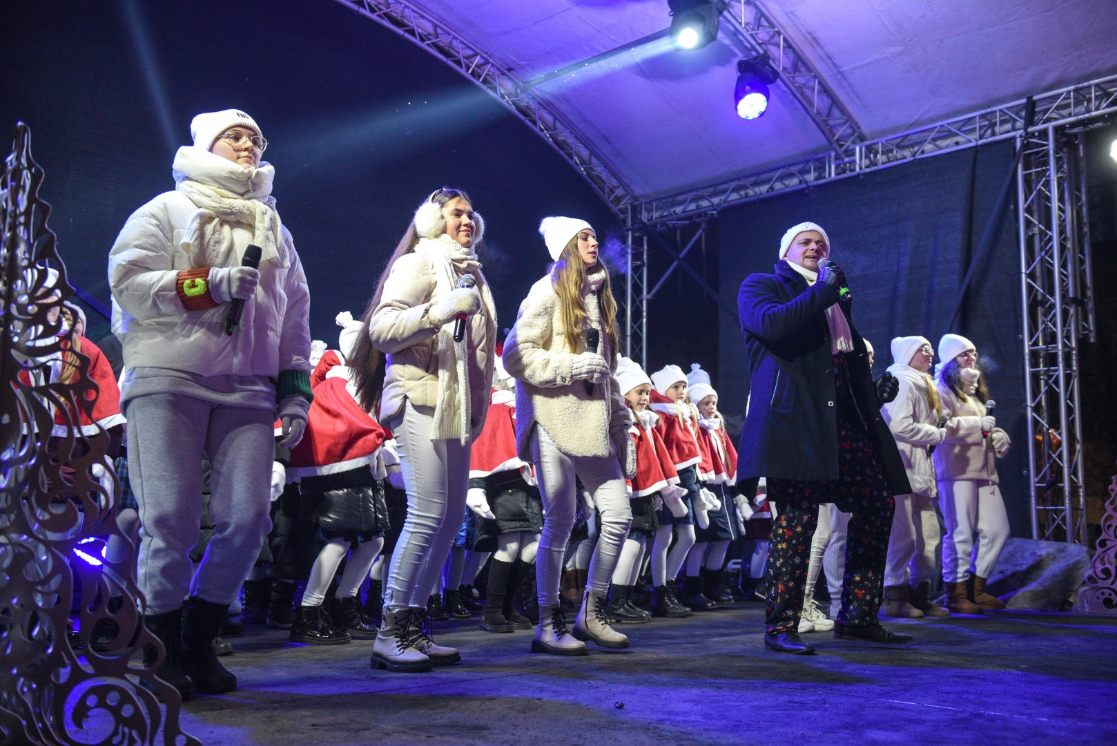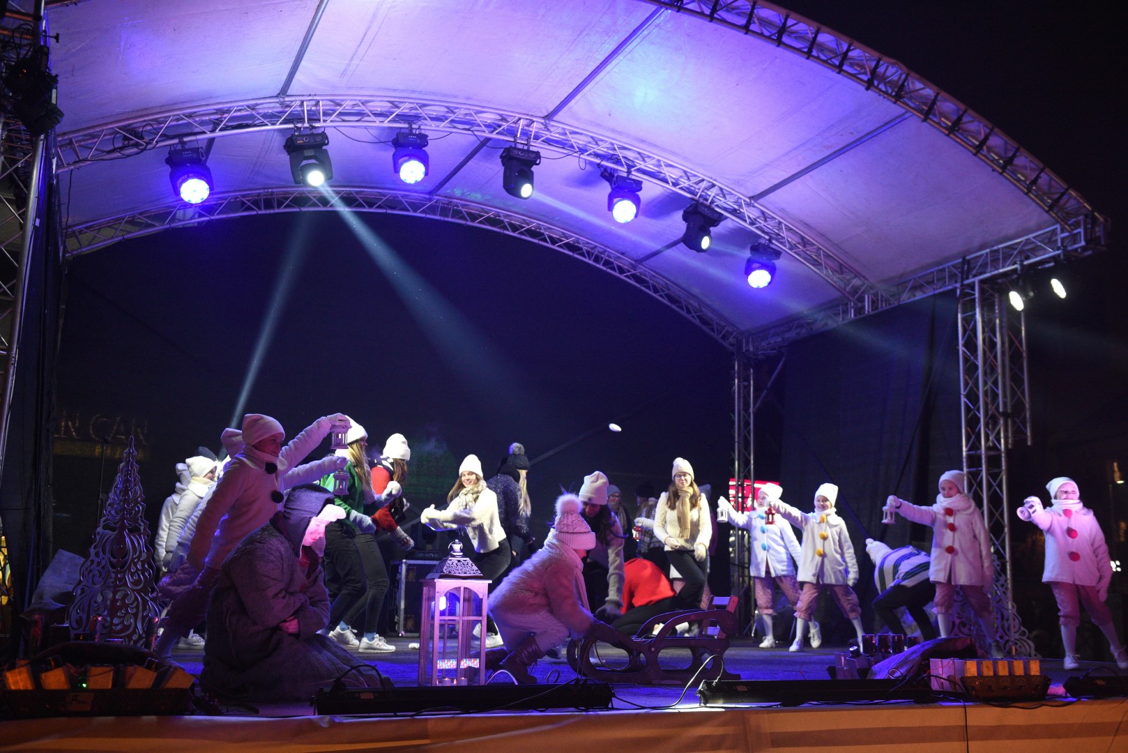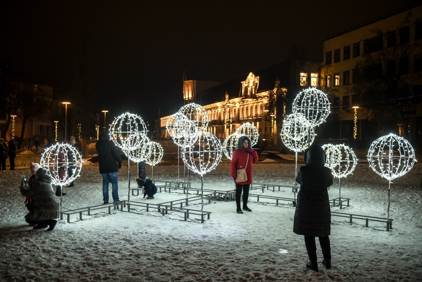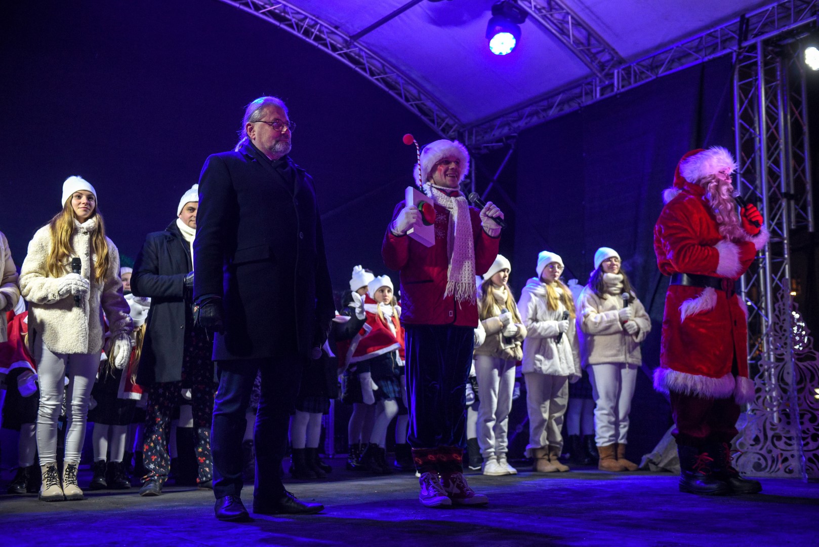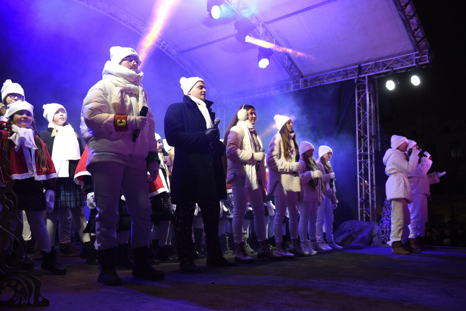 Švenčių dvasia užliejo Panevėžį – penktadienio vakarą Laisvės aikštėje sužibo Kalėdų eglė.