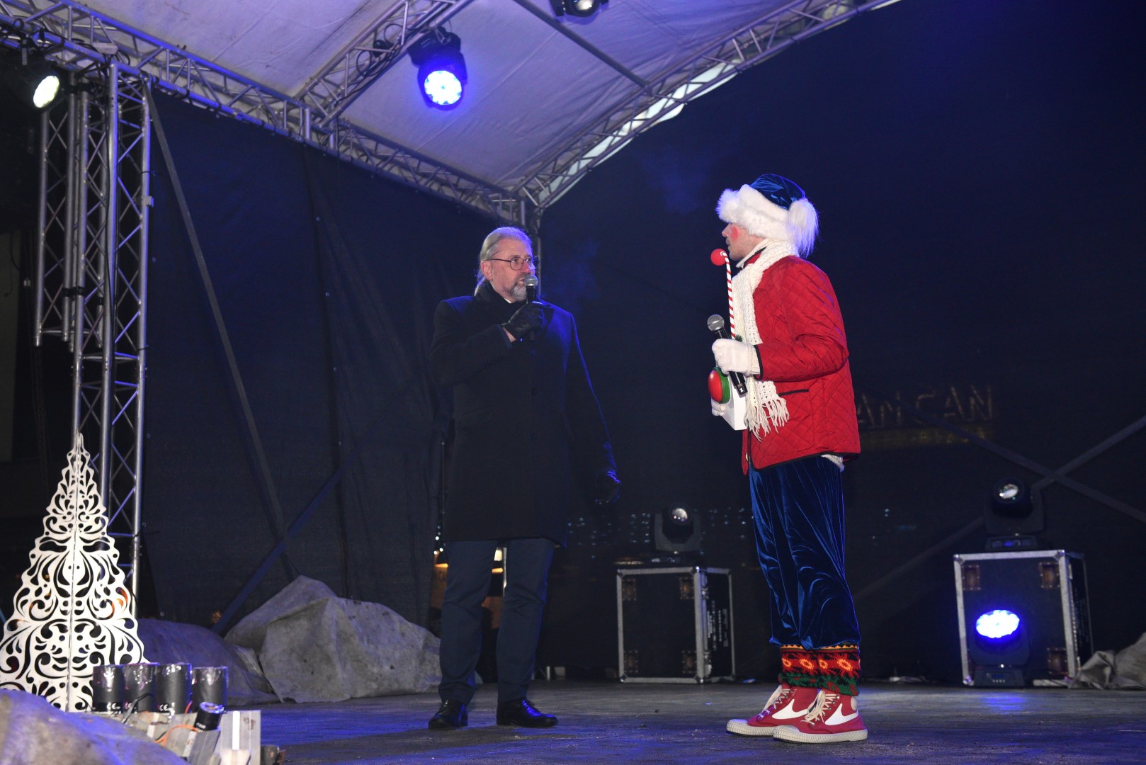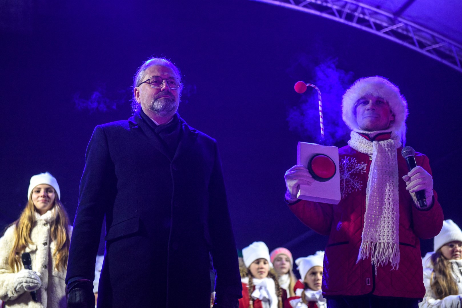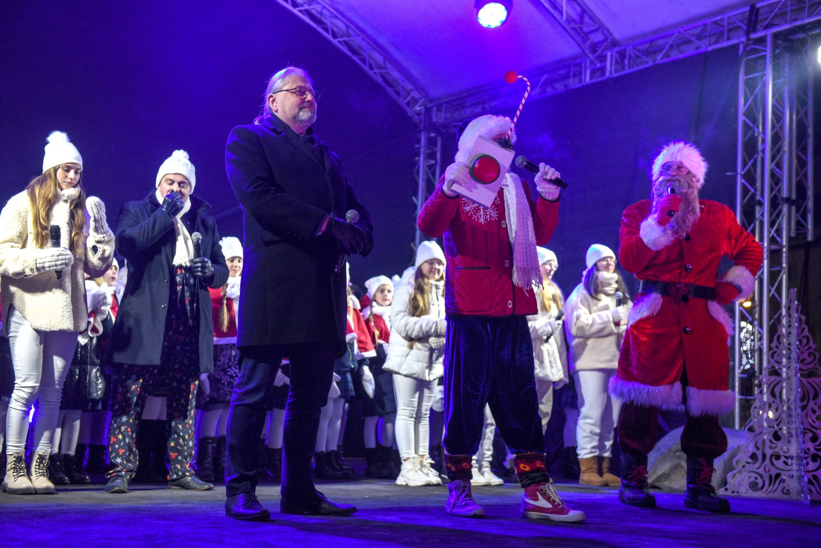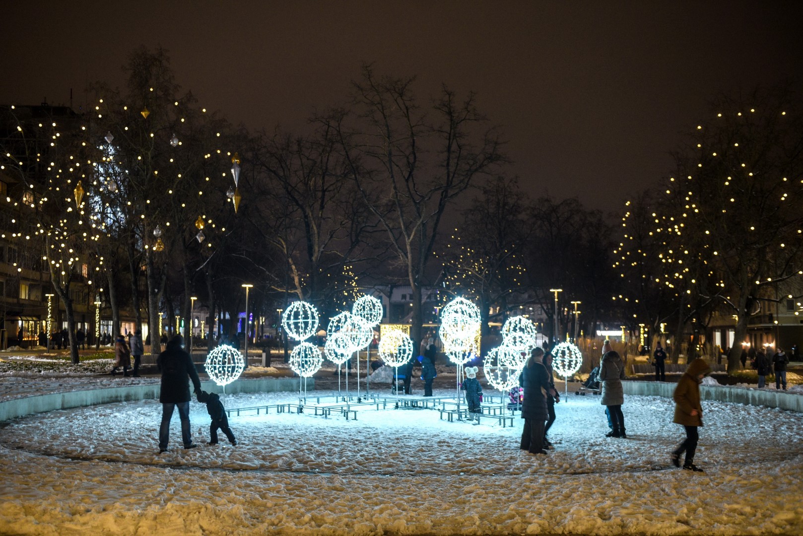 Švenčių dvasia užliejo Panevėžį – penktadienio vakarą Laisvės aikštėje sužibo Kalėdų eglė.