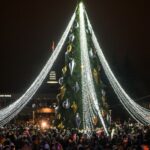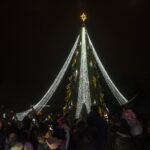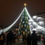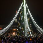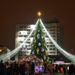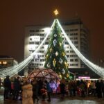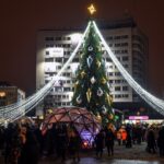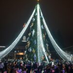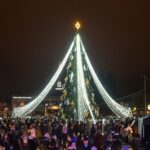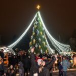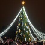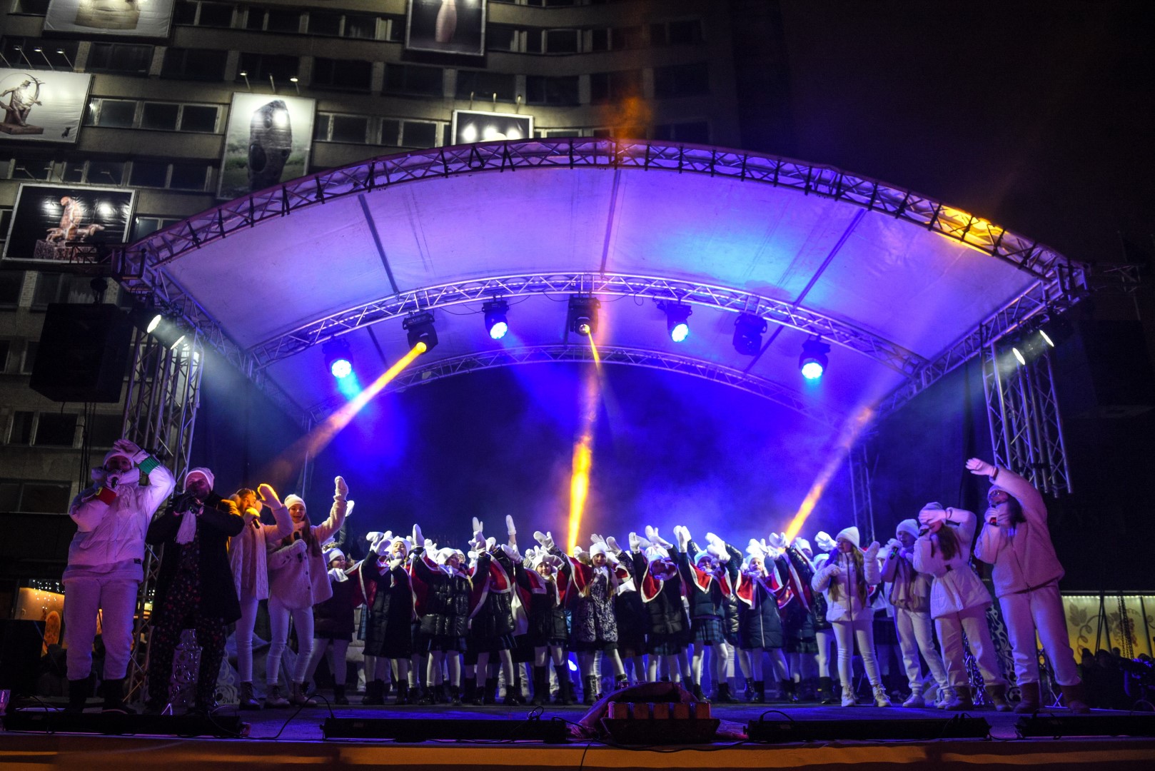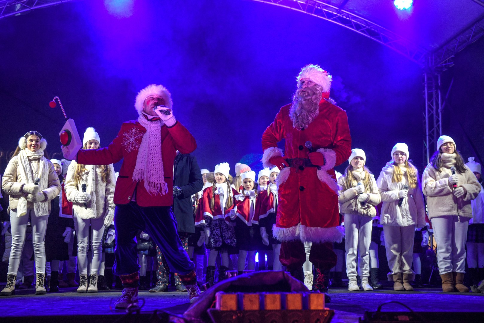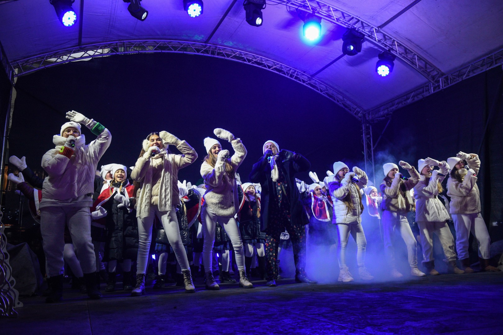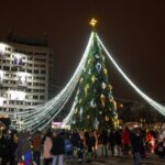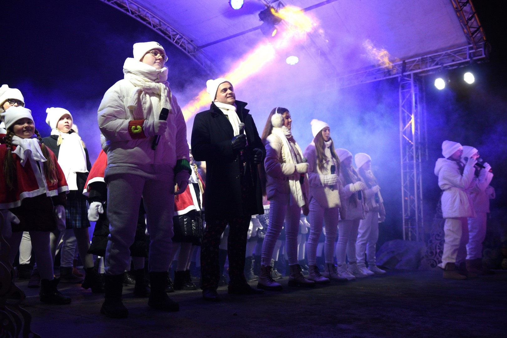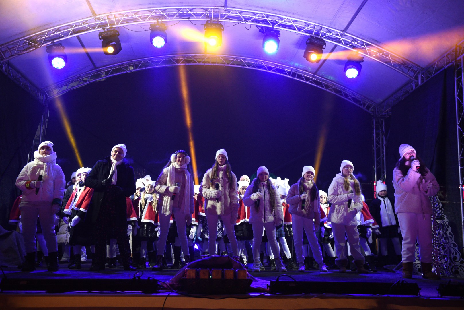 Švenčių dvasia užliejo Panevėžį – penktadienio vakarą Laisvės aikštėje sužibo Kalėdų eglė.