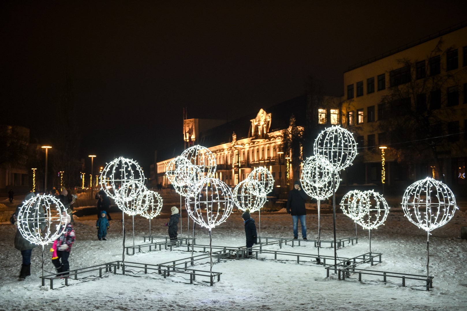 Oficialiai paskelbus kalėdinio laikotarpio pradžią šventinėmis puošmenomis nušvito pagrindinės Panevėžio gatvės, skveras šalia Santuokų rūmų, pėsčiųjų takai, J. Basanavičiaus g. tiltas, Senvagė, Nepriklausomybės aikštė.