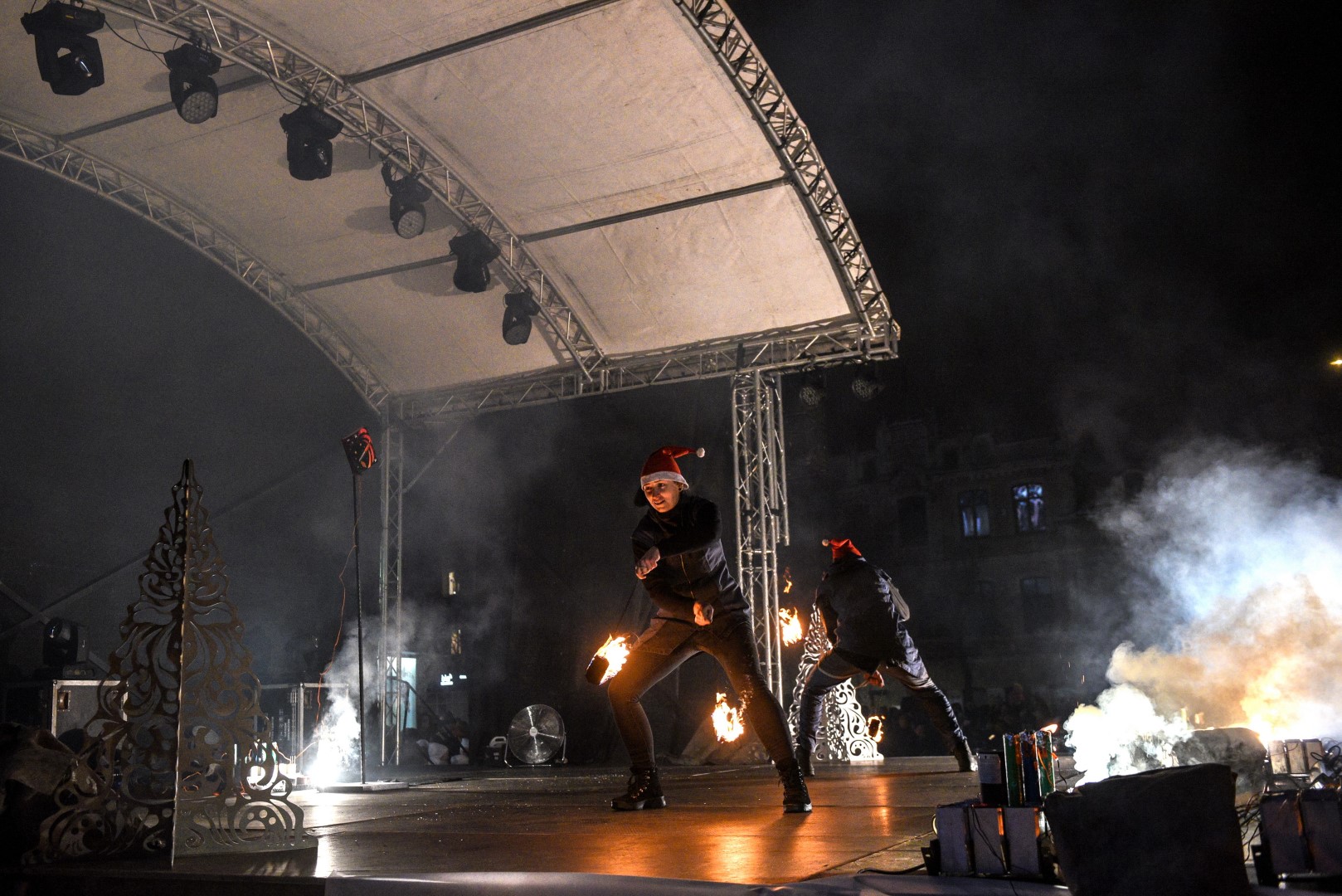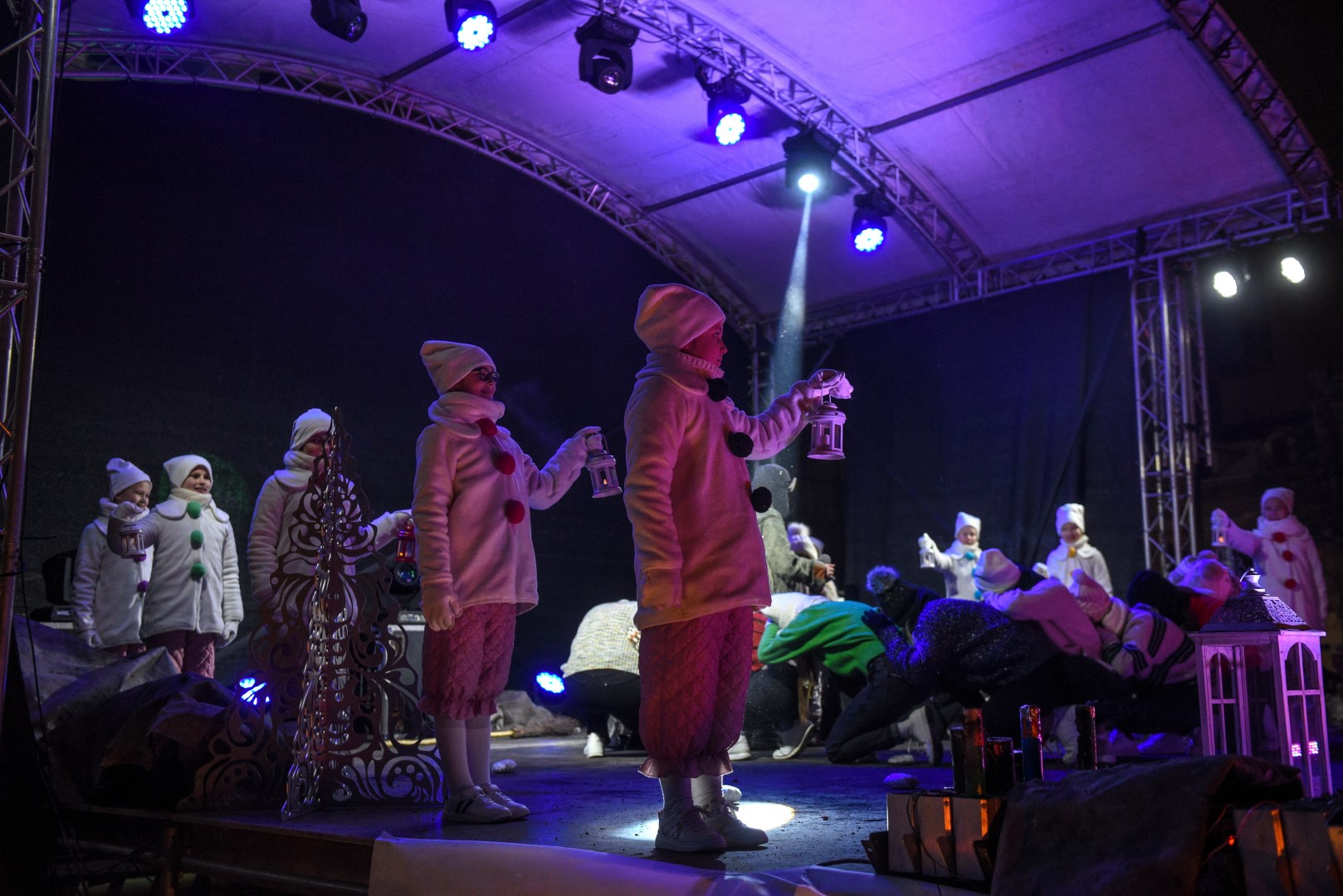 Kalėdų eglės įžiebimo šventinį renginį organizavo Panevėžio teatras „Menas“.