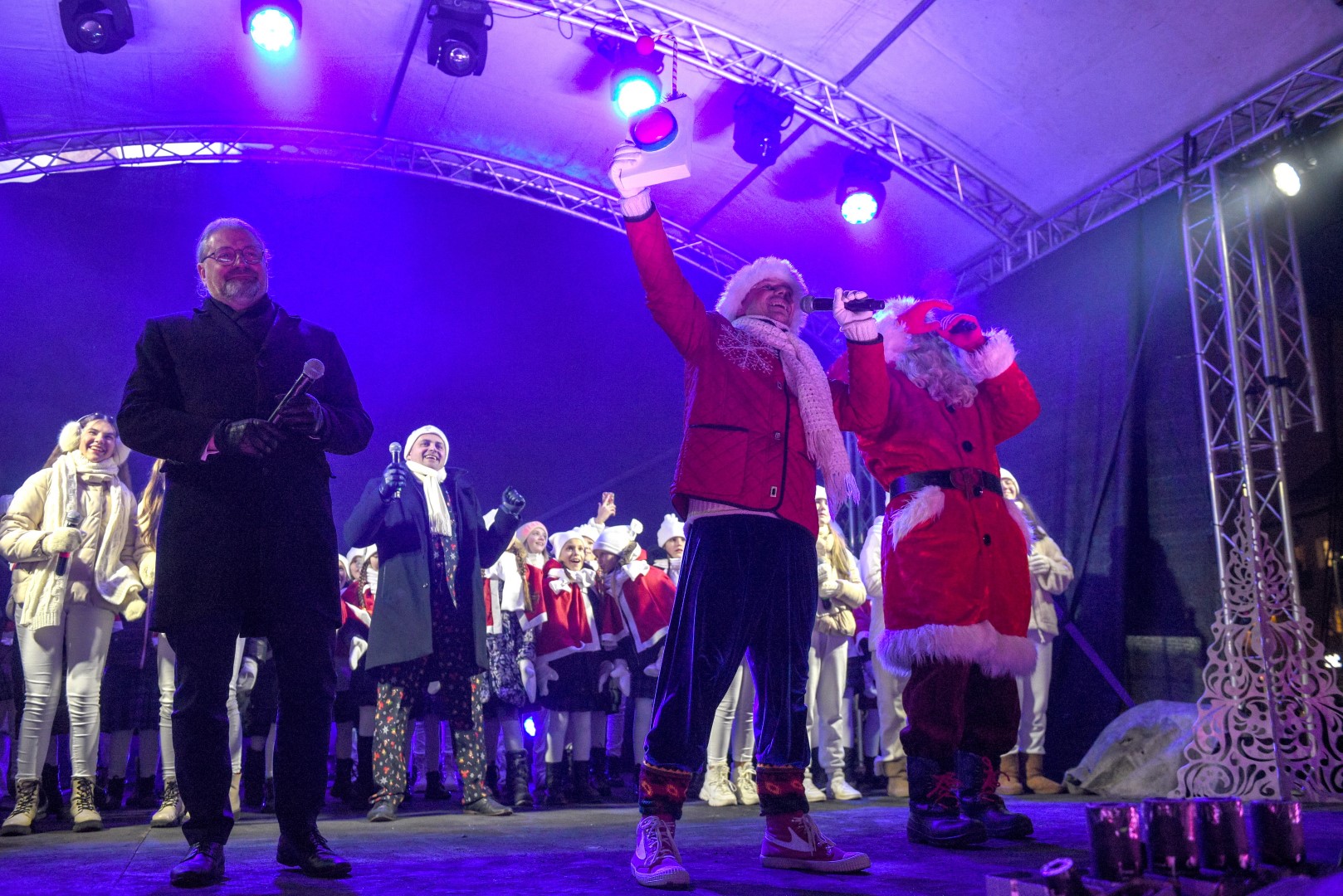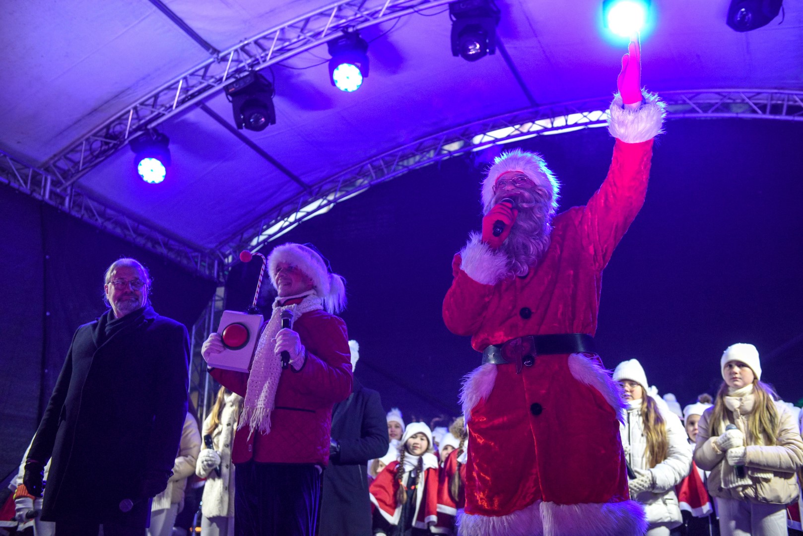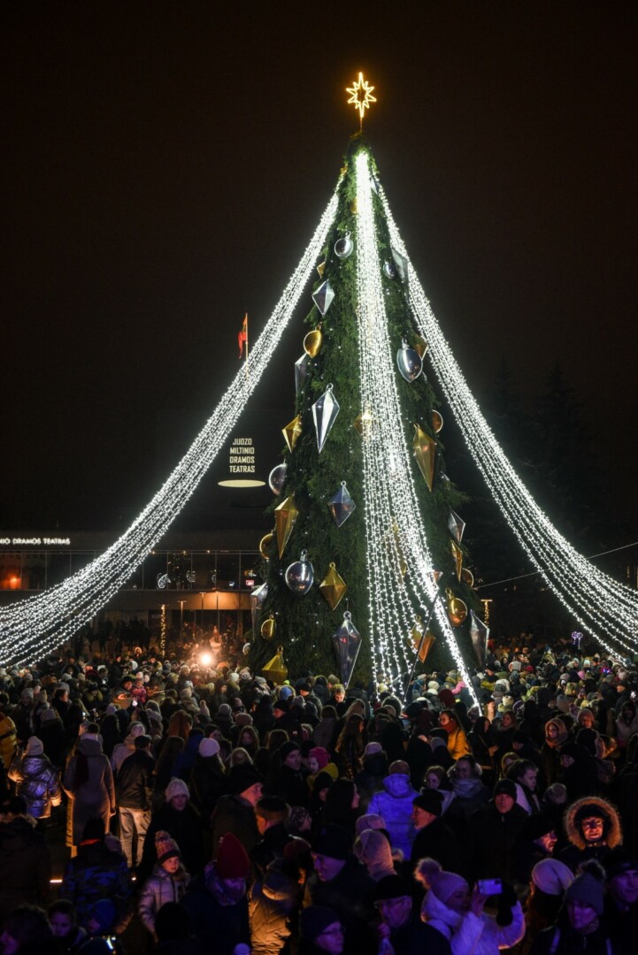 Po poros metų karantino ribojimų, šiemet į šventę Panevėžio centre susirinko minia smalsuolių, kad išvystų tą ypatingą akimirką, kai eglę nušviečia tūkstančiai lempučių