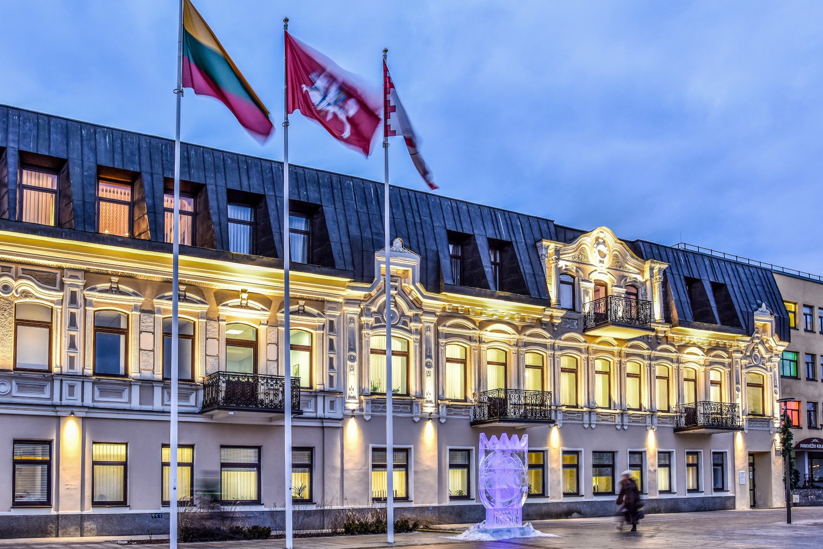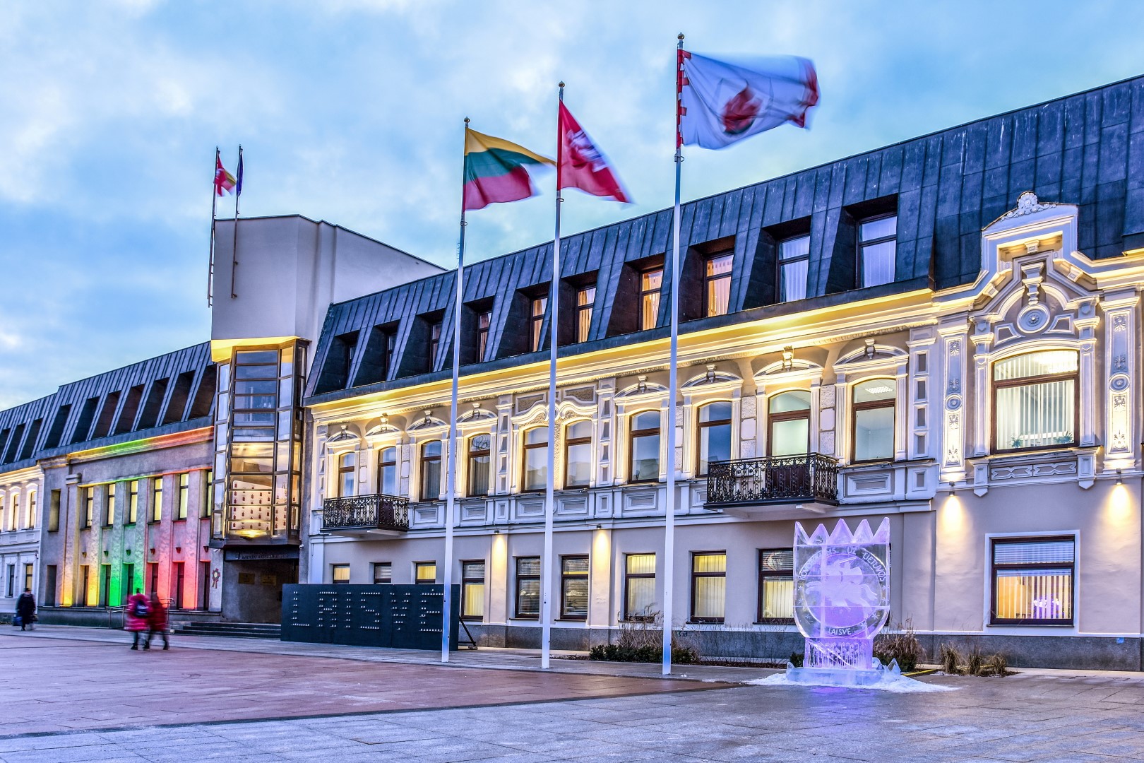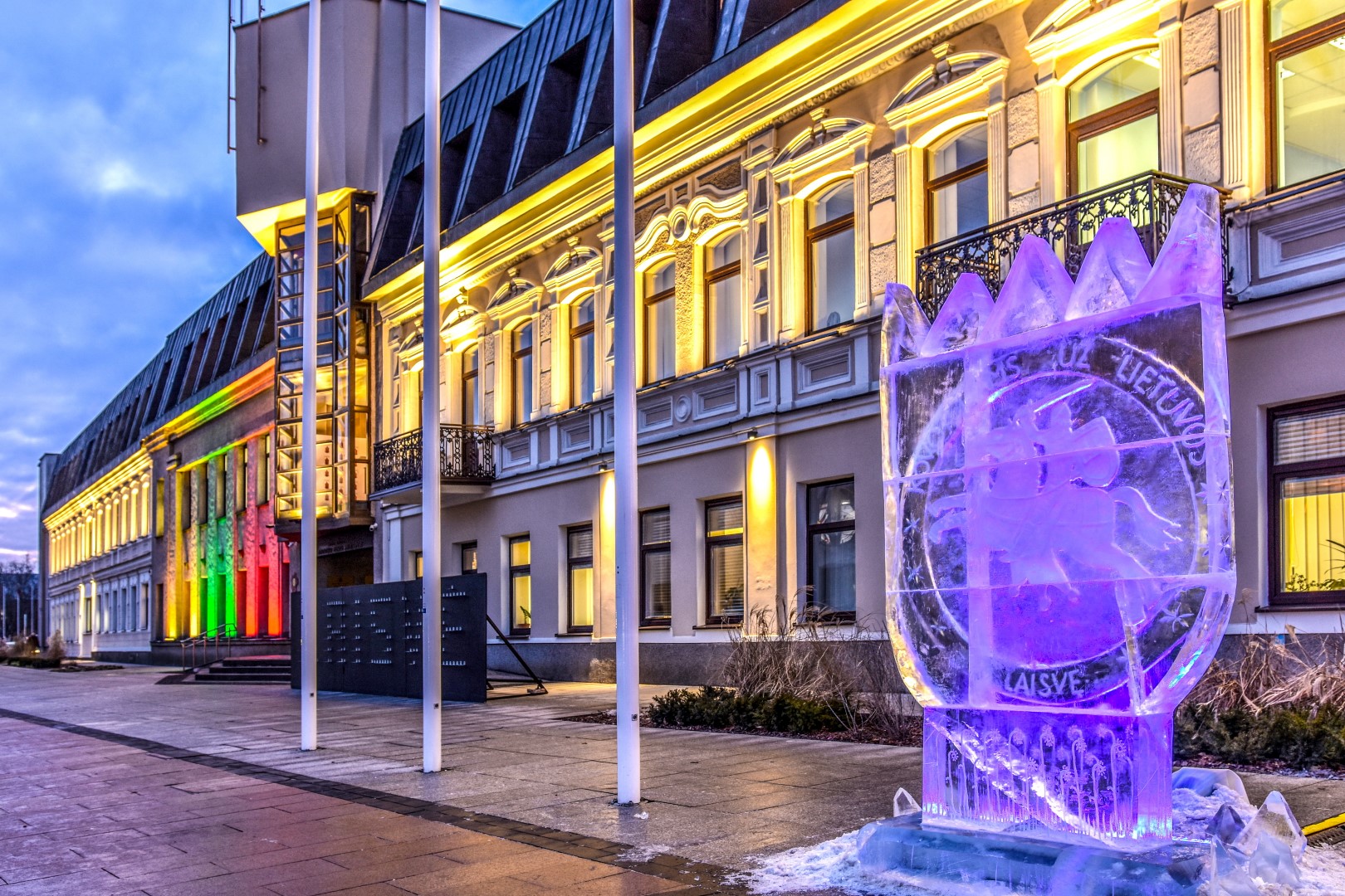 Laisvės dienos gynėjų išvakarėse Panevėžio širdyje, Laisvės aikštėje, nušvito įstabi brolių menininkų Kęstučio ir Vytauto Musteikių sukurta ledo skulptūra „Už Laisvę“.
