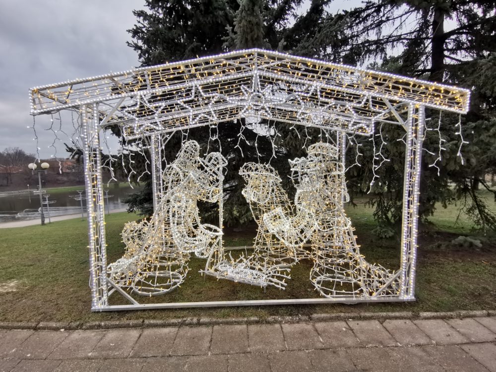 Inovatyvias Kalėdas paskelbusiame Panevėžyje iškilo ir netradicinė, moderni prakartėlė. Tai ažūrinė iš šviesos diodų girliandų pagaminta 4 m pločio ir apie 2,5 m aukščio šviečianti instaliacija.