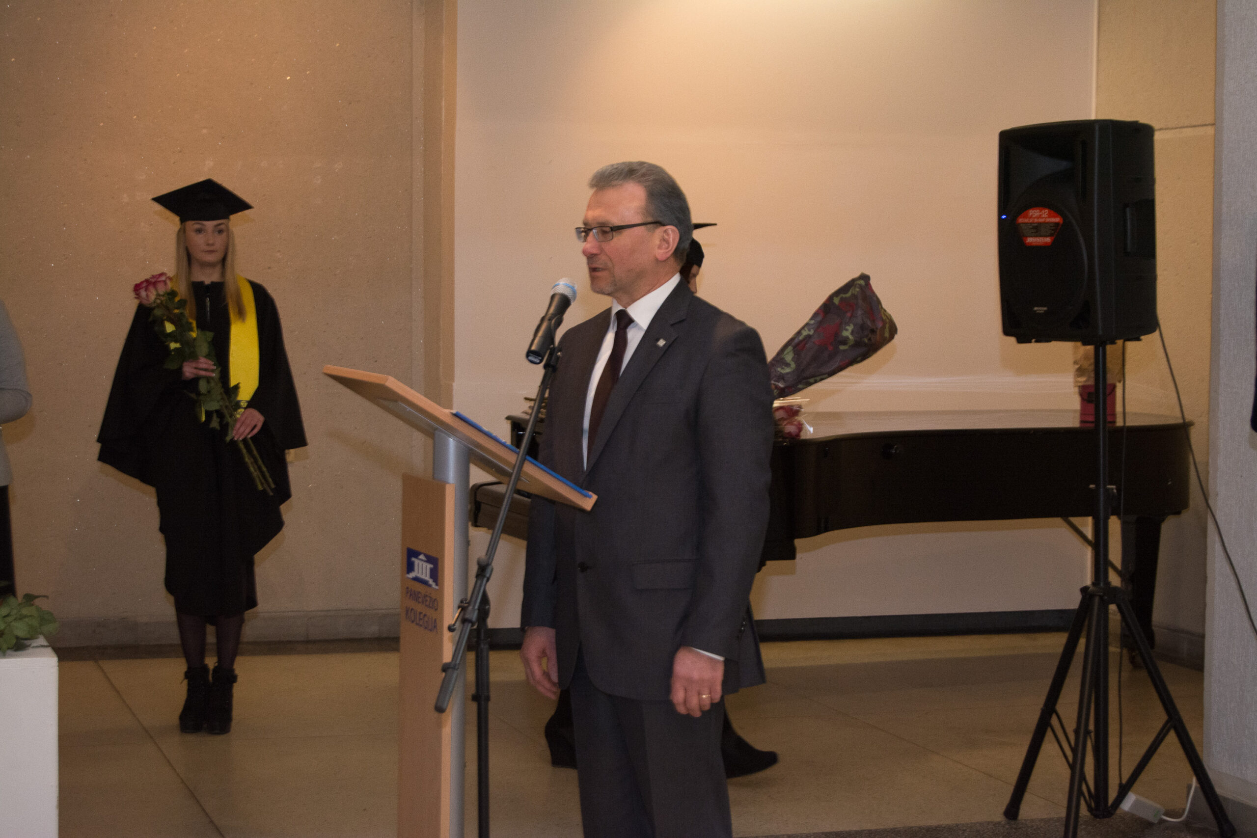 Panevėžio kolegijos direktorius Gedimas Sargūnas sveikindamas studentes neslėpė pasididžiavimo ir išreiškė viltį, kad diplomas rankose atrakins visas norimas duris.