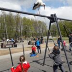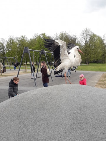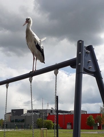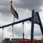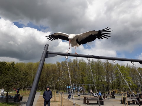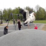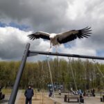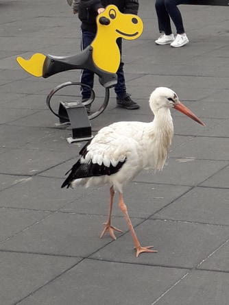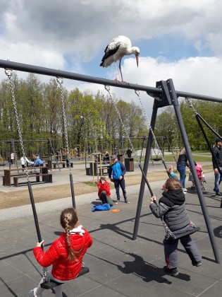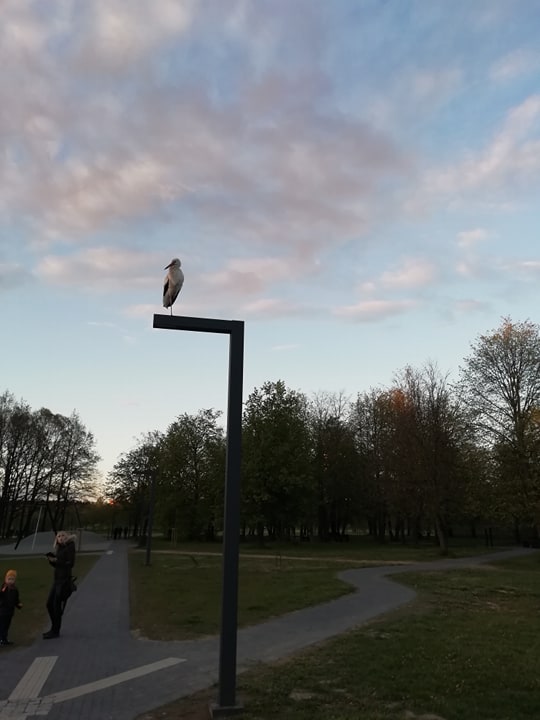 Į atnaujintą Kultūros ir poilsio parką pramogauti besirenkantys panevėžiečiai nustebo čia išvydę vaikštinėjantį gandrą.