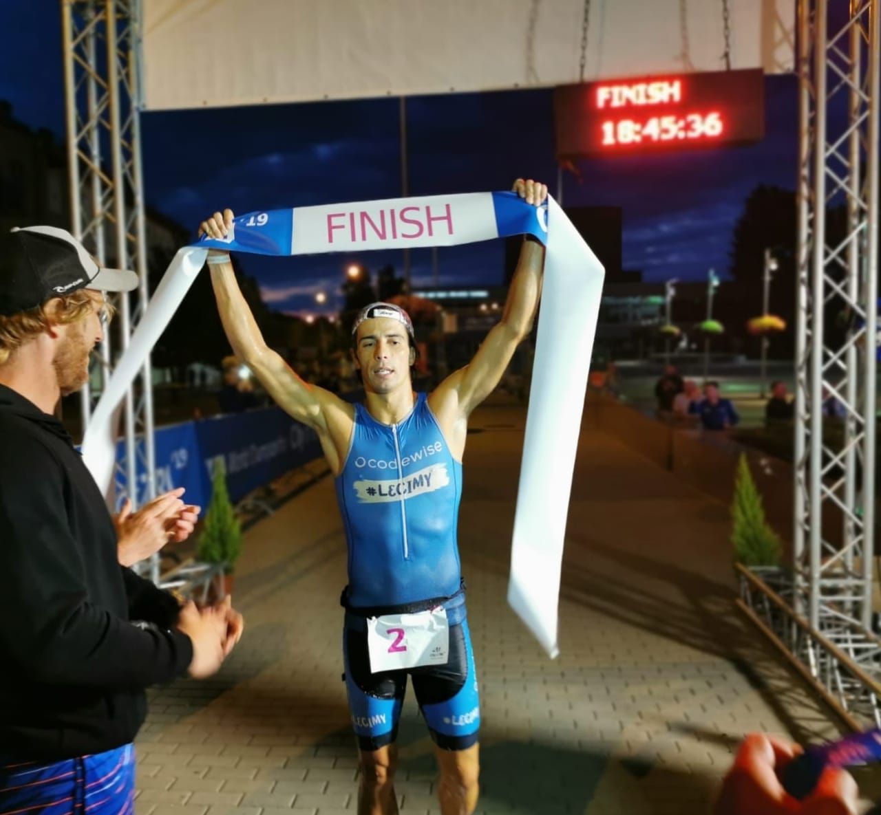Sportininkas iš Lenkijos plaukimo (7.6 km), važiavimo dviračiu (360 km) ir bėgimo rungtyse (84,4 km) iš viso sugaišo 18:44:38 val.