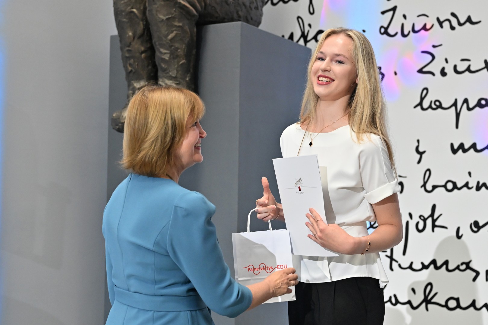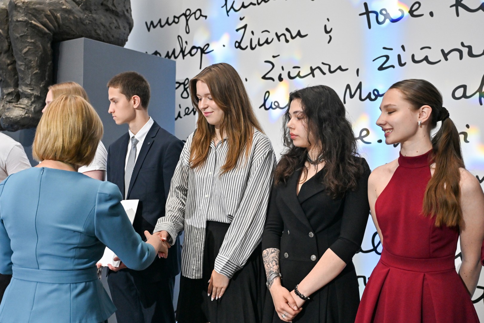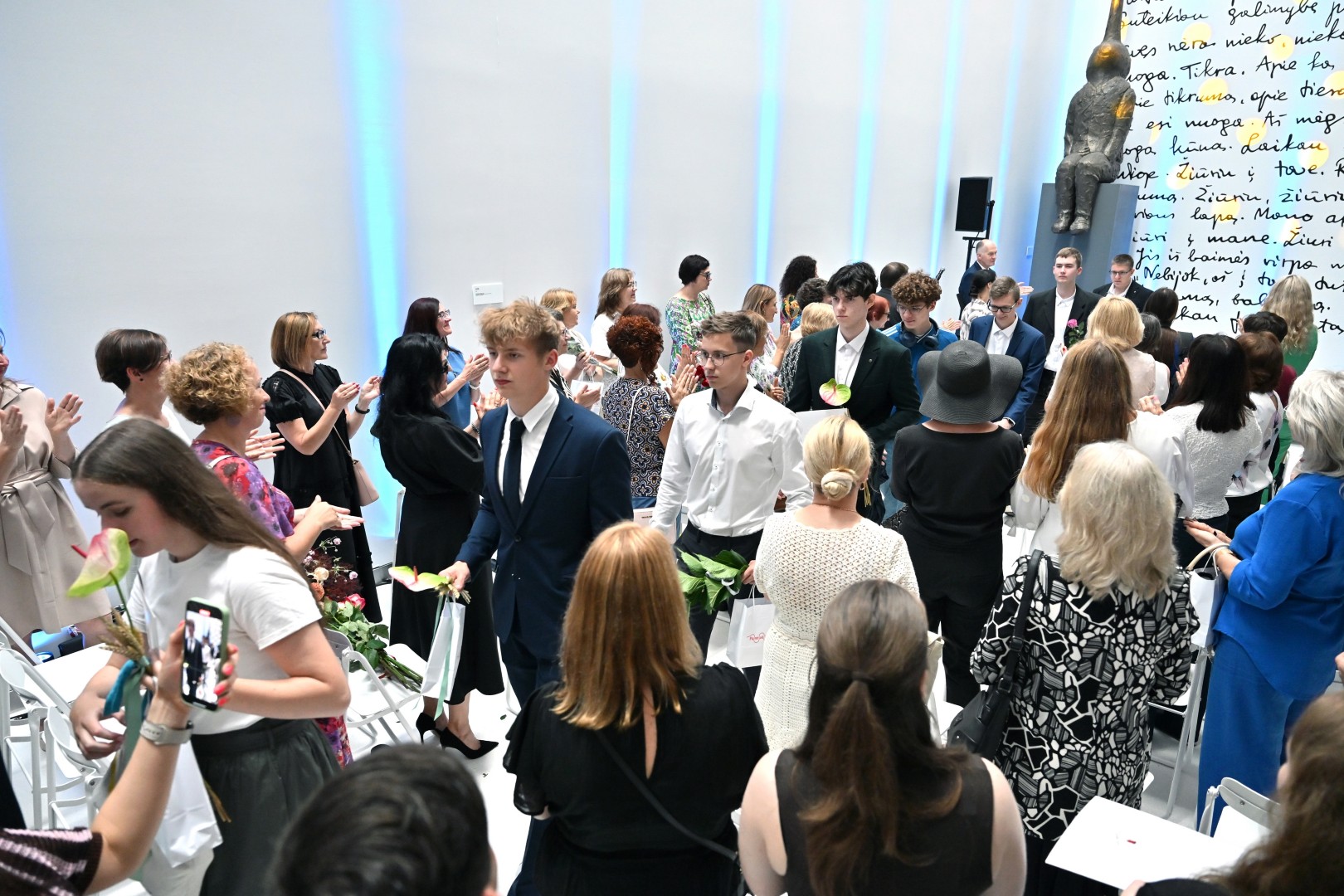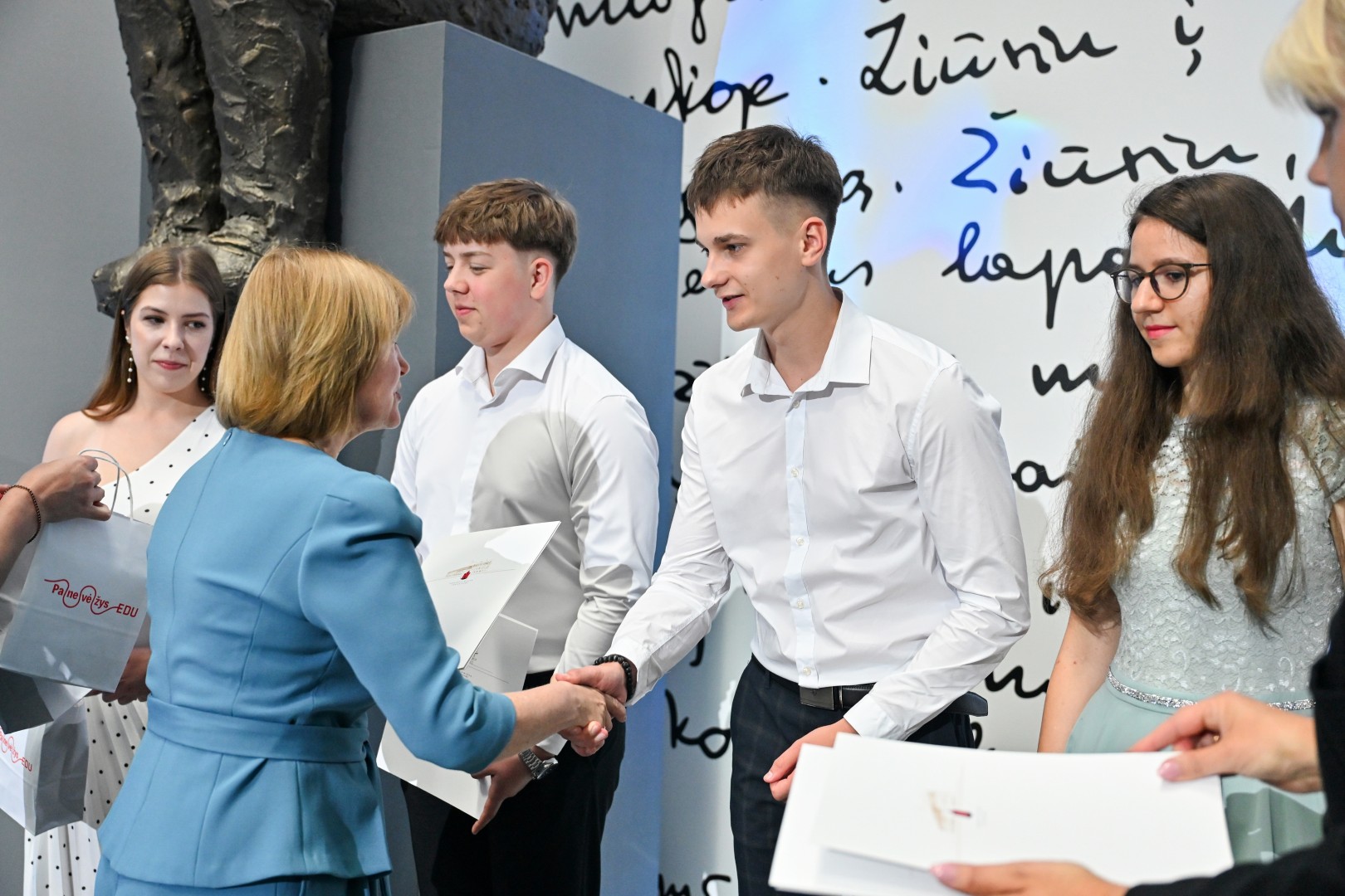 „Šiandien – ypatinga proga. Šiandien sveikinu jus – jaunus, talentingus, atkaklius. Tuos, kurie pasiekė aukščiausią žinių įvertinimą – šimtuką. Šis rezultatas – ne atsitiktinumas. Tai daugybės valandų, pastangų, valios ir tikėjimo savimi įrodymas. Ir jūs tą įrodėte! Didžiuojasi mokytojai, didžiuojasi tėvai. Didžiuojasi visas Panevėžys. Linkiu nepamesti to vidinio variklio – smalsumo, drąsos, noro ieškoti. Linkiu rinktis kelius, kurie įkvepia, net jei jie nėra lengviausi. Ir kur bebūtumėte – nepamirškite miesto, kuriame prasidėjo jūsų gyvenimo kelionė. Panevėžys – tai dalis jūsų. Ir jis visada jūsų laukia“, – sveikinimo žodį tarė Panevėžio miesto merė Loreta Masiliūnienė.