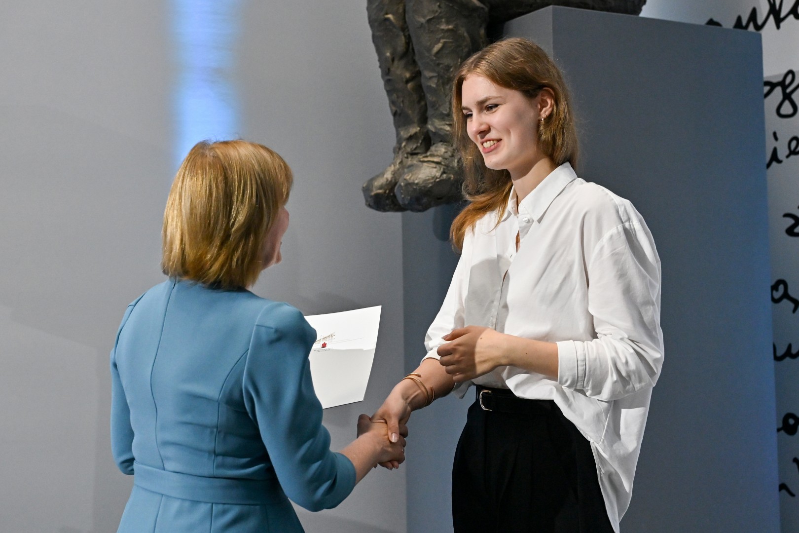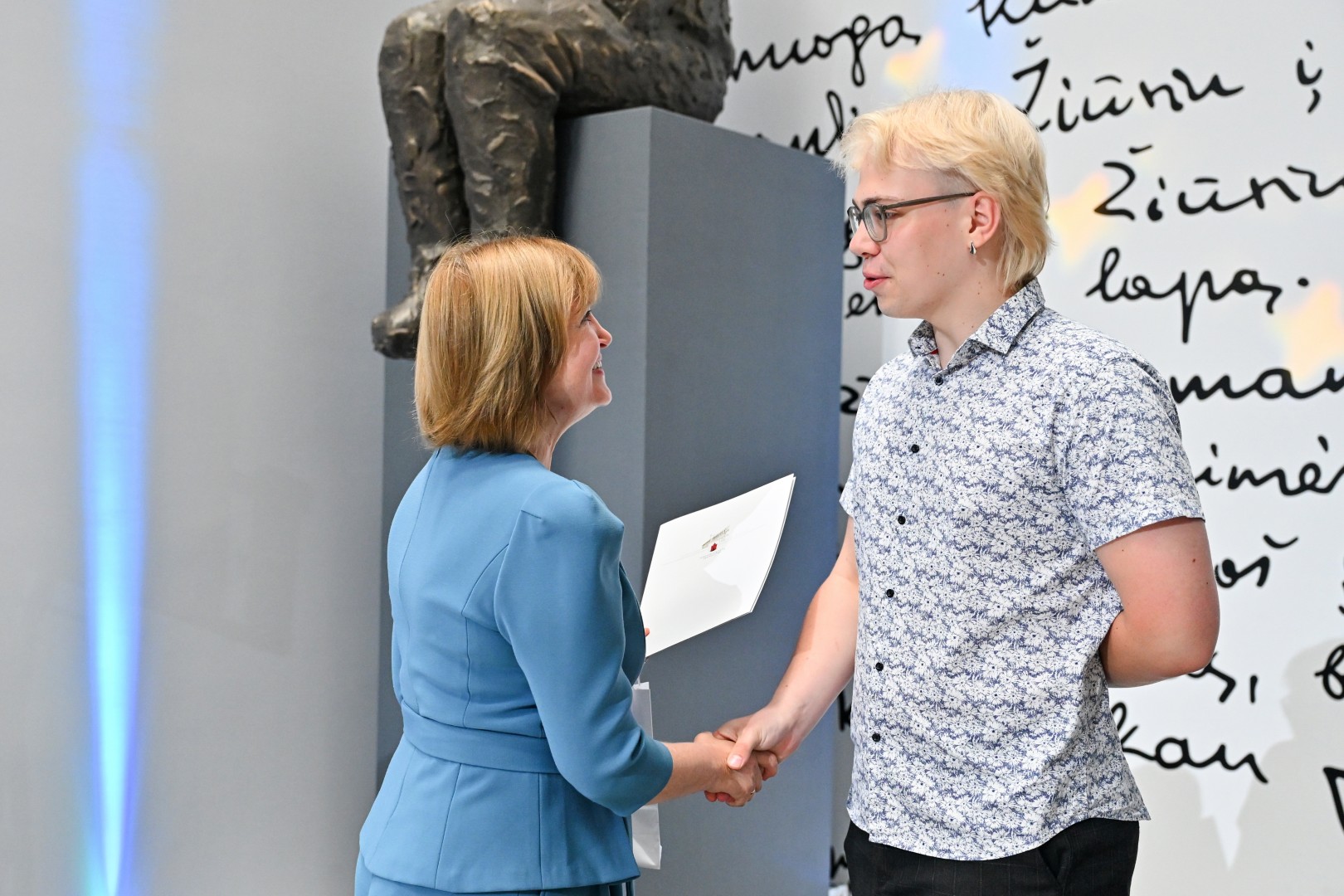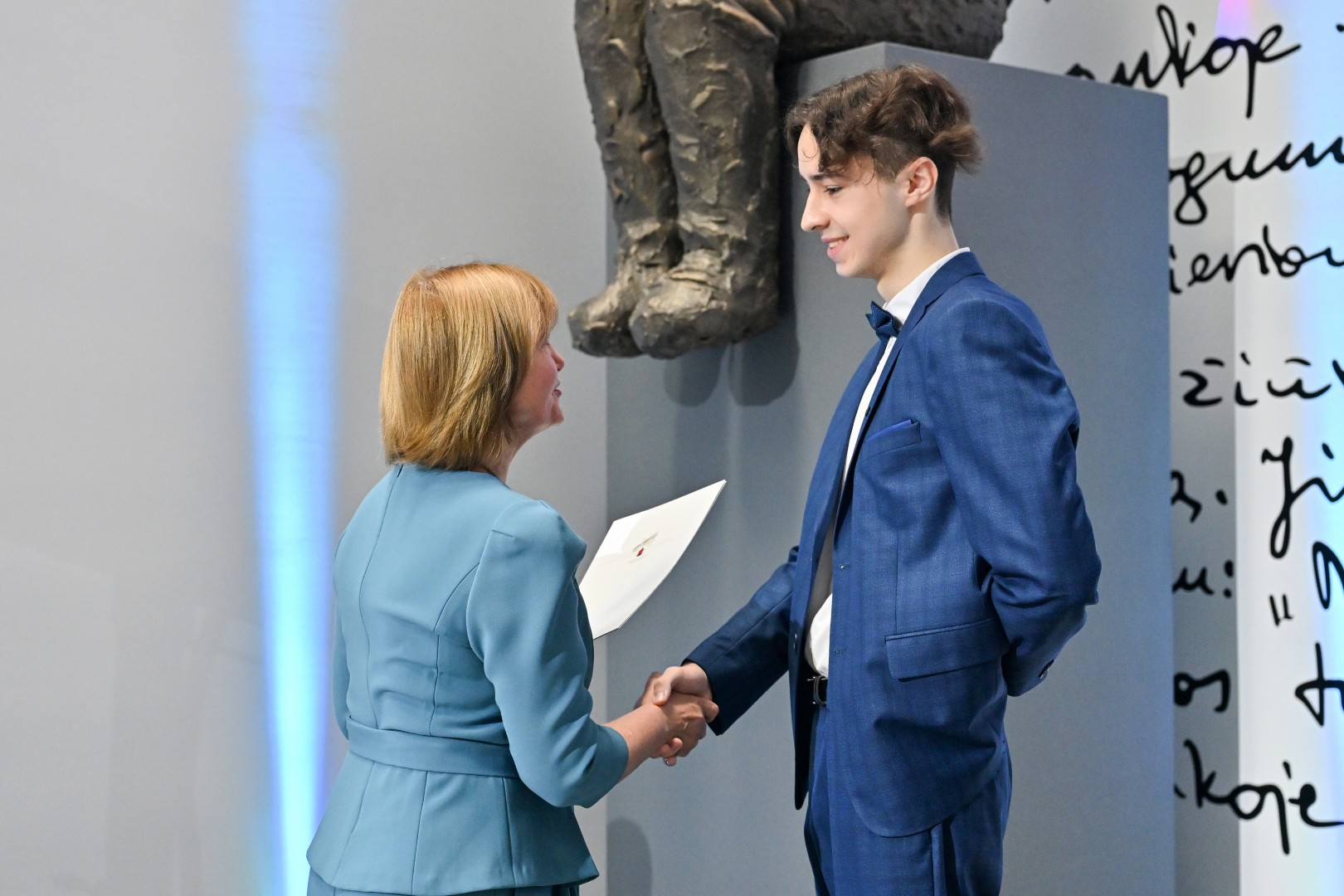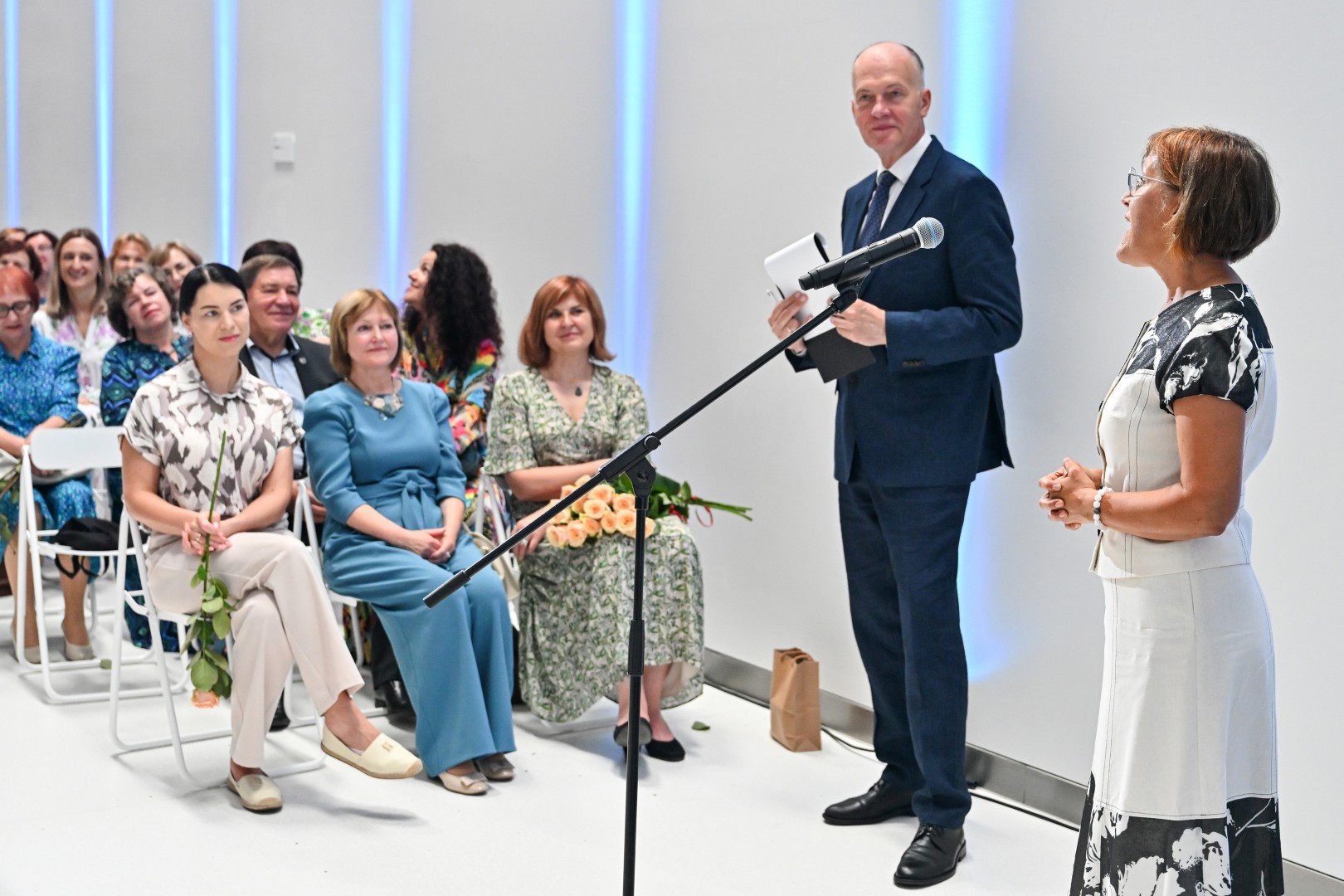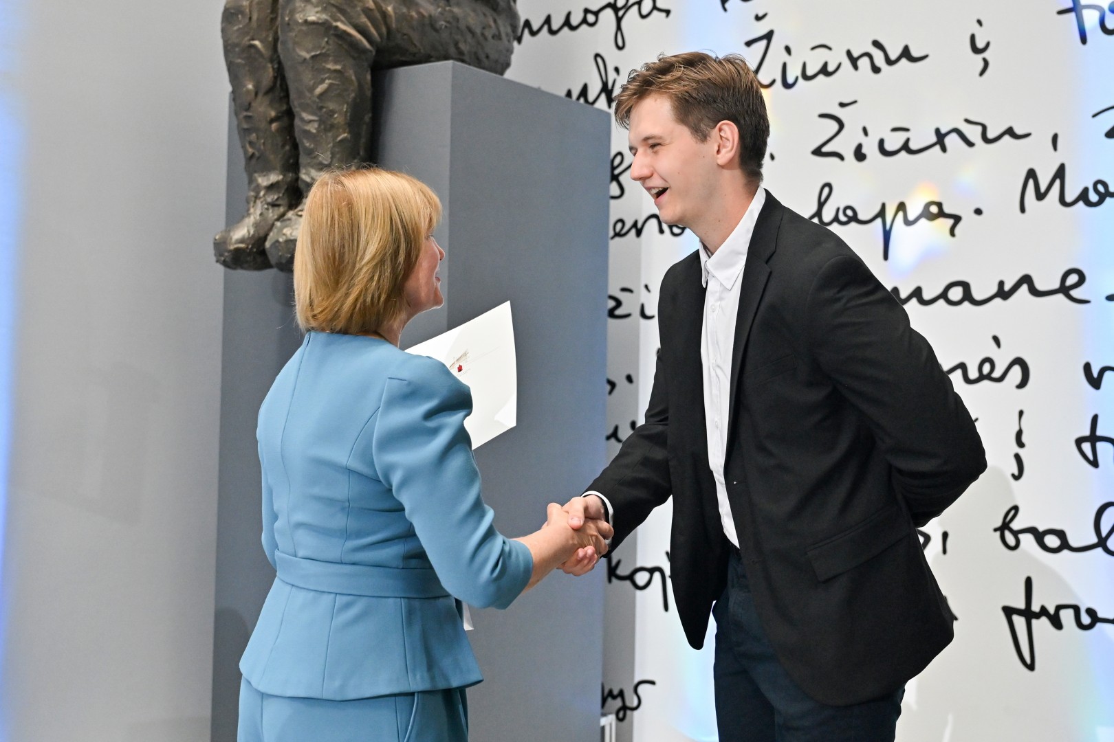 „Šiandien – ypatinga proga. Šiandien sveikinu jus – jaunus, talentingus, atkaklius. Tuos, kurie pasiekė aukščiausią žinių įvertinimą – šimtuką. Šis rezultatas – ne atsitiktinumas. Tai daugybės valandų, pastangų, valios ir tikėjimo savimi įrodymas. Ir jūs tą įrodėte! Didžiuojasi mokytojai, didžiuojasi tėvai. Didžiuojasi visas Panevėžys. Linkiu nepamesti to vidinio variklio – smalsumo, drąsos, noro ieškoti. Linkiu rinktis kelius, kurie įkvepia, net jei jie nėra lengviausi. Ir kur bebūtumėte – nepamirškite miesto, kuriame prasidėjo jūsų gyvenimo kelionė. Panevėžys – tai dalis jūsų. Ir jis visada jūsų laukia“, – sveikinimo žodį tarė Panevėžio miesto merė Loreta Masiliūnienė.