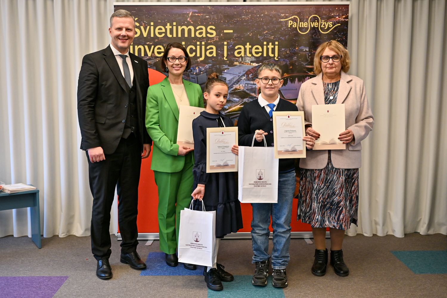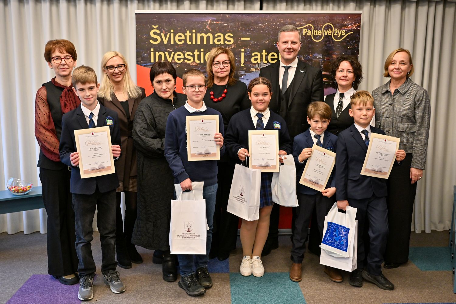 „Jūsų laimėjimai rodo, kad Panevėžyje auga smalsūs, kūrybingi ir atkaklūs vaikai. Dėkoju mokytojams, kurie kuria sąlygas šiems talentams augti, ir tėvams – už palaikymą. Linkiu, kad šios pergalės taptų įkvėpimu naujiems žingsniams ir atradimams. Kiekvienas jūsų pasiekimas stiprina mūsų miesto ateitį“, – sakė Panevėžio vicemeras Deividas Labanavičius.