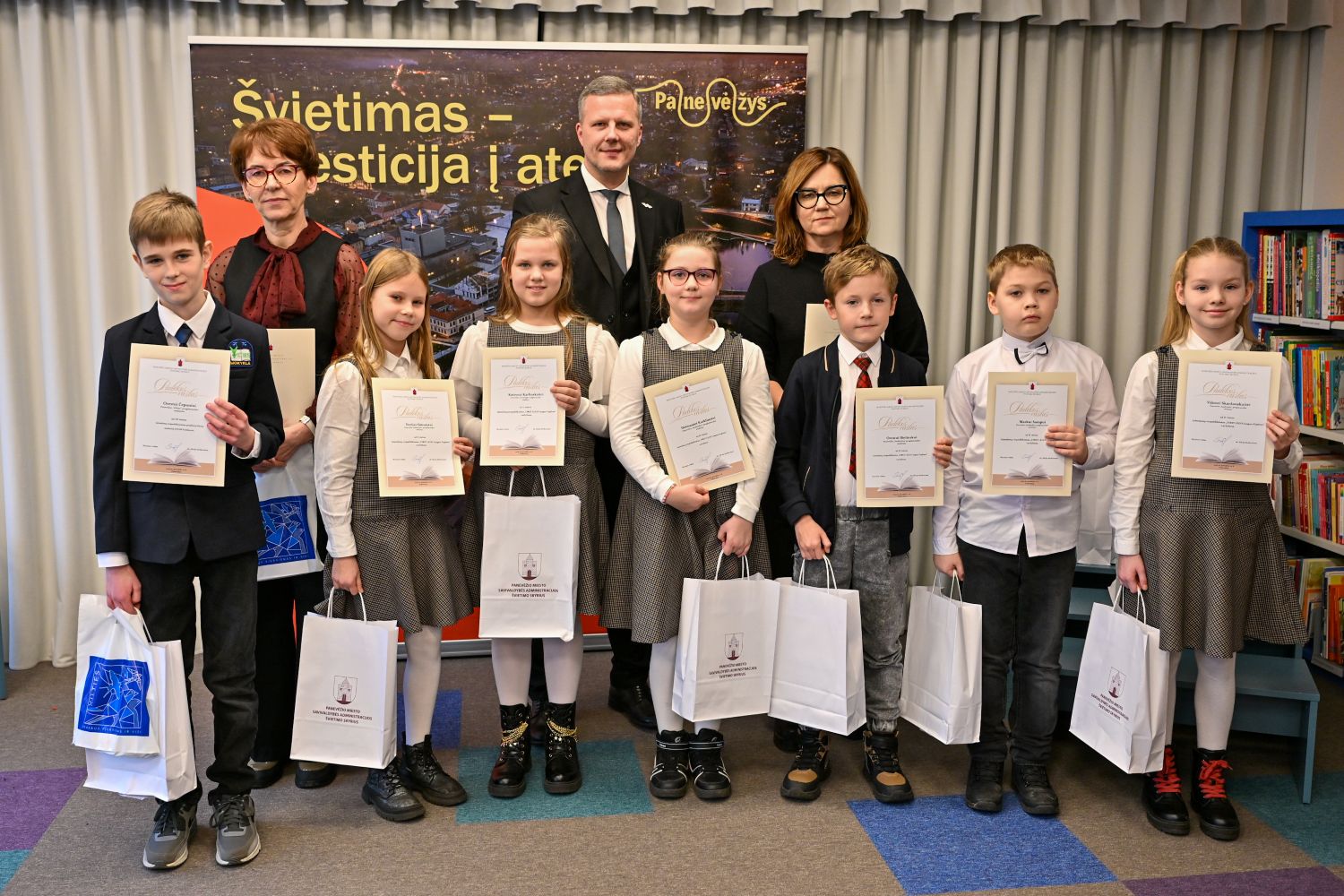 Panevėžyje pirmą kartą surengta miesto pradinių klasių mokinių, per 2024–2025 mokslo metus pelniusių aukščiausius rezultatus respublikinėse ir tarptautinėse dalykinėse olimpiadose, konkursuose ir kituose renginiuose, apdovanojimų šventė.
