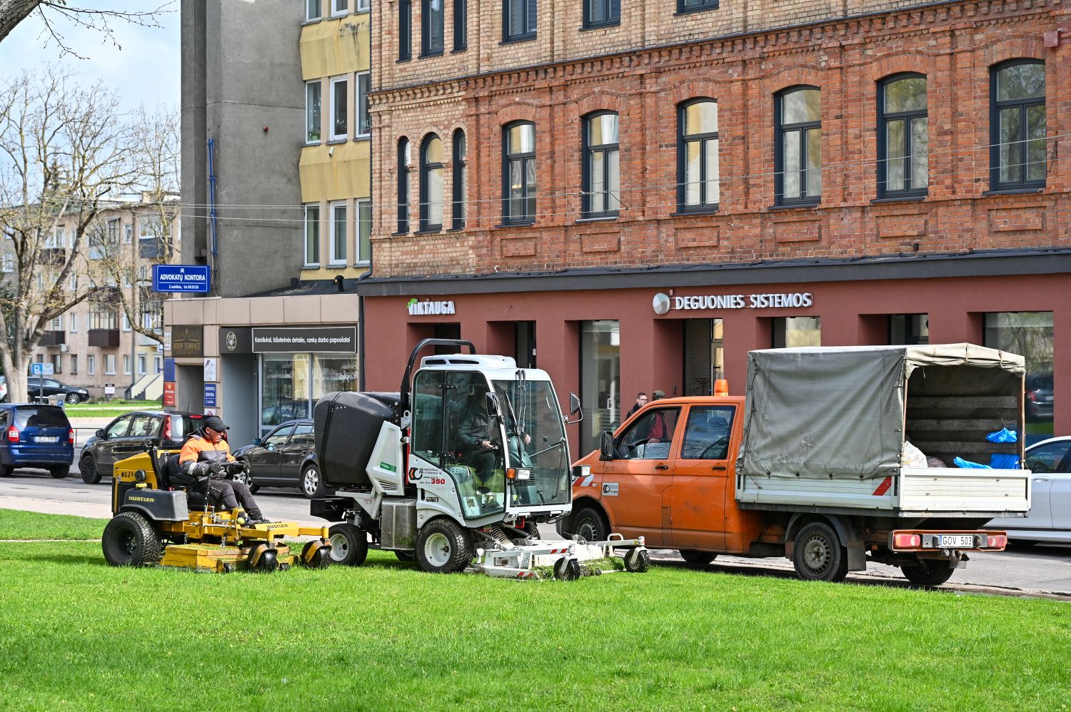 Panevėžyje jau pradėti žolės pjovimo darbai.