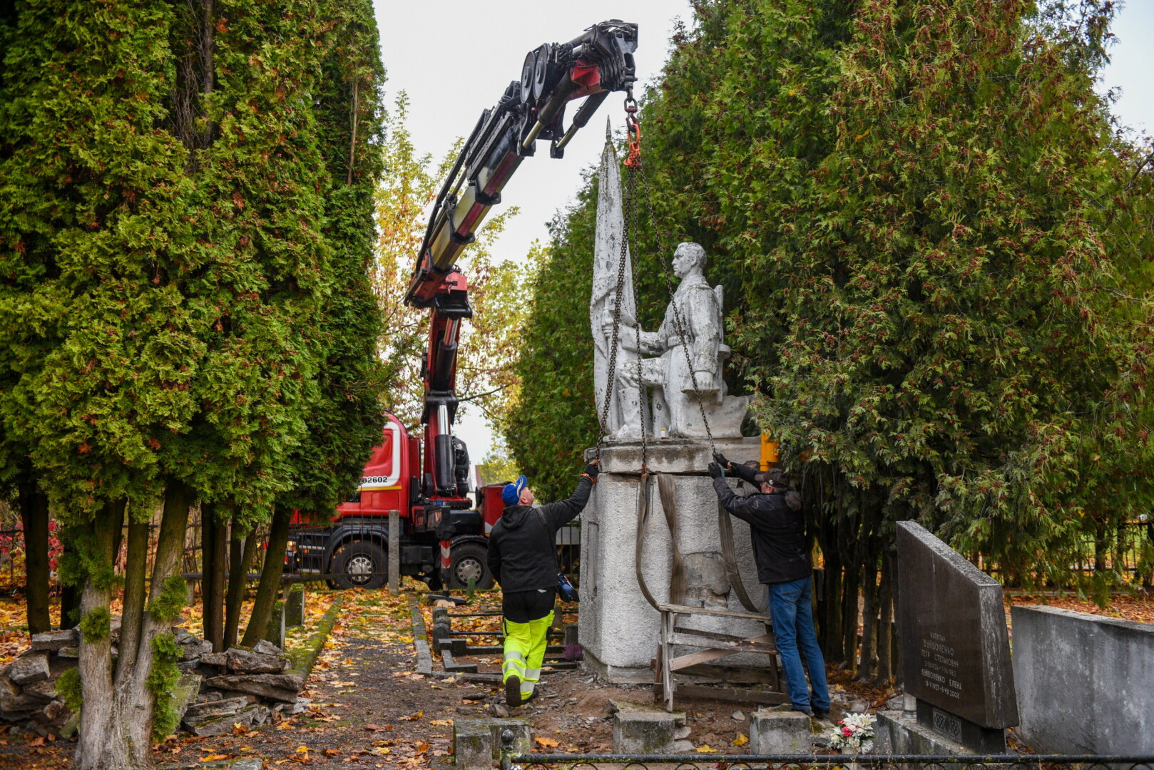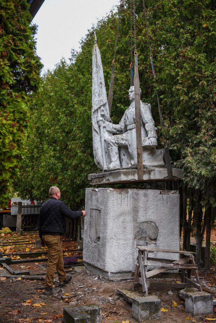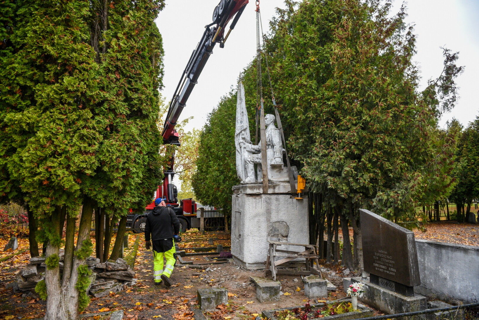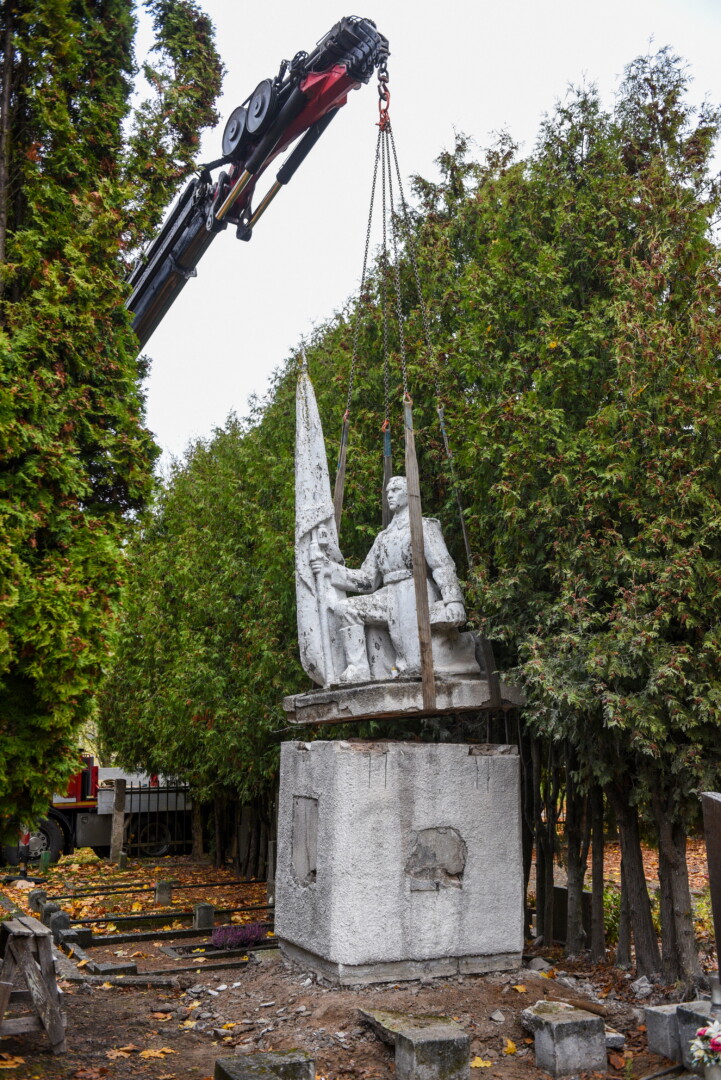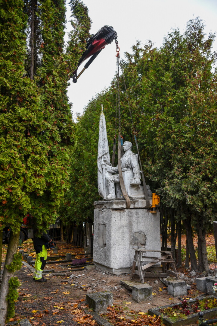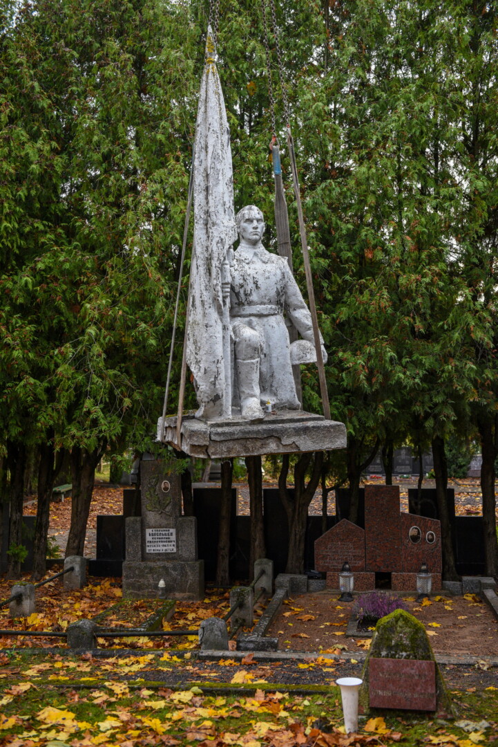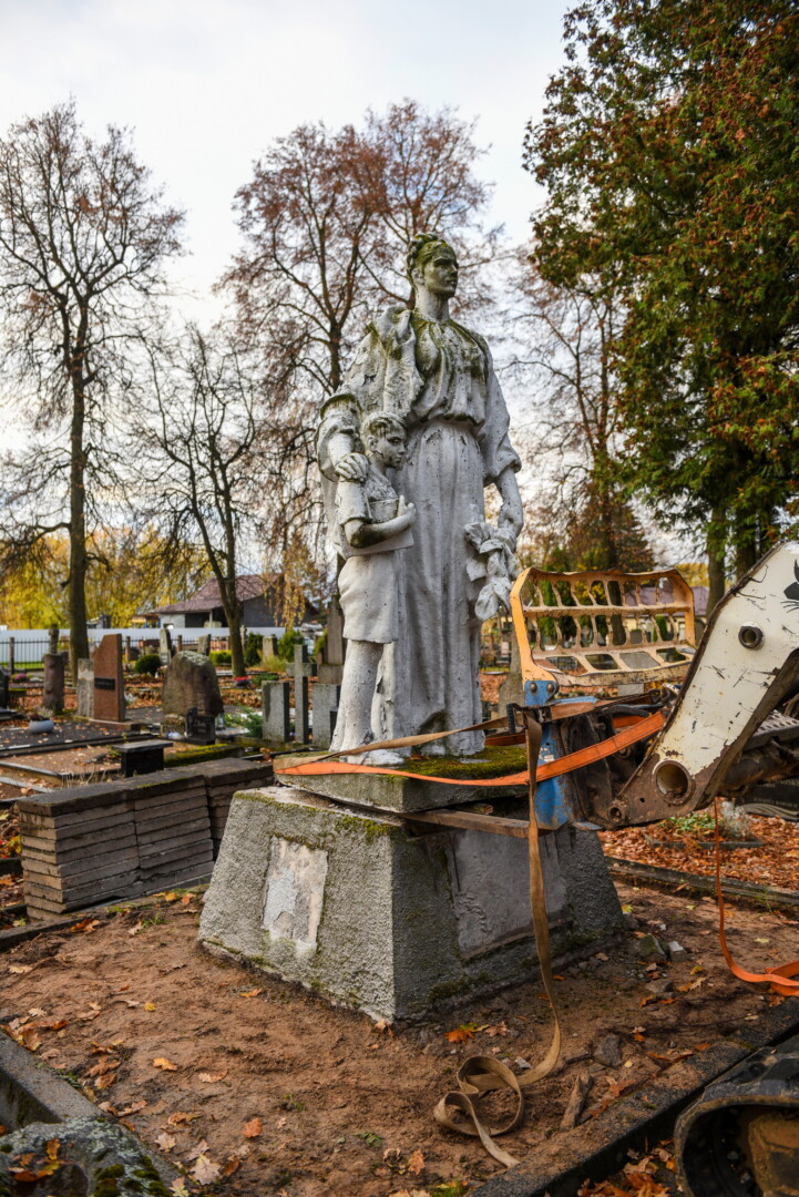 Savivaldybės konkursą laimėjusi bendrovė „Gerbūvio technika“ pradėjo demontuoti miesto kapinėse esančius sovietinius paminklus.