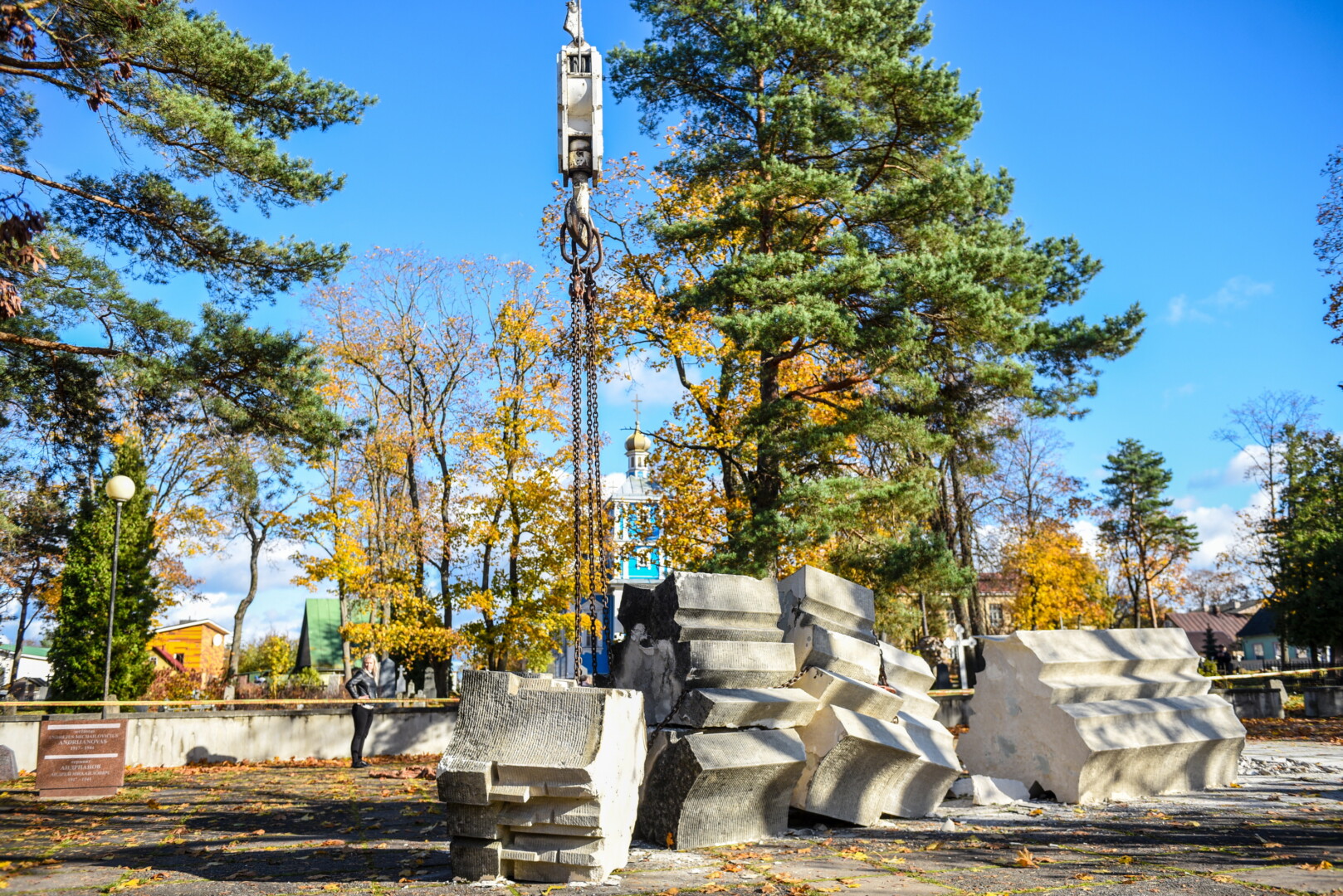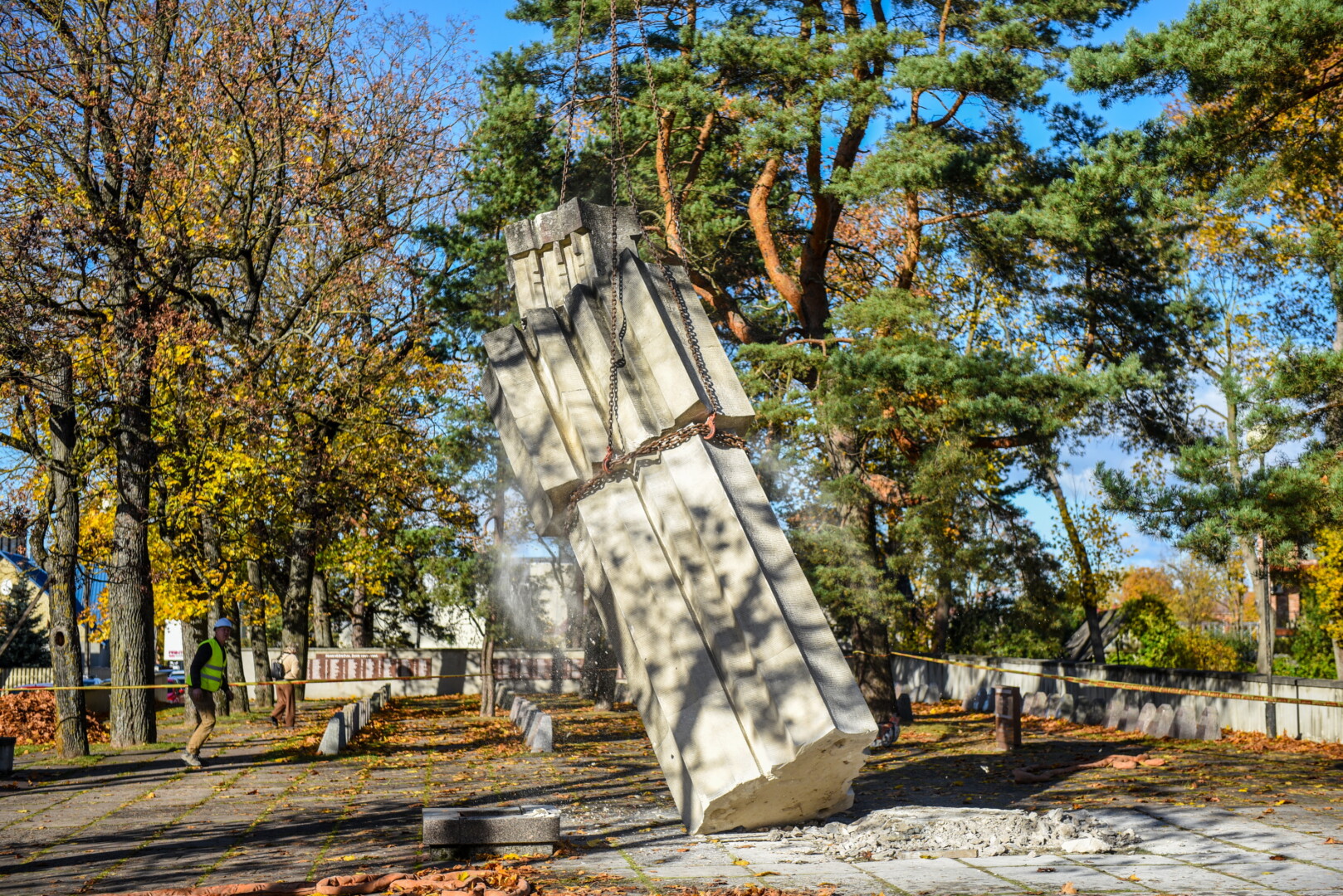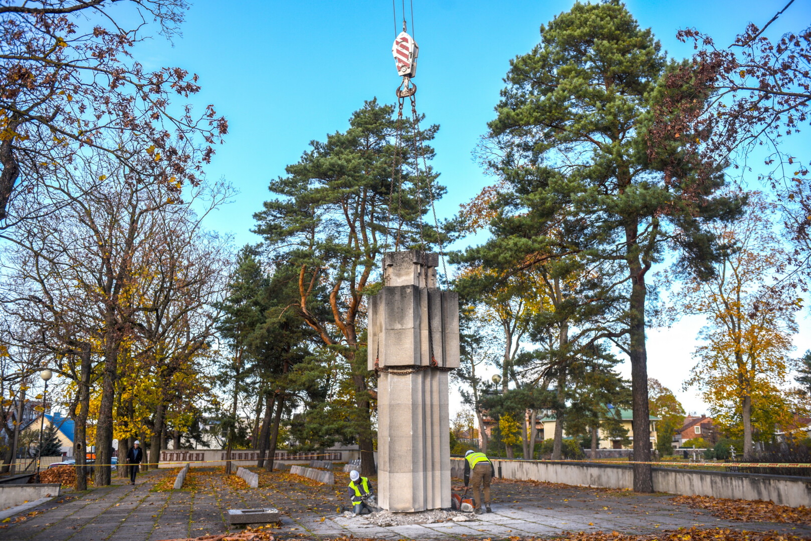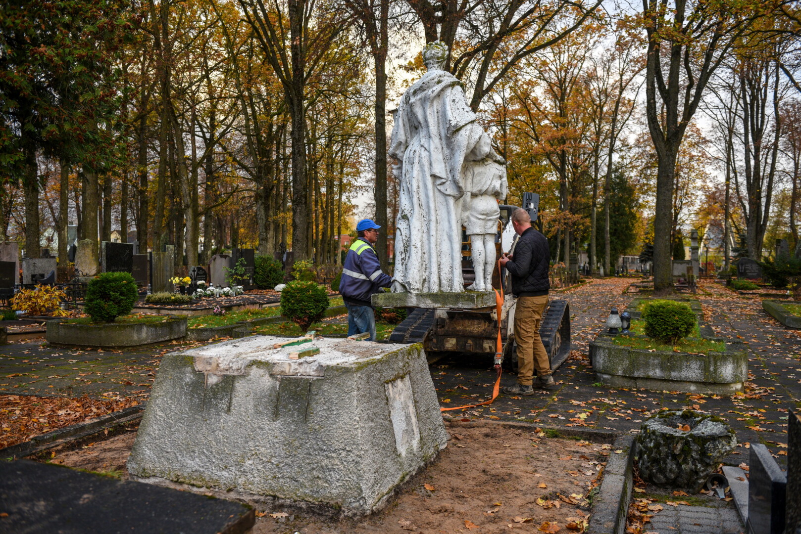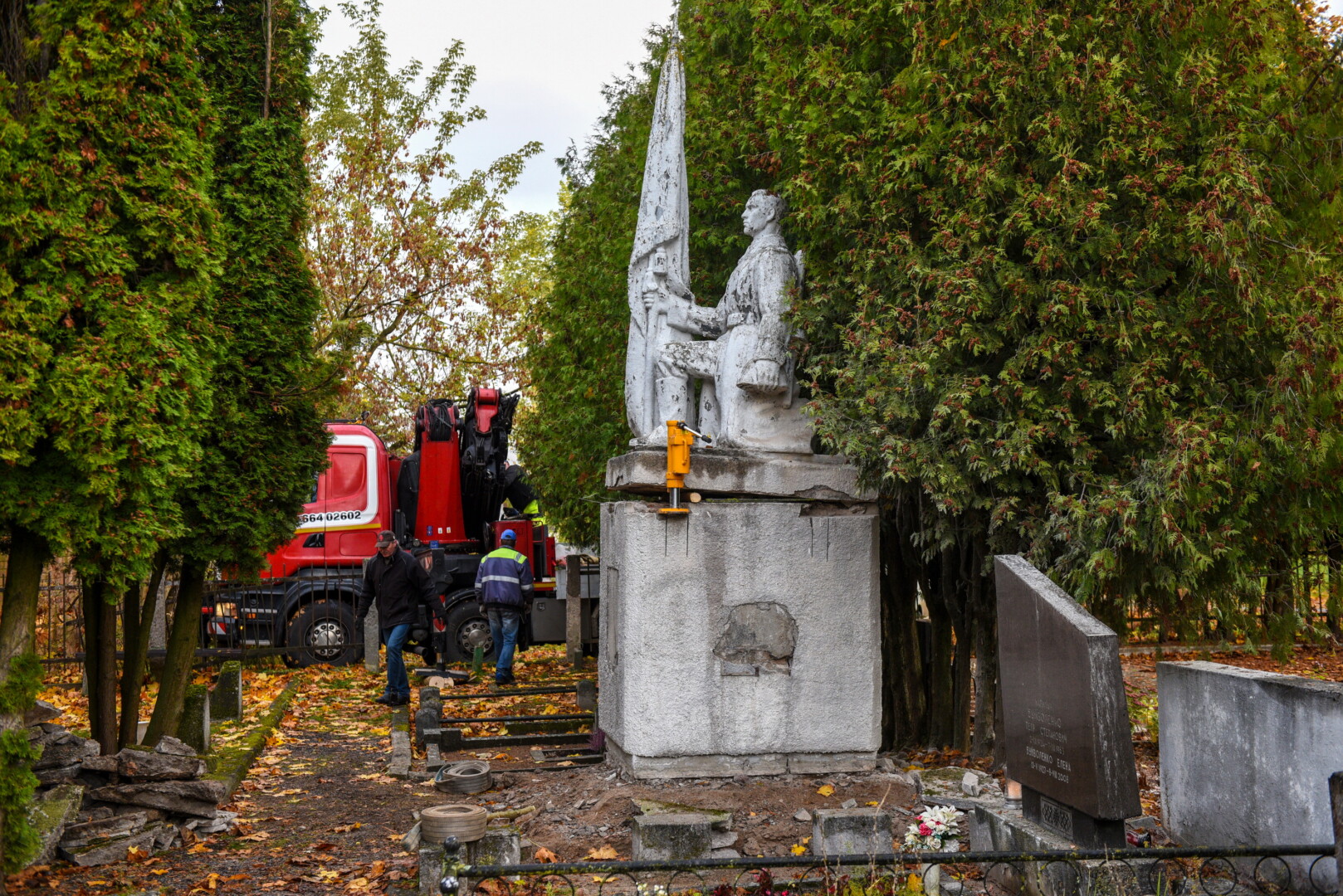 Savivaldybės konkursą laimėjusi bendrovė „Gerbūvio technika“ pradėjo demontuoti miesto kapinėse esančius sovietinius paminklus.