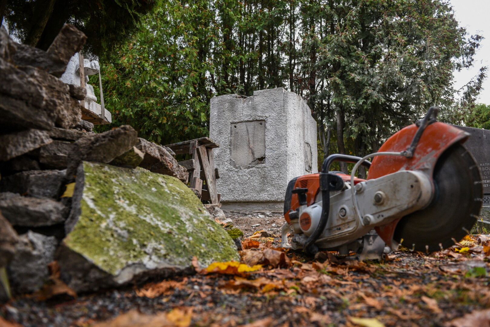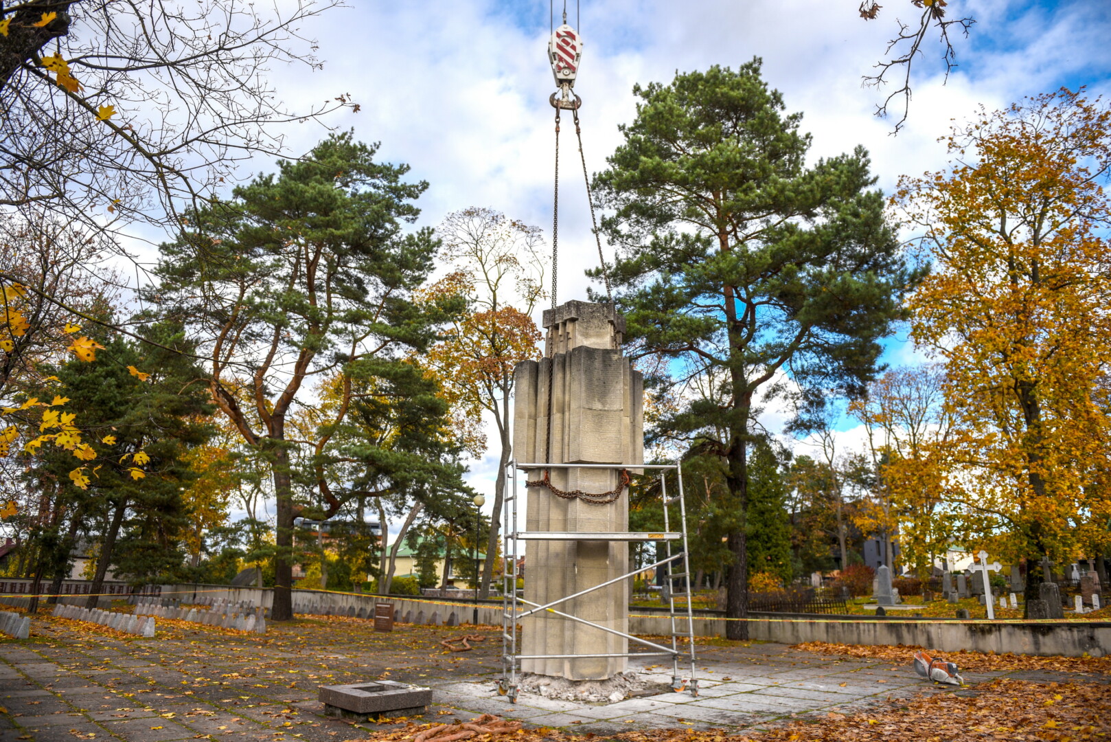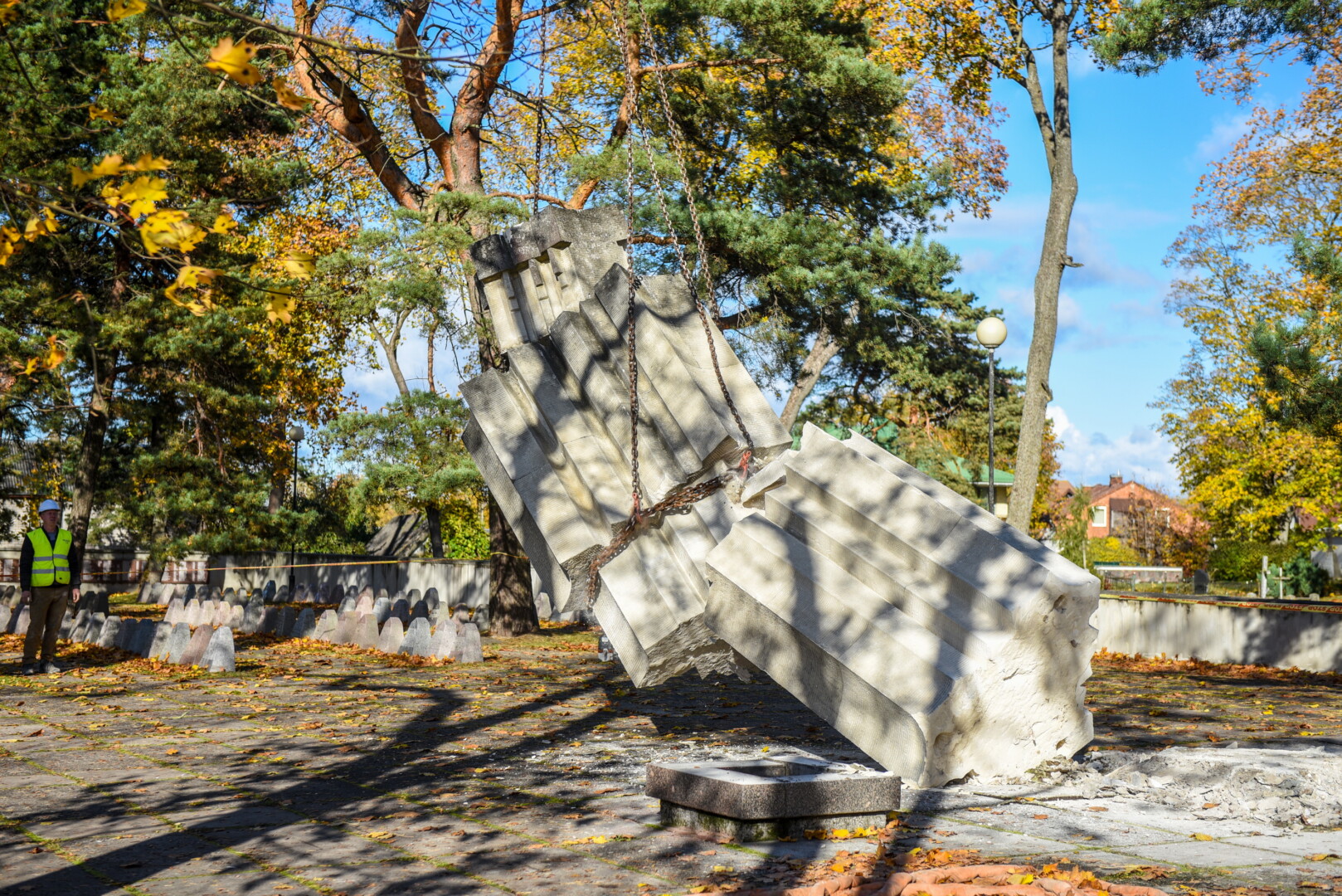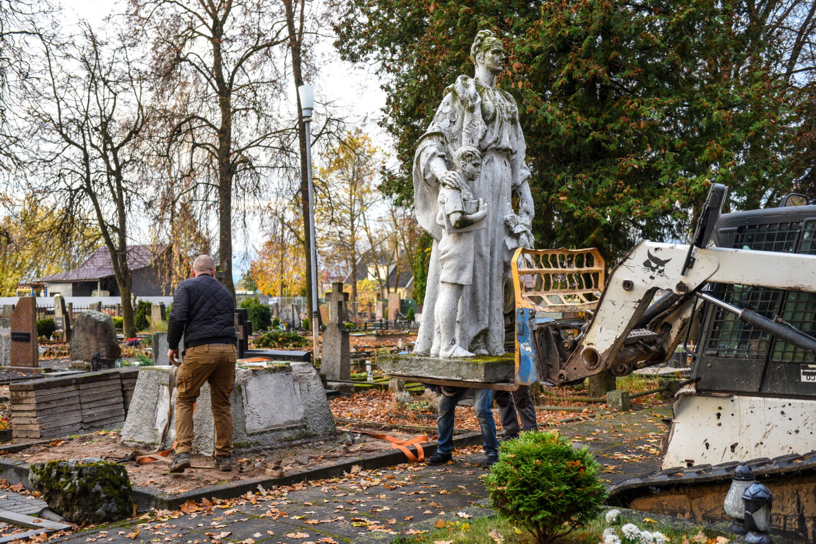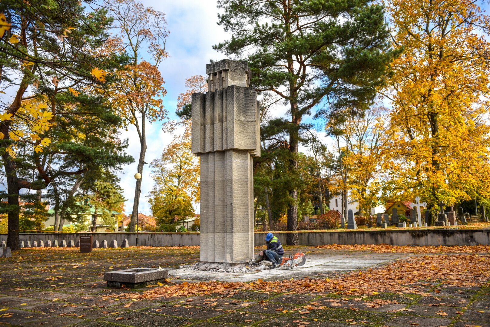 Savivaldybės konkursą laimėjusi bendrovė „Gerbūvio technika“ pradėjo demontuoti miesto kapinėse esančius sovietinius paminklus.