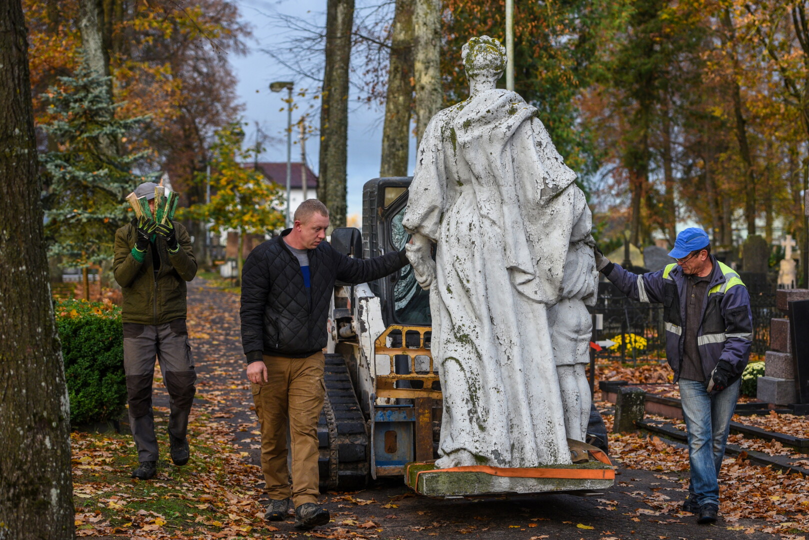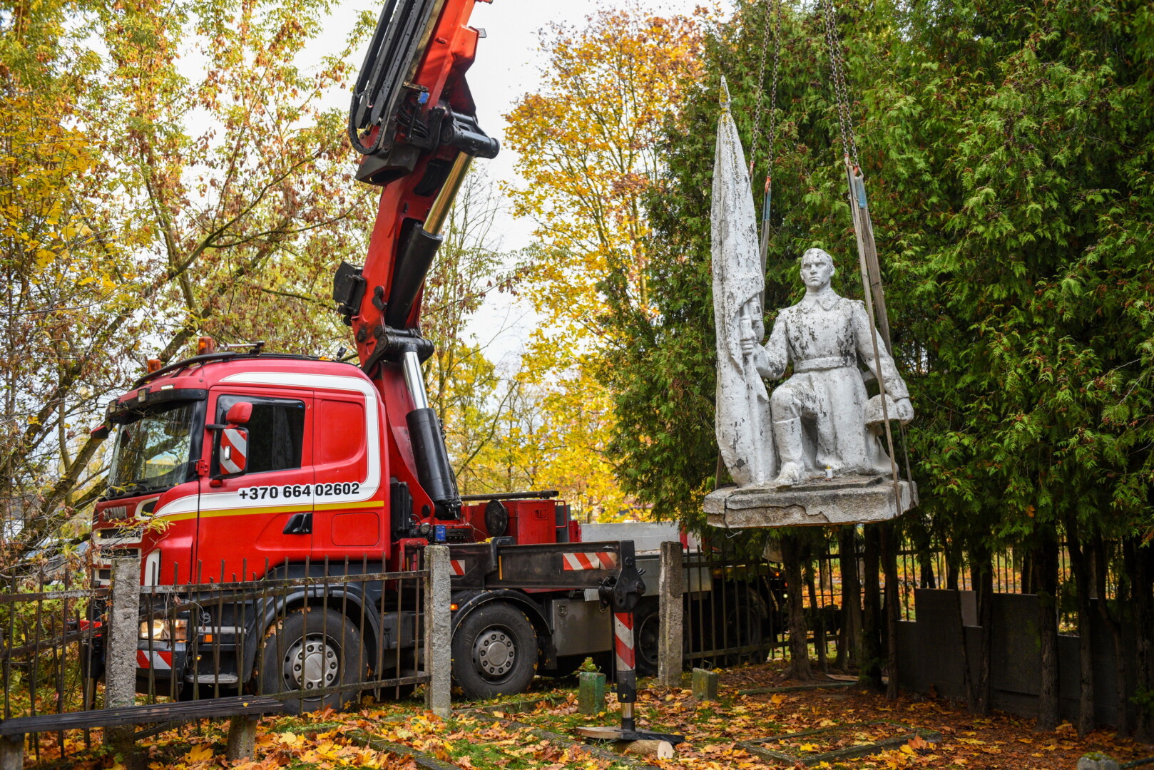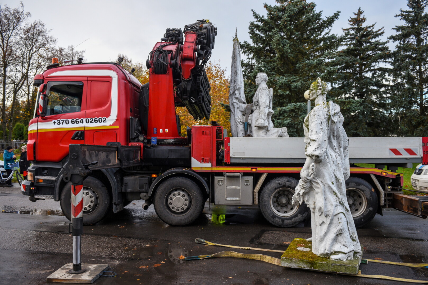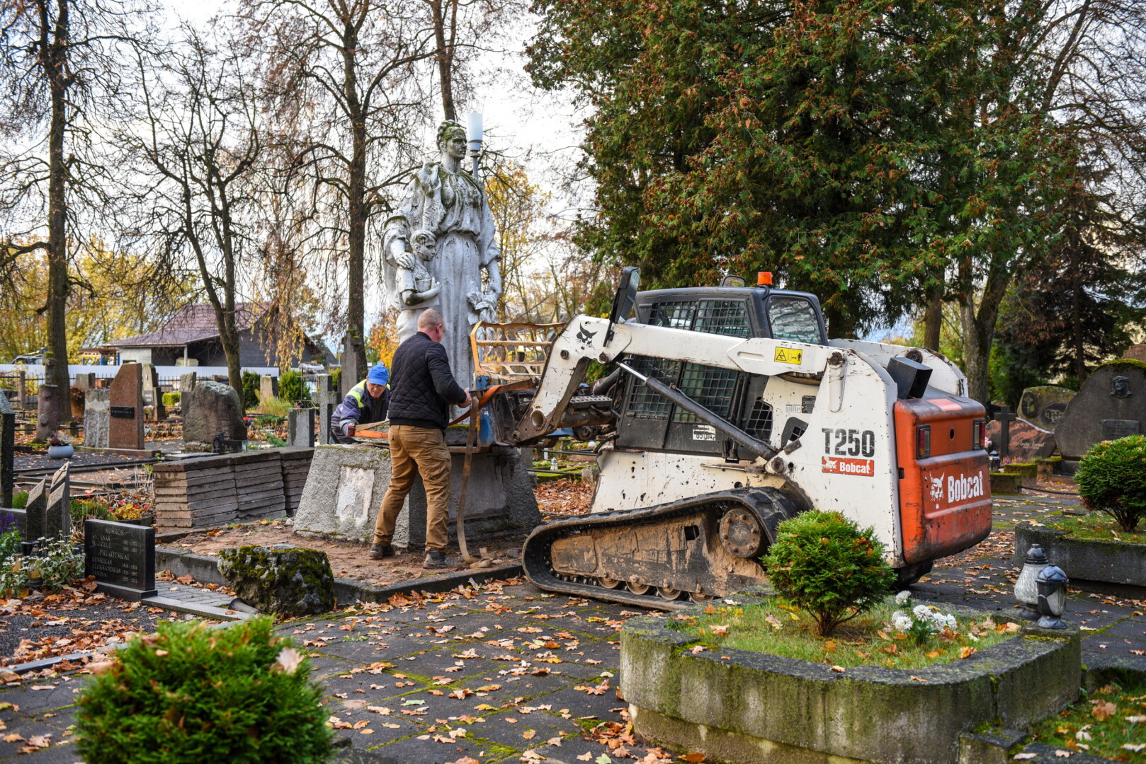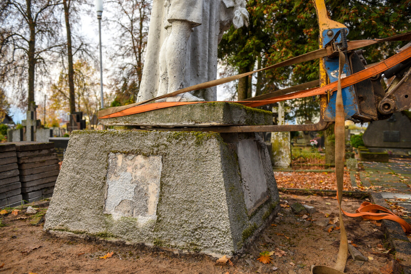 Savivaldybės konkursą laimėjusi bendrovė „Gerbūvio technika“ pradėjo demontuoti miesto kapinėse esančius sovietinius paminklus.