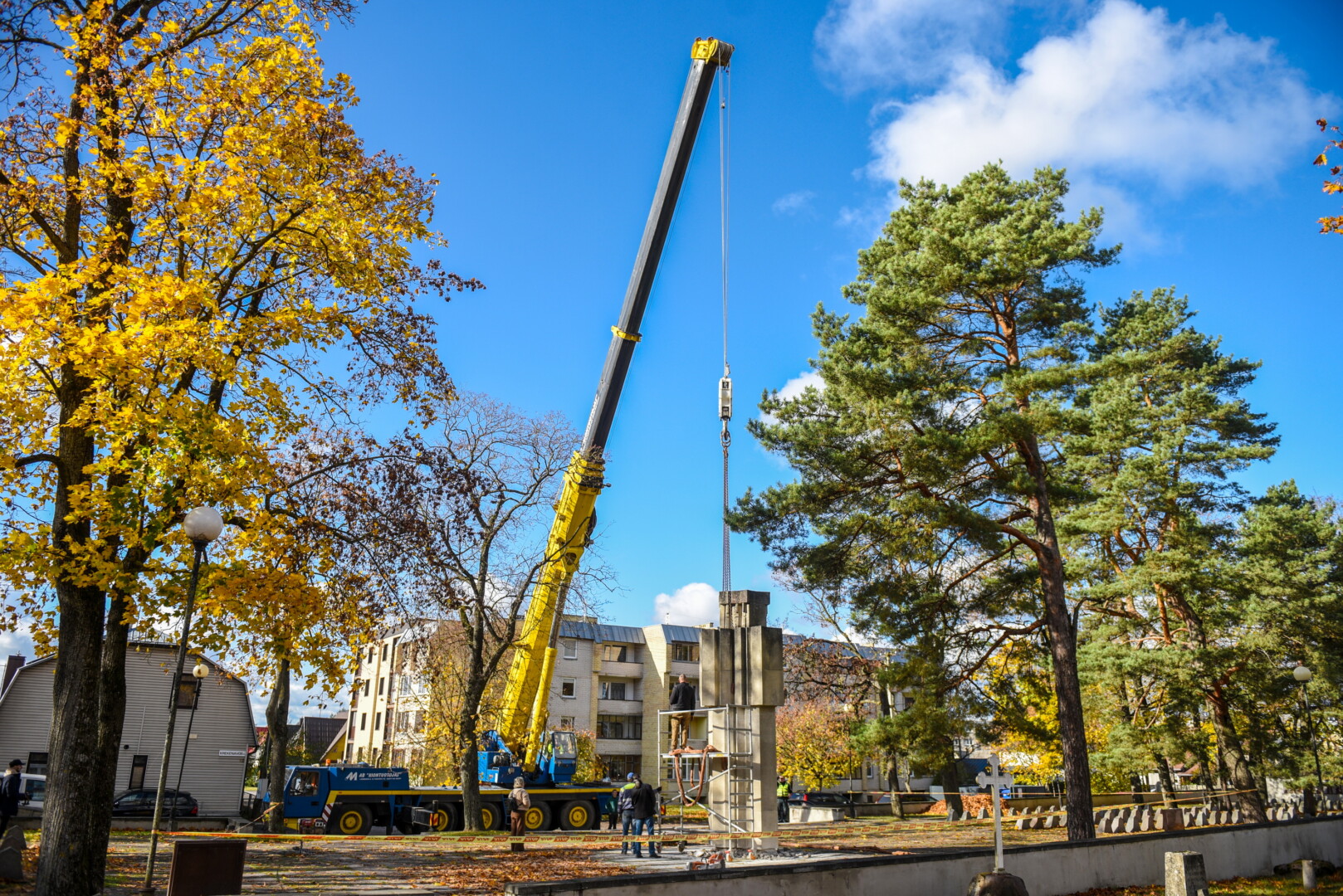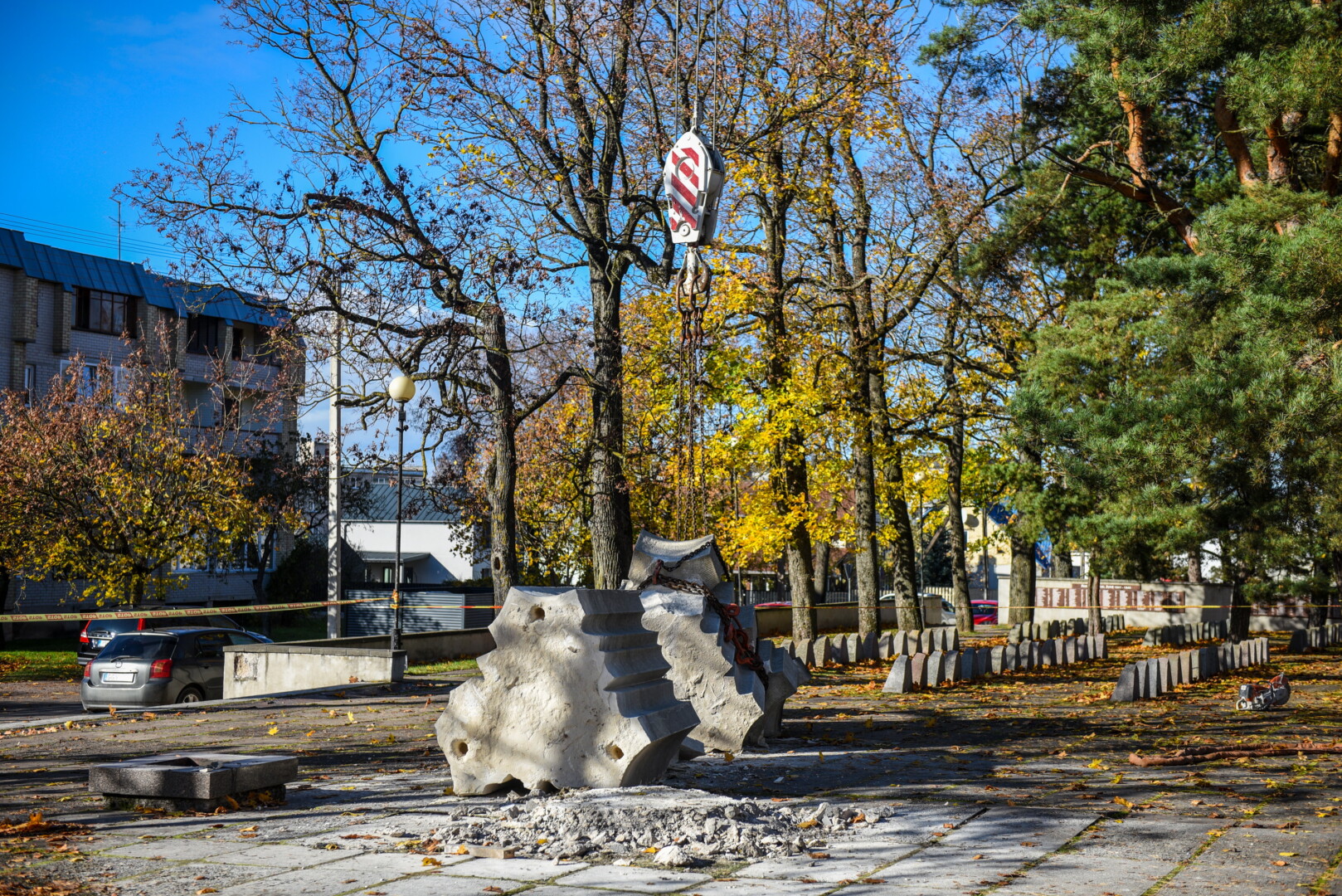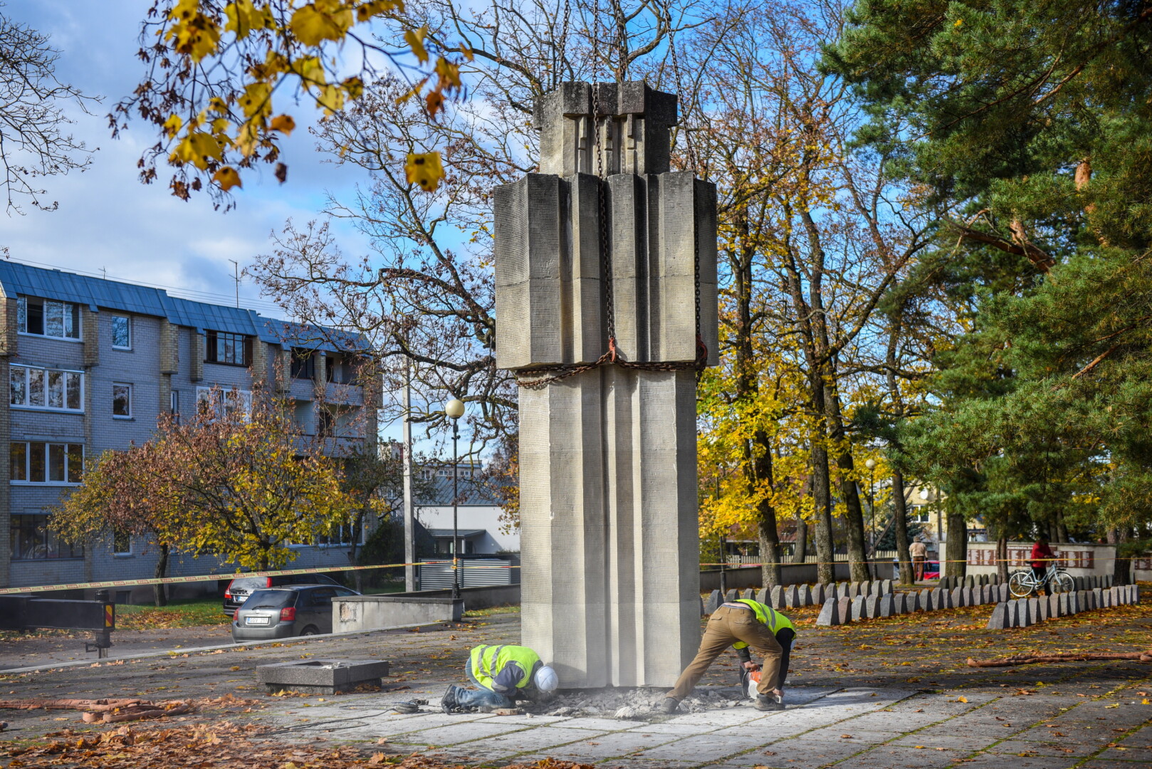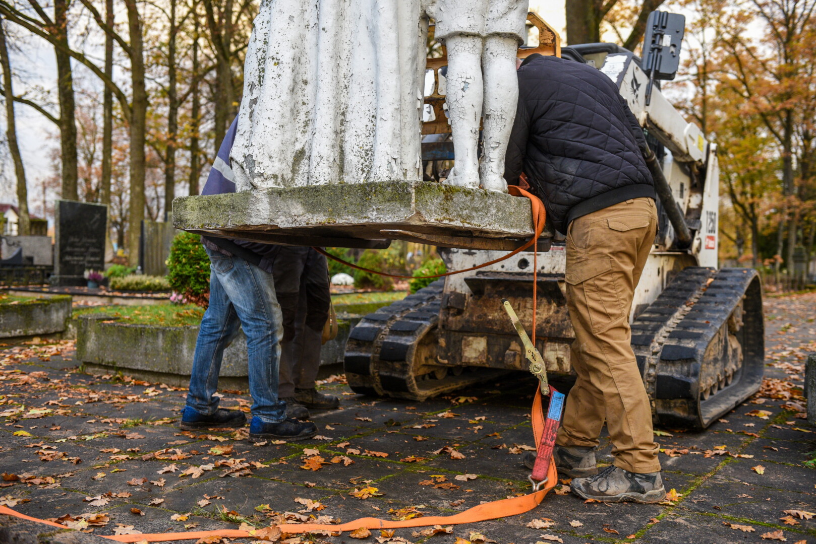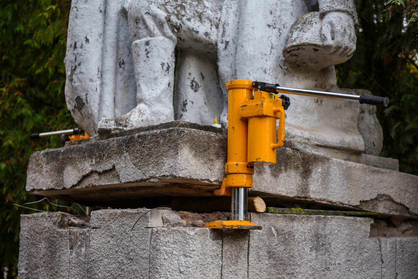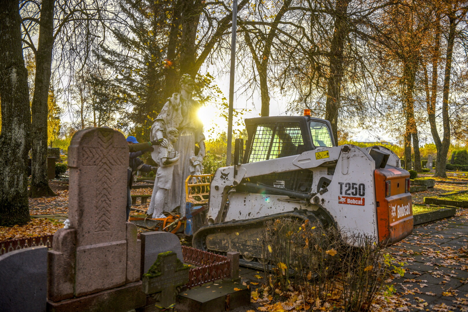 Savivaldybės konkursą laimėjusi bendrovė „Gerbūvio technika“ pradėjo demontuoti miesto kapinėse esančius sovietinius paminklus.