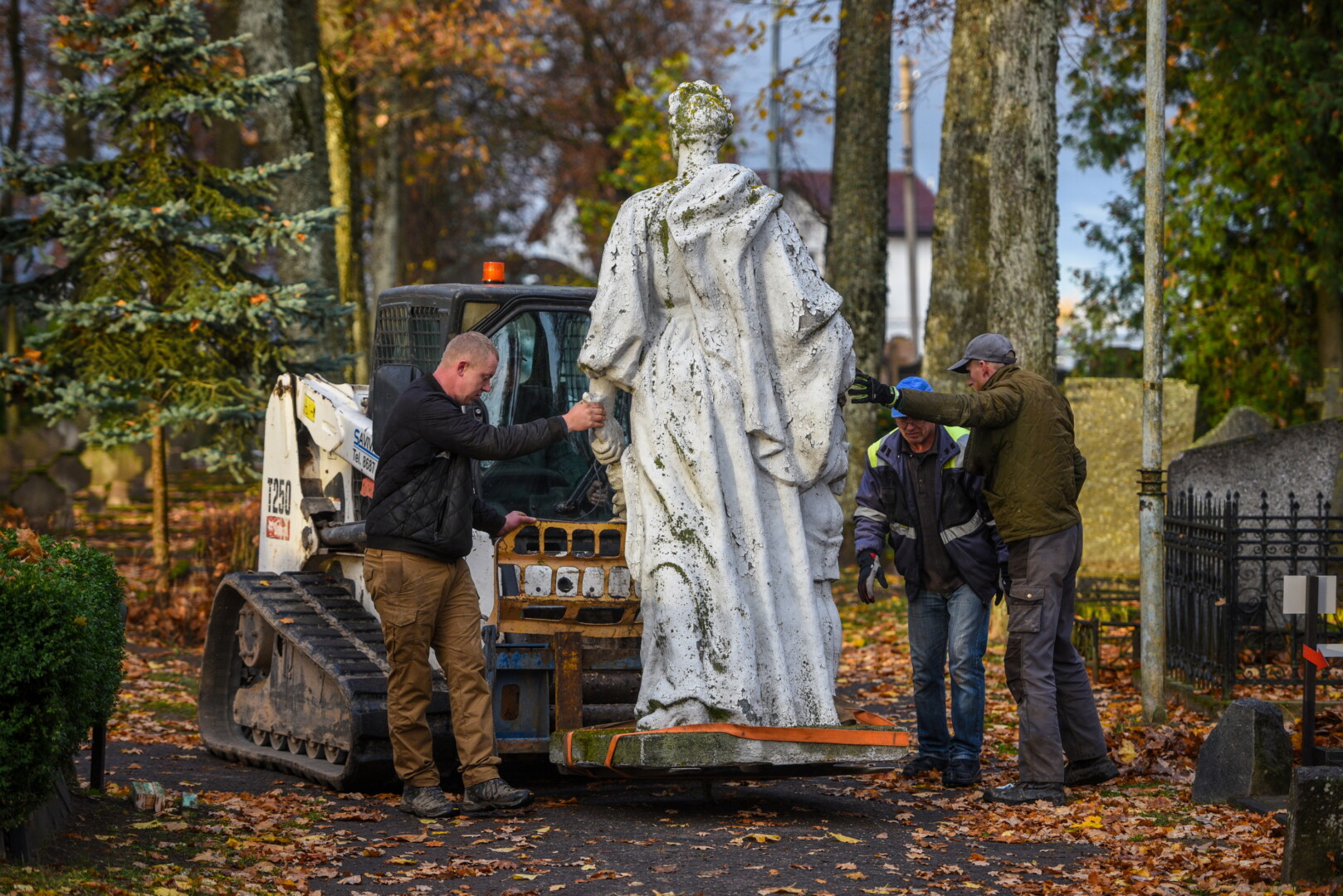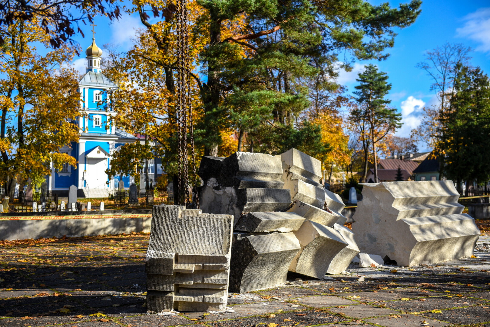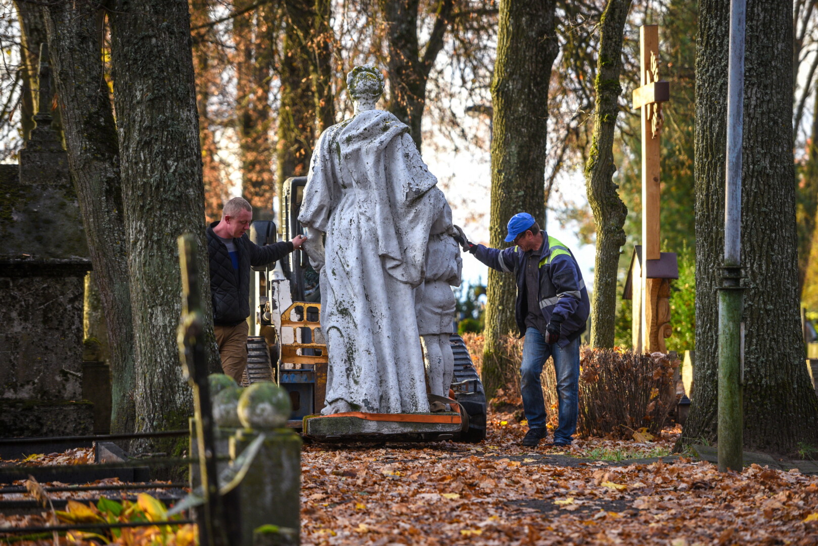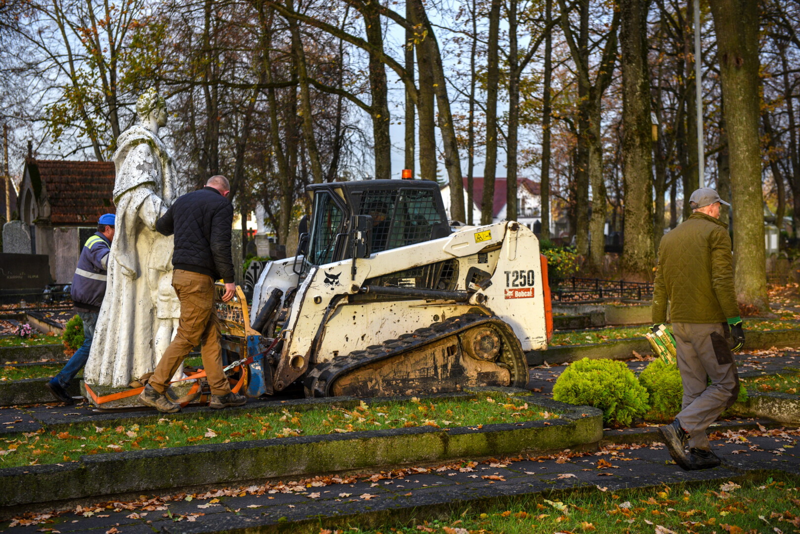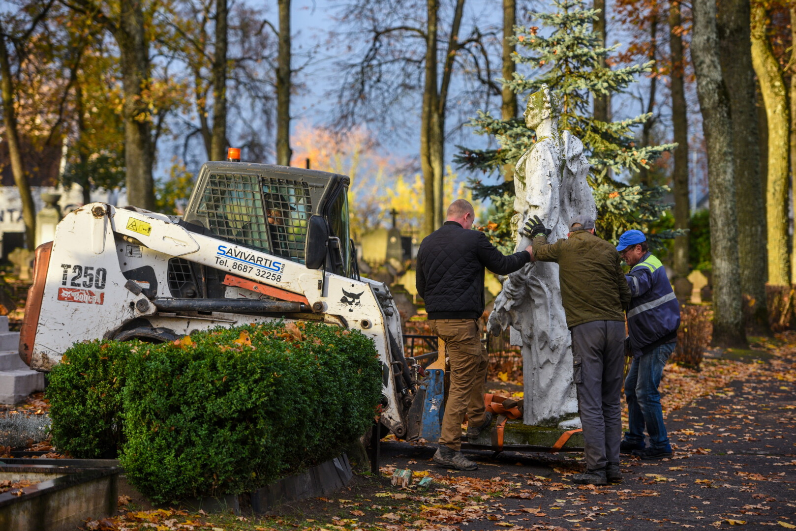 Savivaldybės konkursą laimėjusi bendrovė „Gerbūvio technika“ pradėjo demontuoti miesto kapinėse esančius sovietinius paminklus.