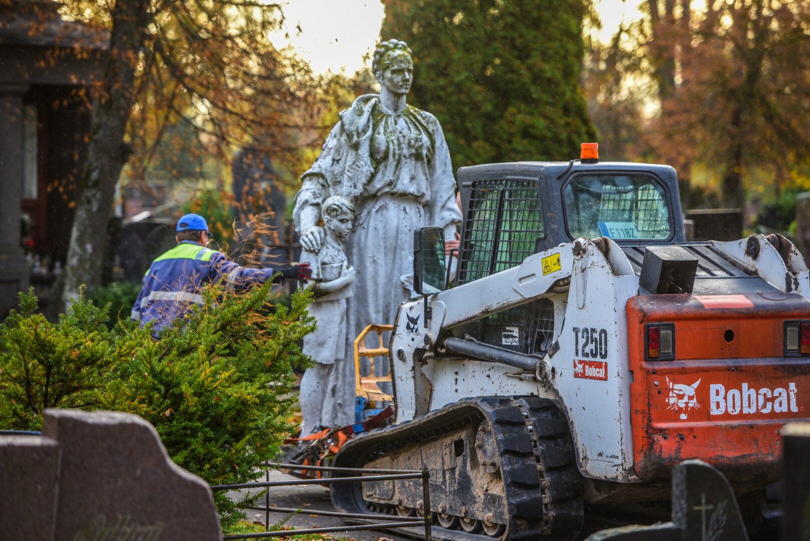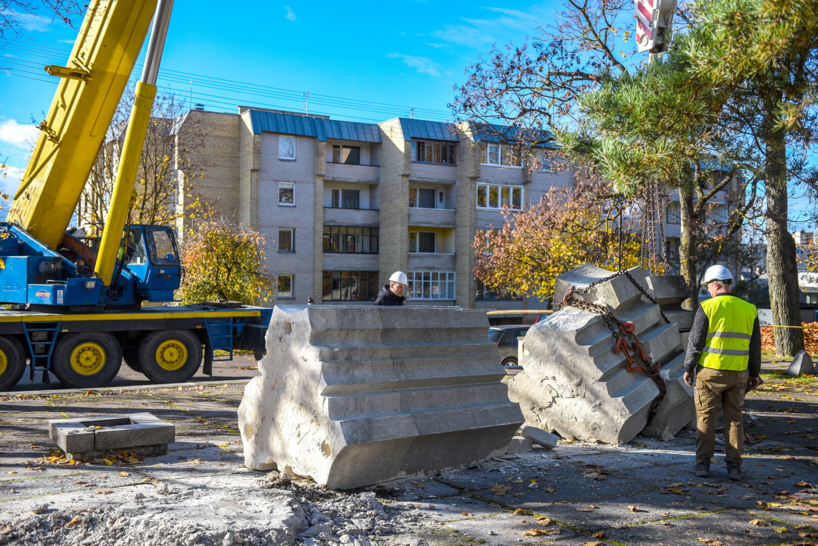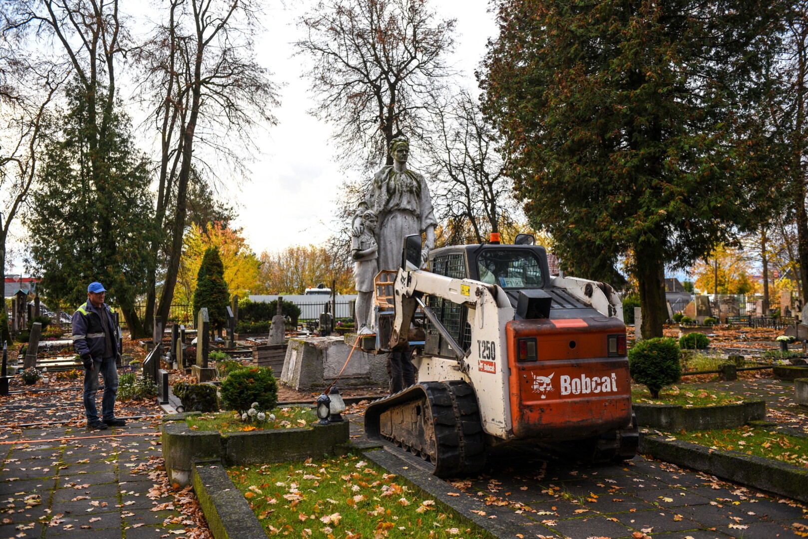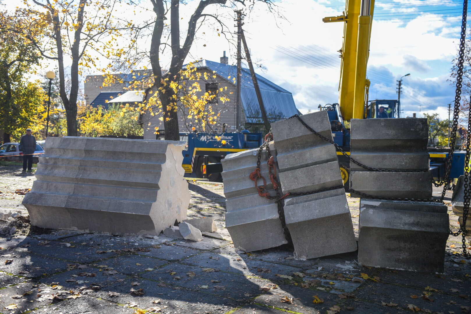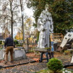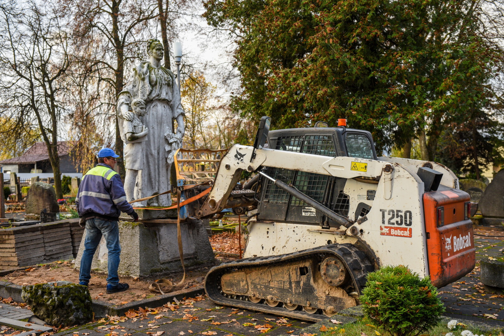 Savivaldybės konkursą laimėjusi bendrovė „Gerbūvio technika“ pradėjo demontuoti miesto kapinėse esančius sovietinius paminklus.