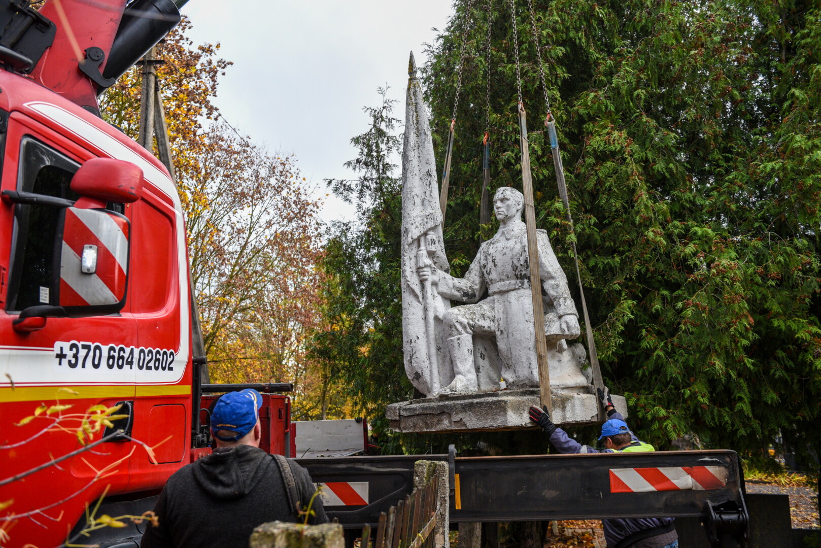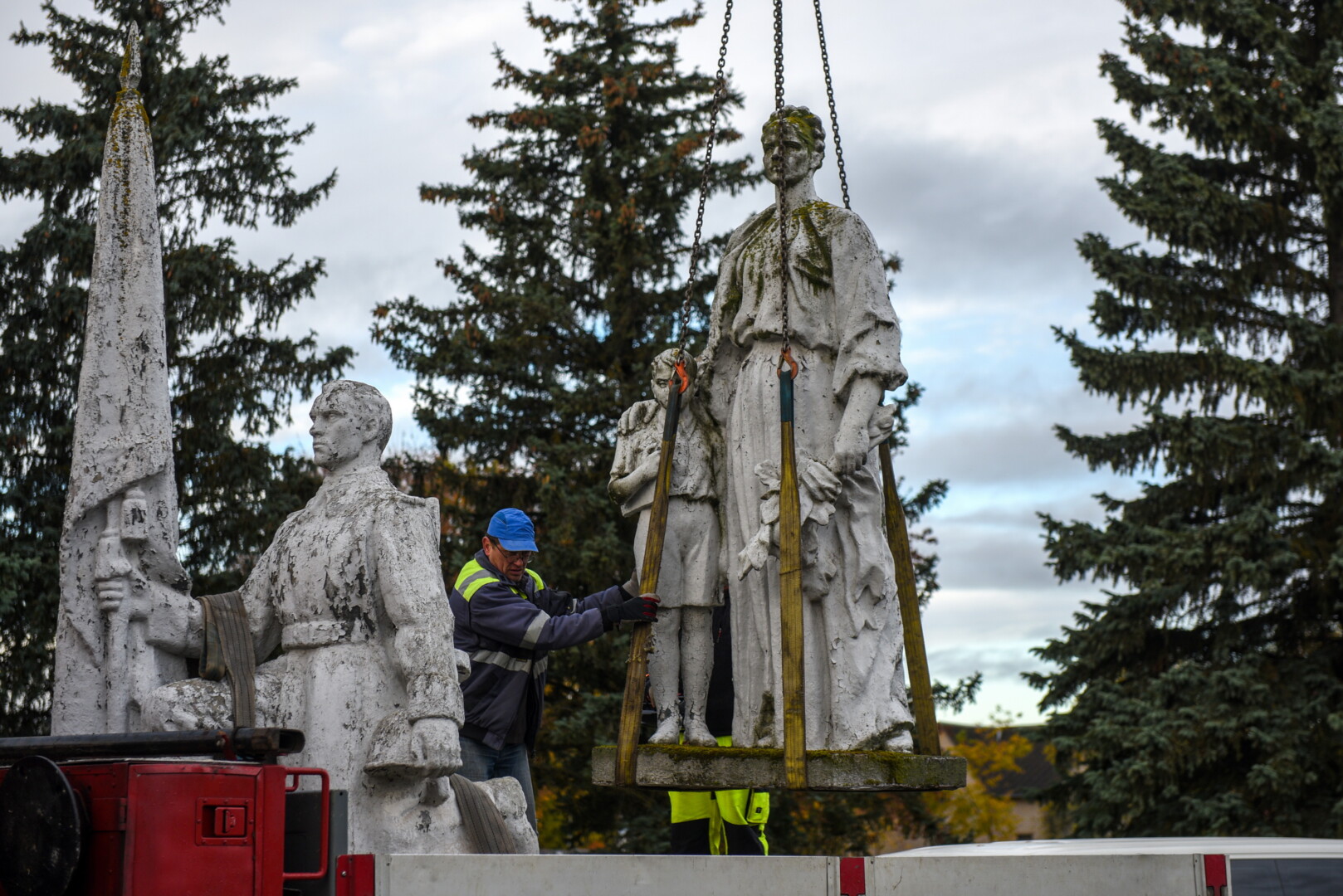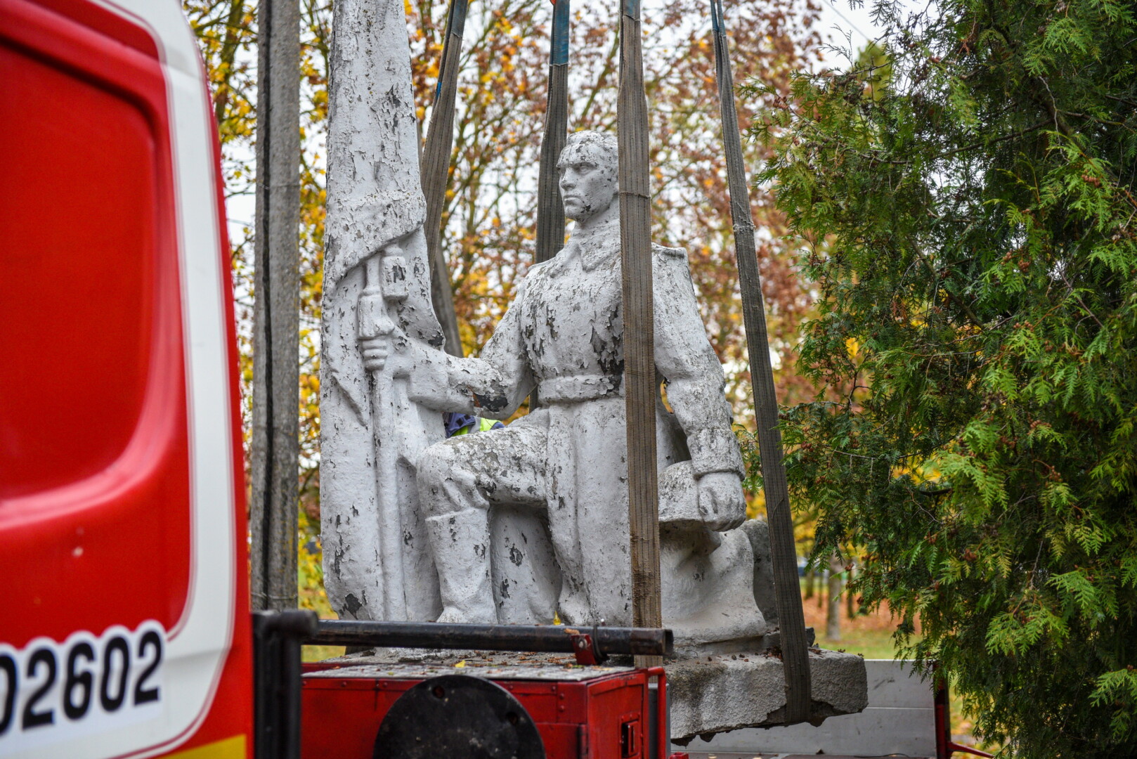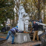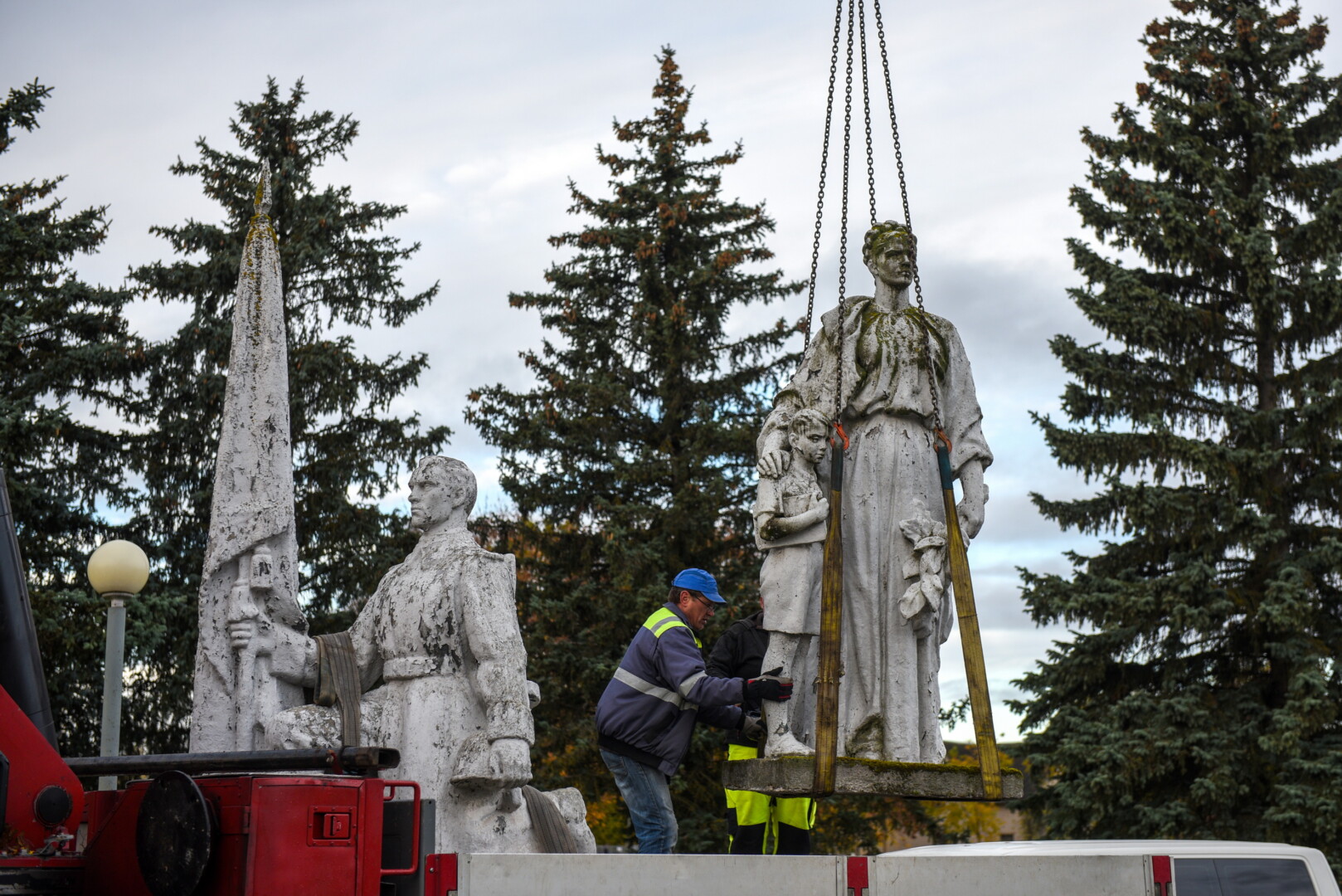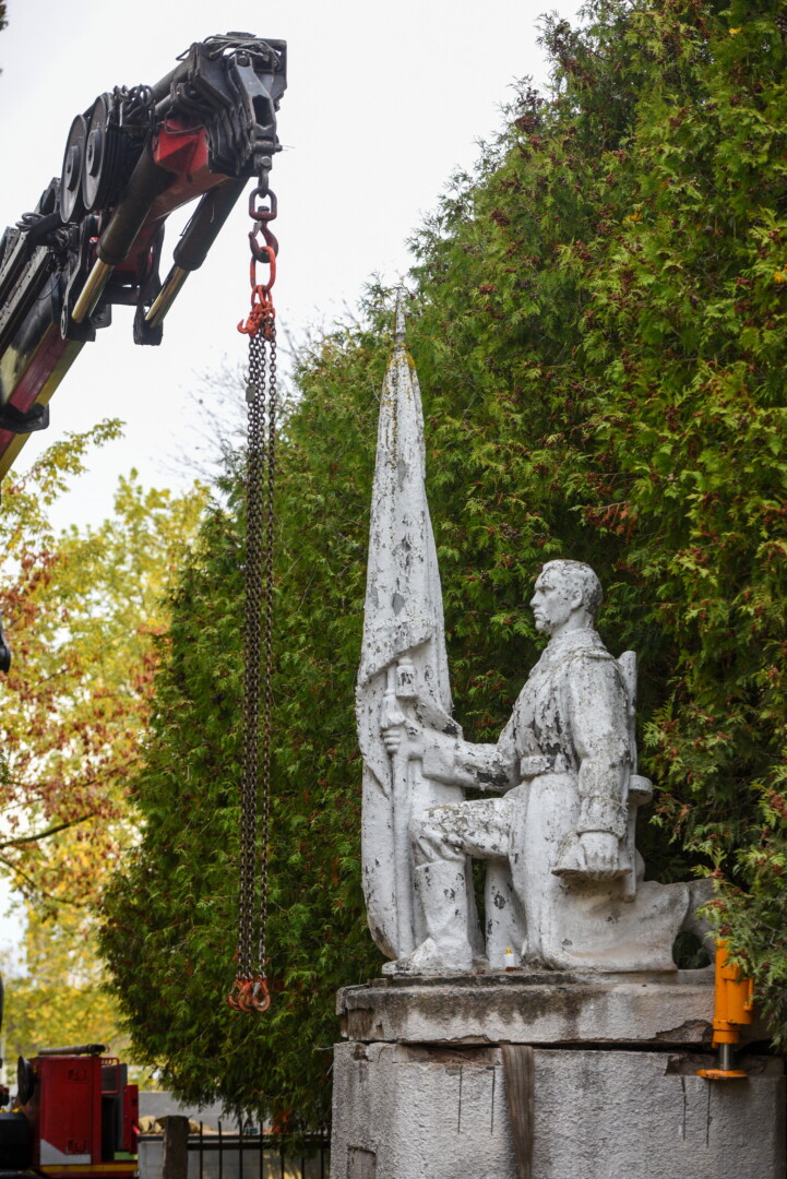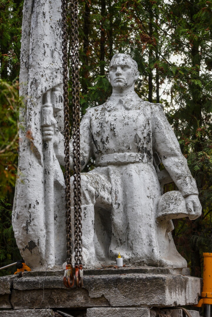 Trečiadienio ryte pirmieji demontuoti paminklai Kristaus Karaliaus katedros kapinėse – betoninė skulptūra, vaizduojanti moterį su berniuku, ryšinčiu pionieriaus kaklaraištį, bei Sovietų Sąjungos karių palaidojimo vietoje stūksanti betoninė tipinė antkapinė skulptūra. Šioji vaizduoja priklaupusį sovietų karį, vienoje rankoje laikantį vėliavą, kitoje – šalmą.