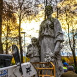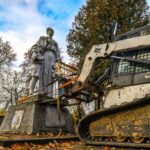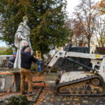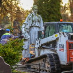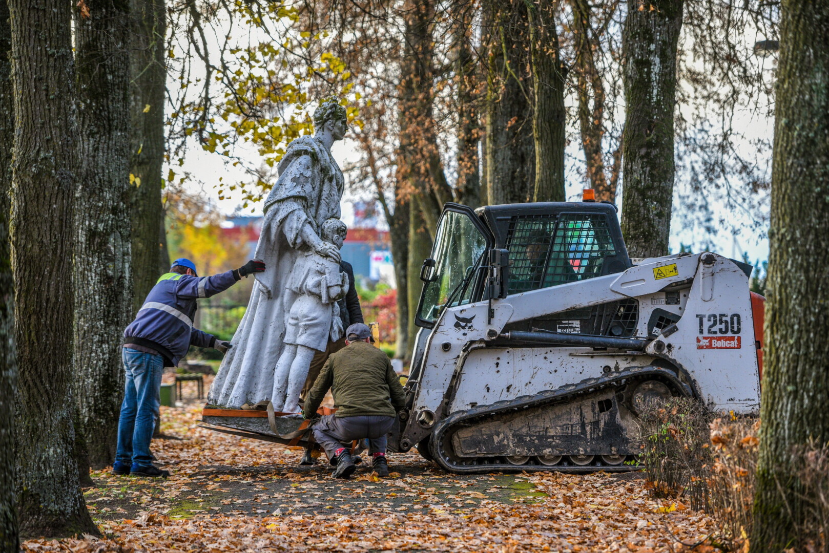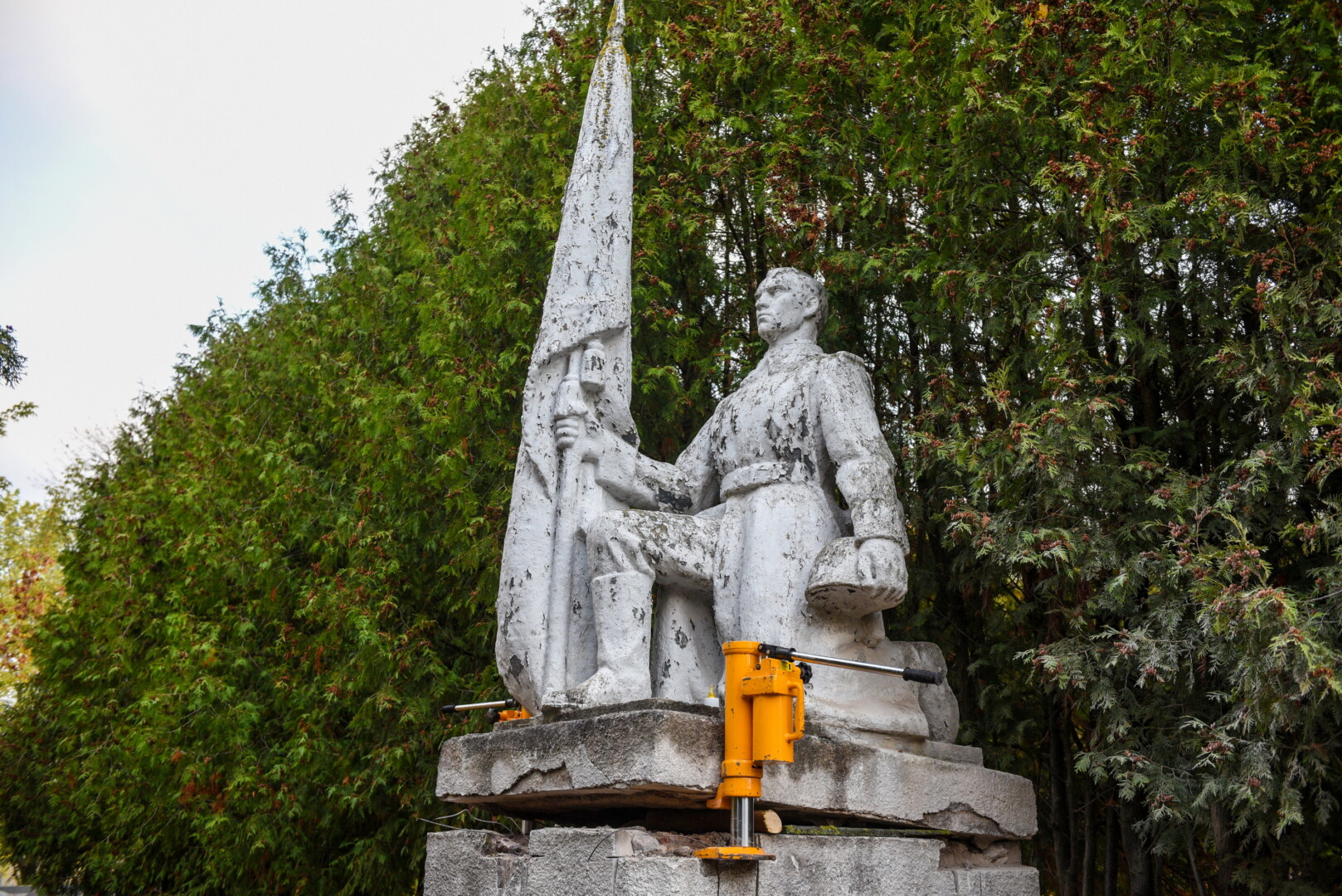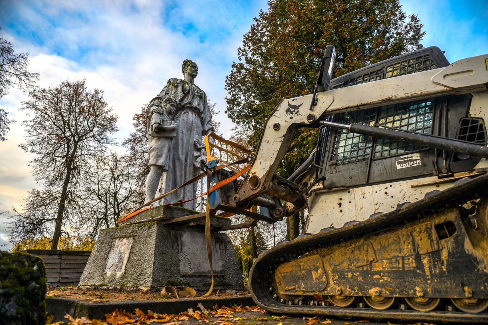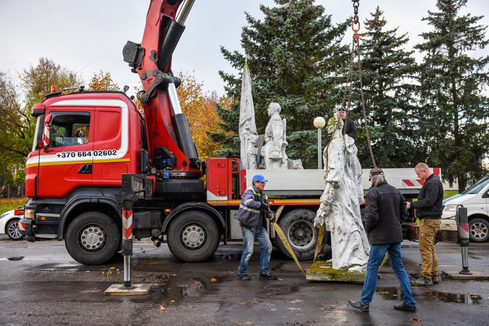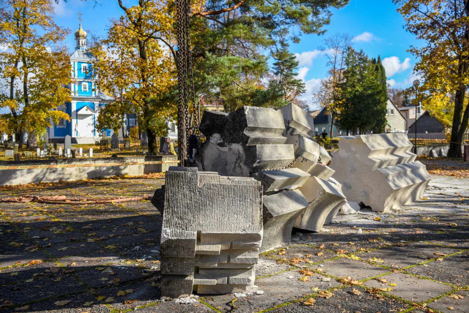 Trečiadienio ryte pirmieji demontuoti paminklai Kristaus Karaliaus katedros kapinėse – betoninė skulptūra, vaizduojanti moterį su berniuku, ryšinčiu pionieriaus kaklaraištį, bei Sovietų Sąjungos karių palaidojimo vietoje stūksanti betoninė tipinė antkapinė skulptūra. Šioji vaizduoja priklaupusį sovietų karį, vienoje rankoje laikantį vėliavą, kitoje – šalmą.