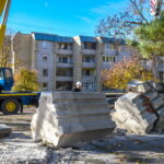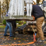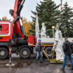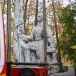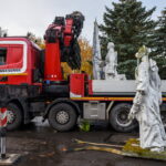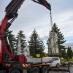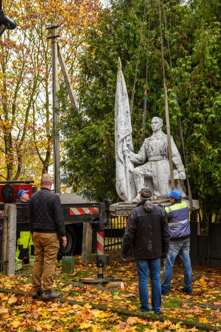 Trečiadienį bus nukeliama ir 10 tonų sveriantis skulptorės Veronikos Vildžiūnaitės sukurtas memorialas, stovintis Krekenavos gatvėje Antrojo pasaulinio karo Sovietų Sąjungos karių palaidojimo vietoje.