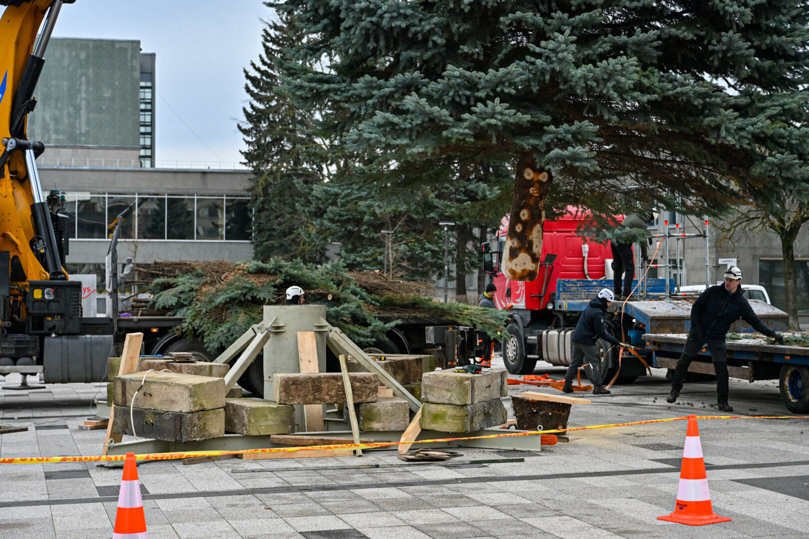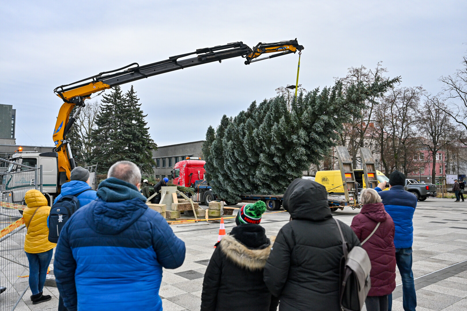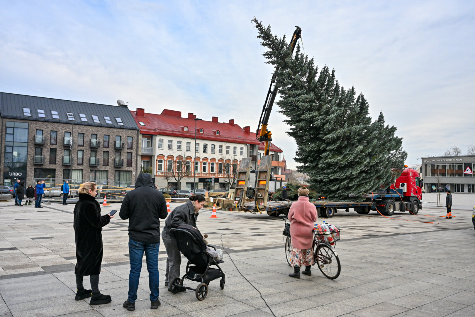 Panevėžyje jau kvepia Kalėdomis. Į Laisvės aikštę sekmadienį atgabenta panevėžiečių šeimos dovanota eglė.