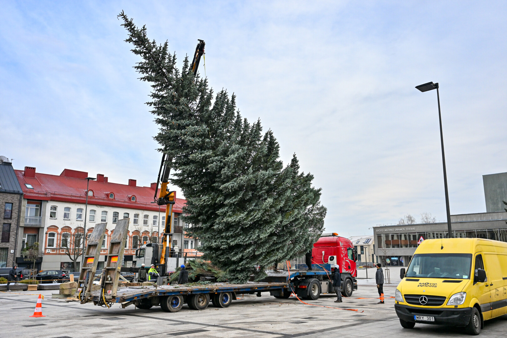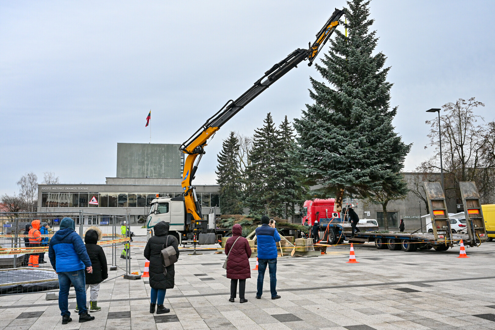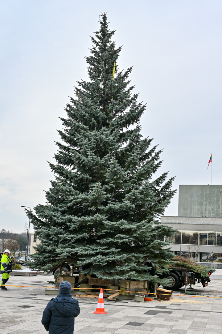Prie sidabrinės gražuolės dabar plušės dekoratoriai. O penktadienio vakarą jos įžiebimas paskelbs šventinio laikotarpio pradžią.