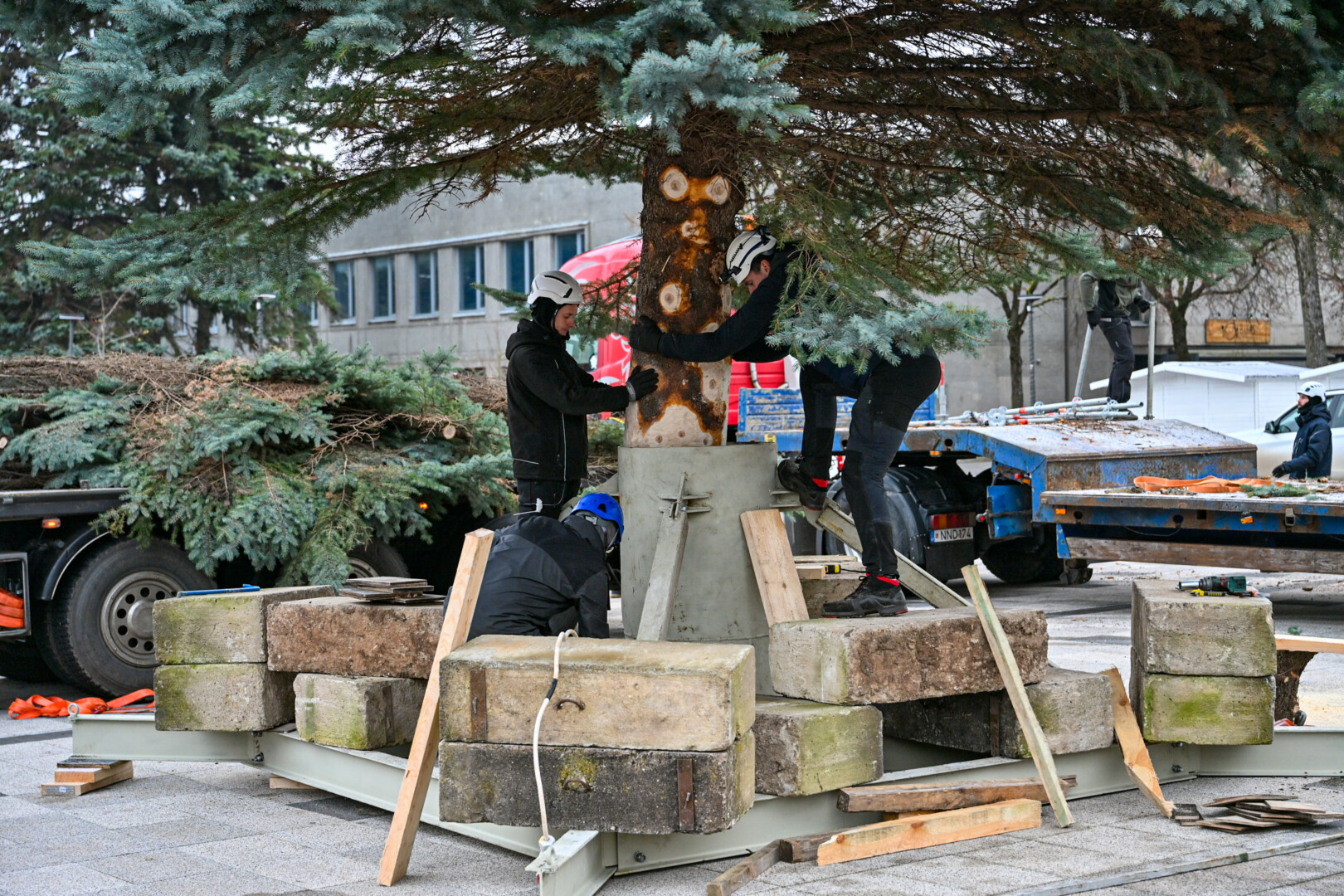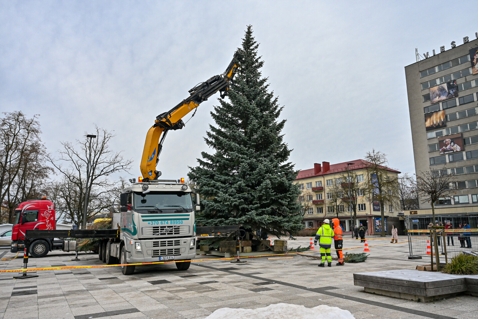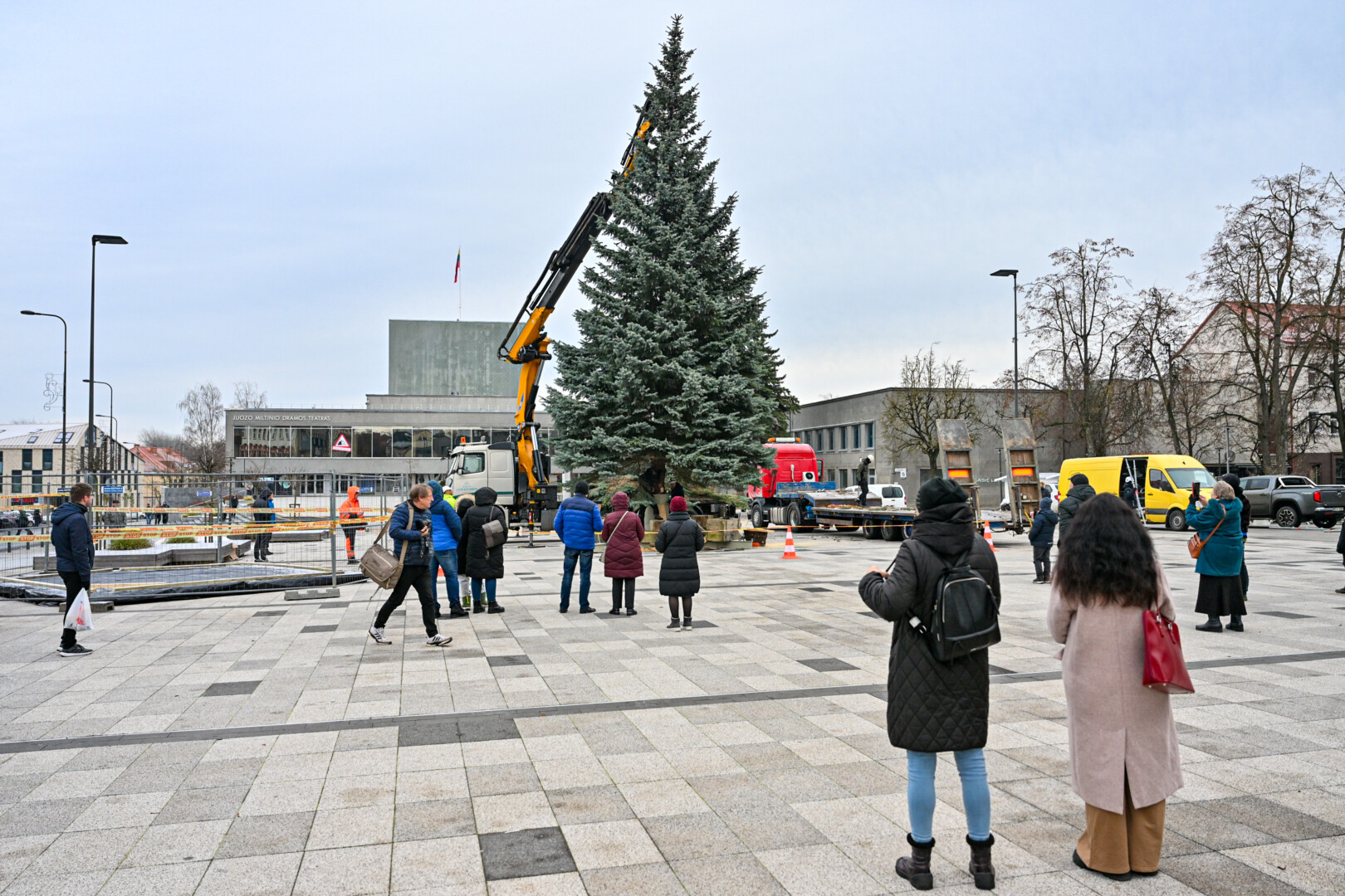 Prie sidabrinės gražuolės dabar plušės dekoratoriai. O penktadienio vakarą jos įžiebimas paskelbs šventinio laikotarpio pradžią.