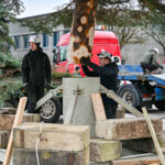 Sekmadienį nuo ankstyvo ryto prie jos namų plušėjo už eglės papuošimą atsakingos įmonės „GES projektai“ darbuotojai.