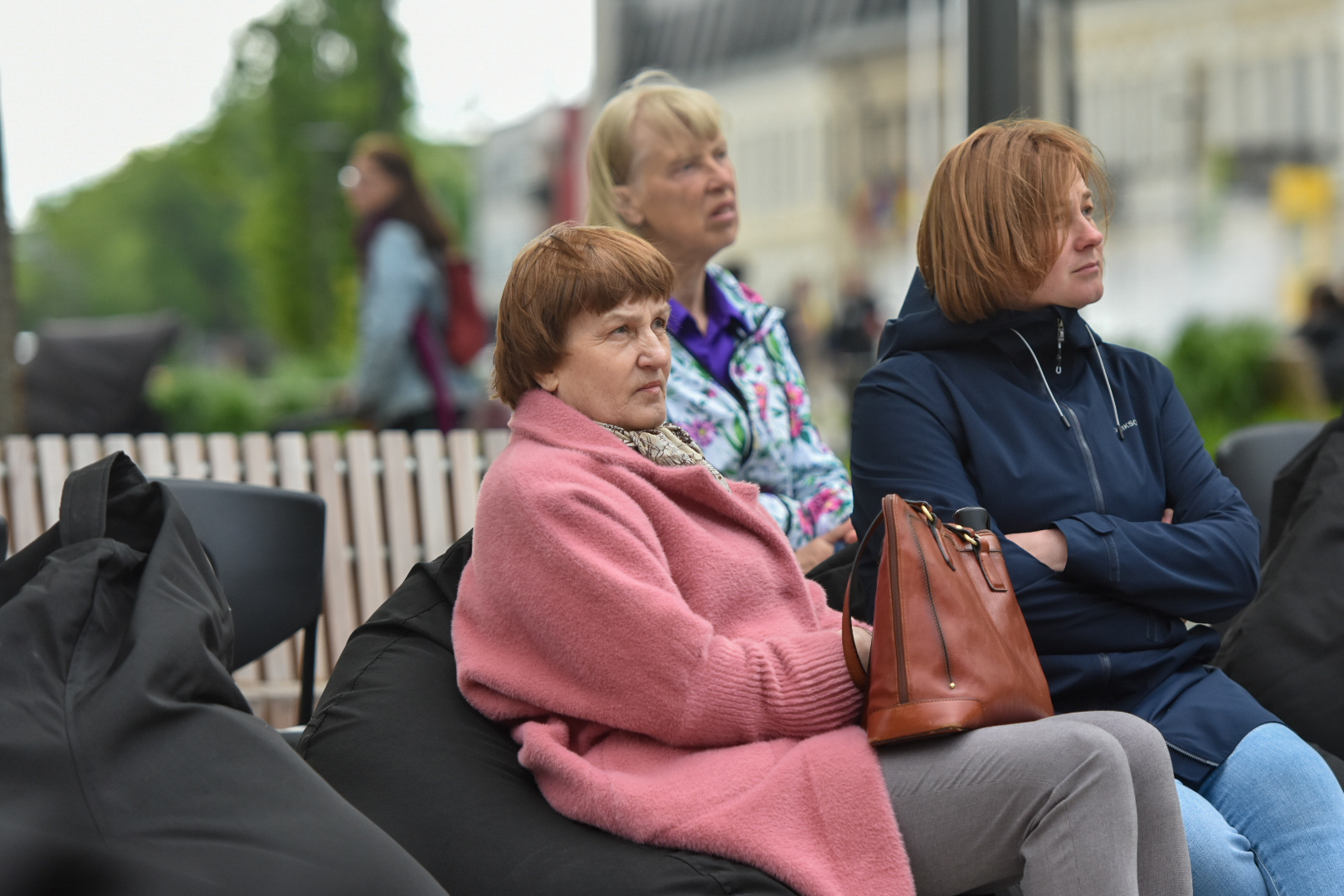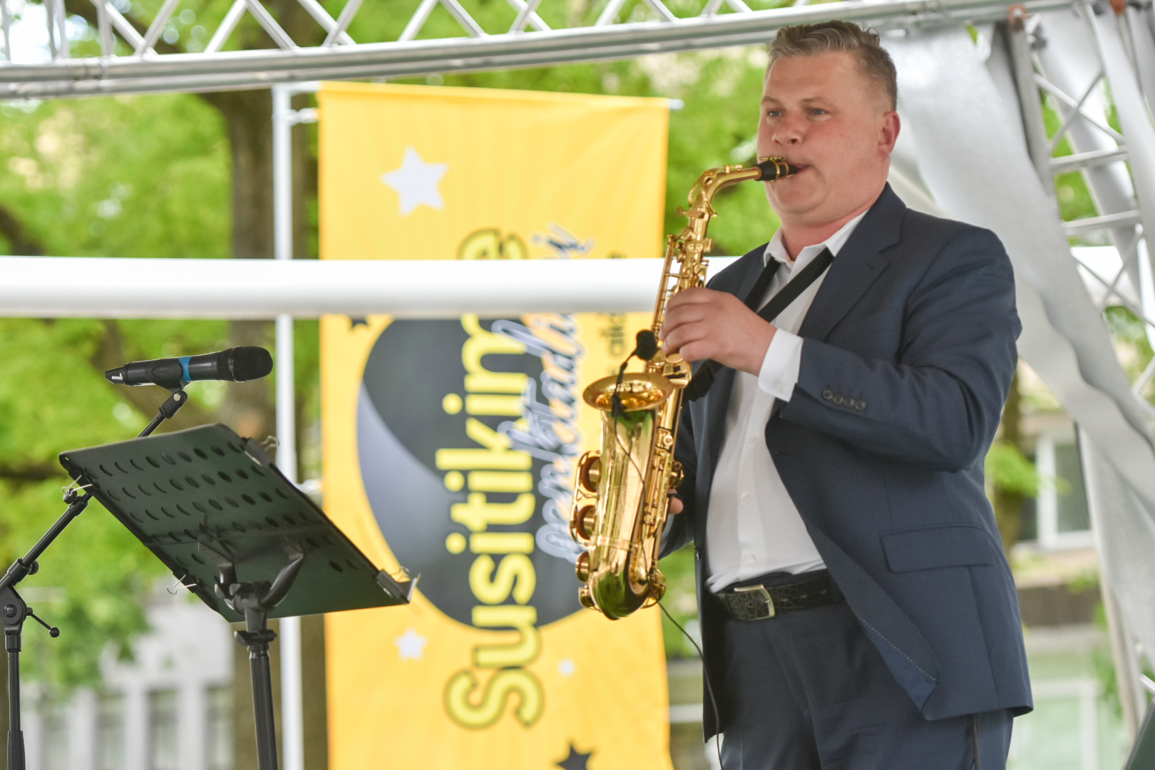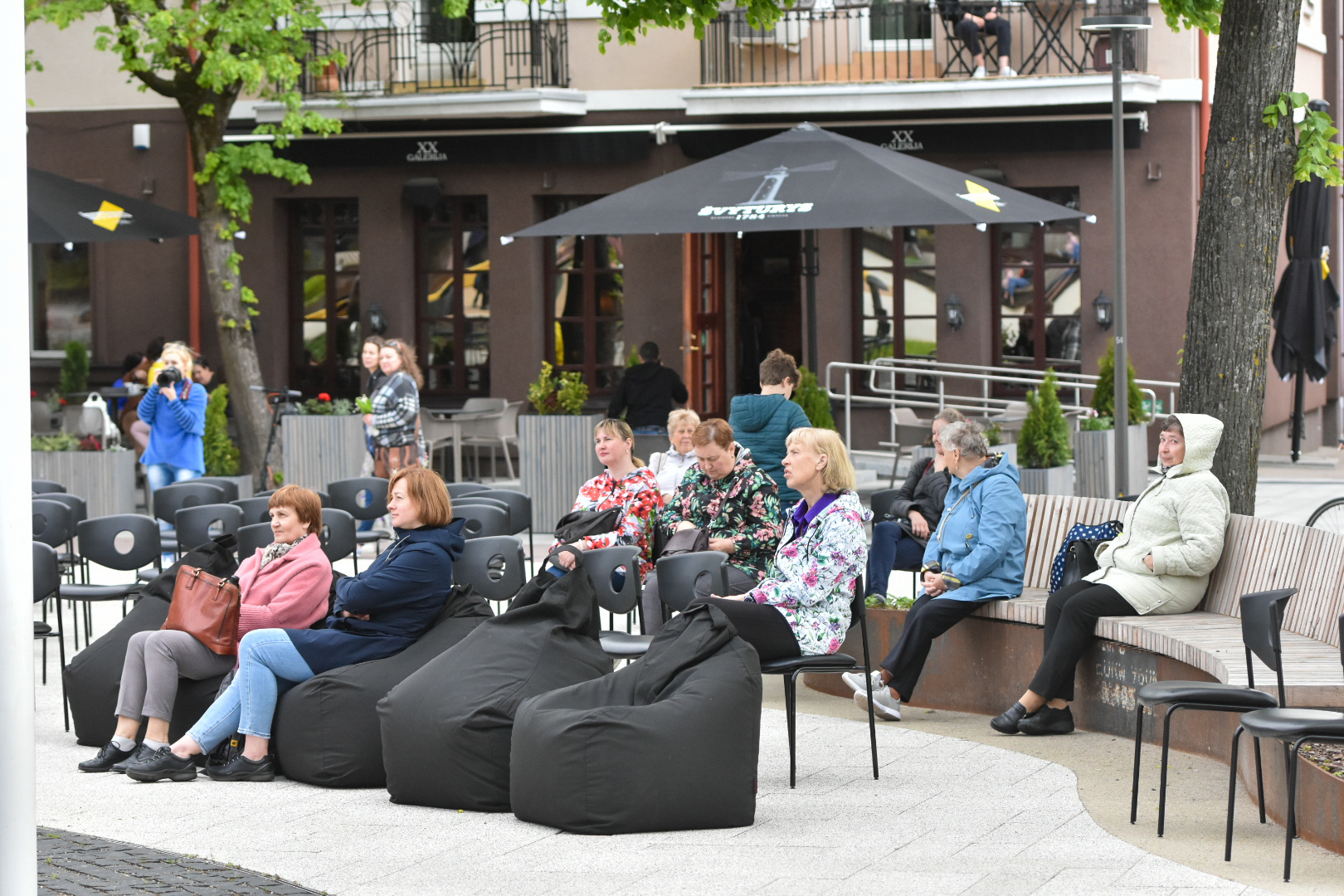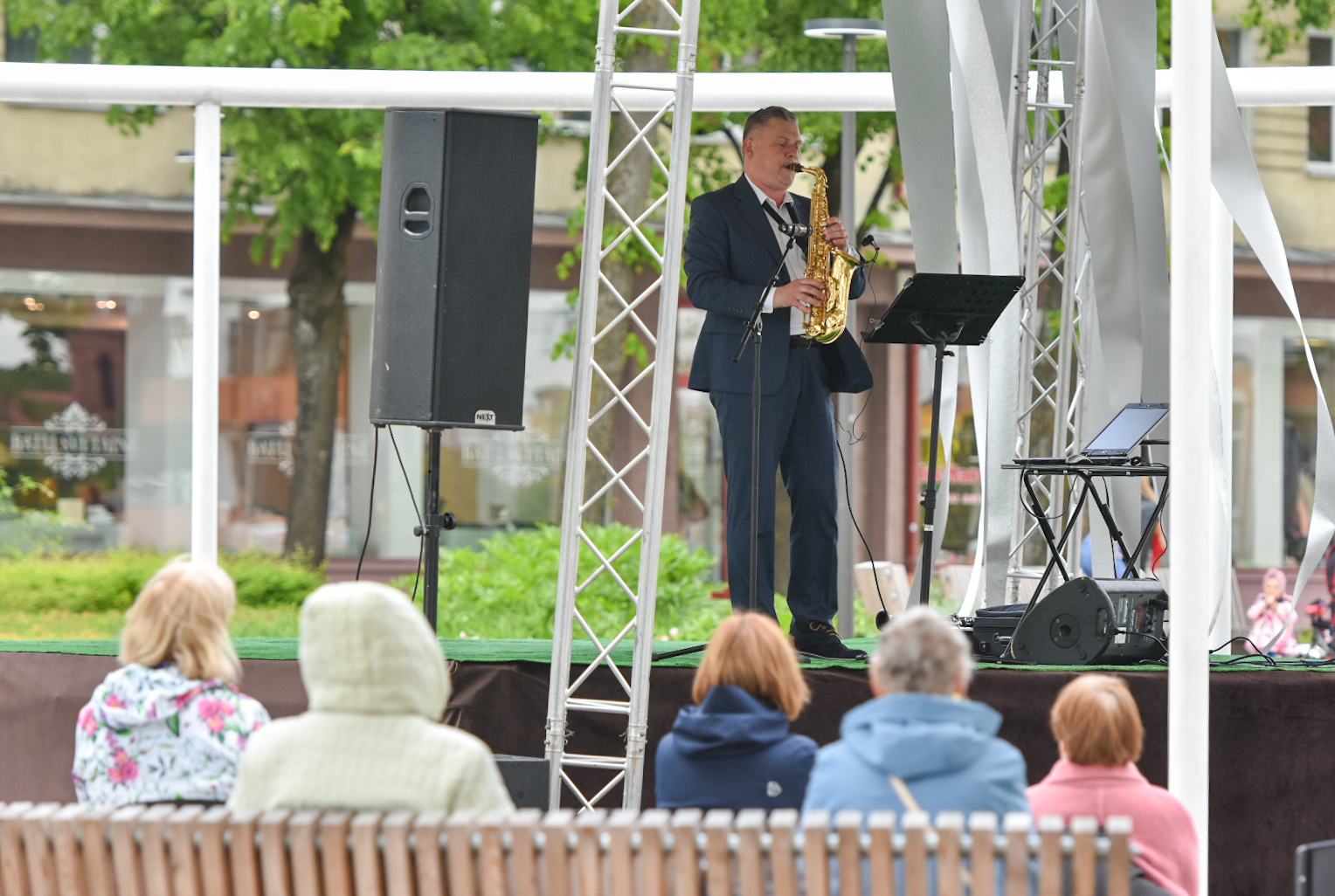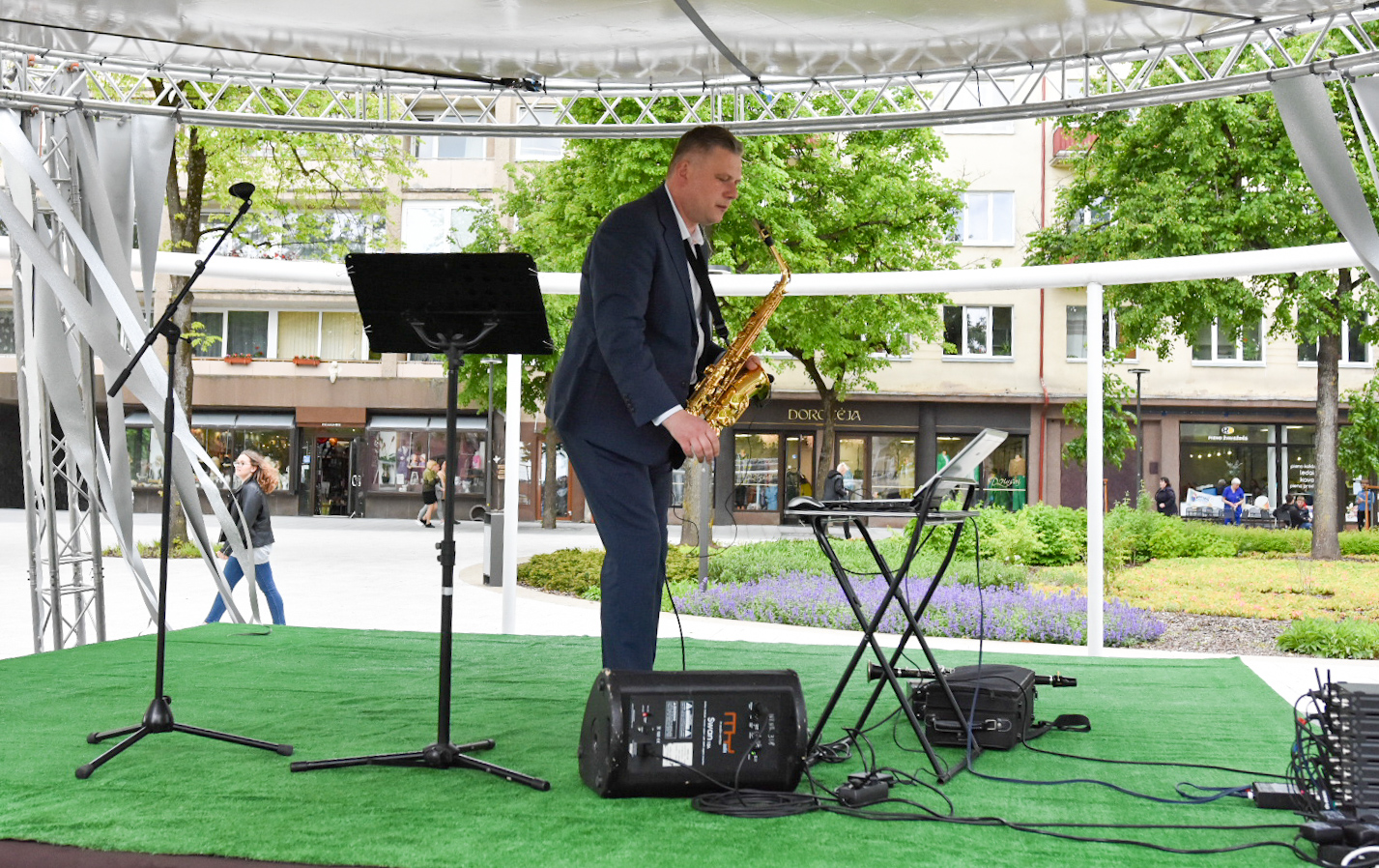Birželio 3-iąją „Susitikime penktadienį“ pradėjo prie „Galerijos XX“ 12–13 val. pietūs su muzika – panevėžiečiams muzikavo saksofonininkas Renatas Bedalis.