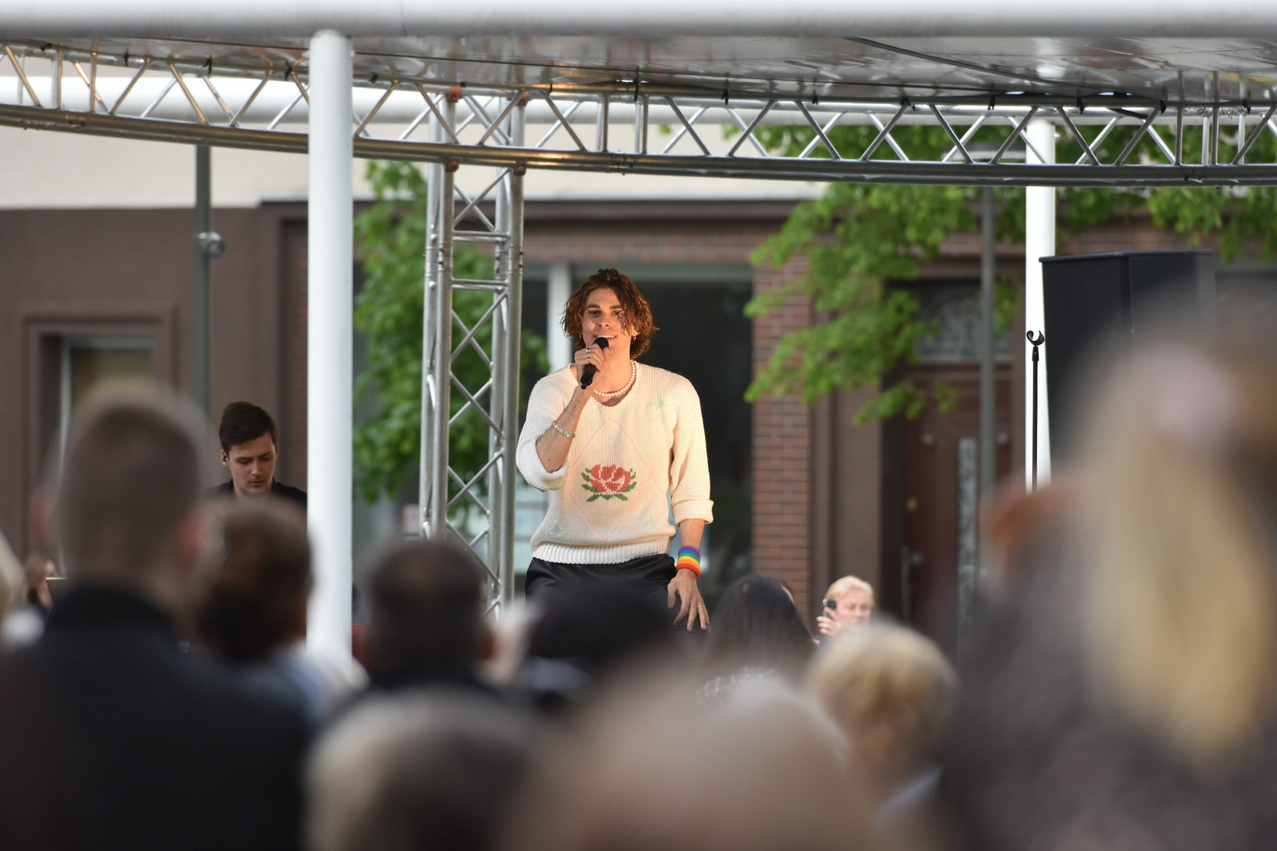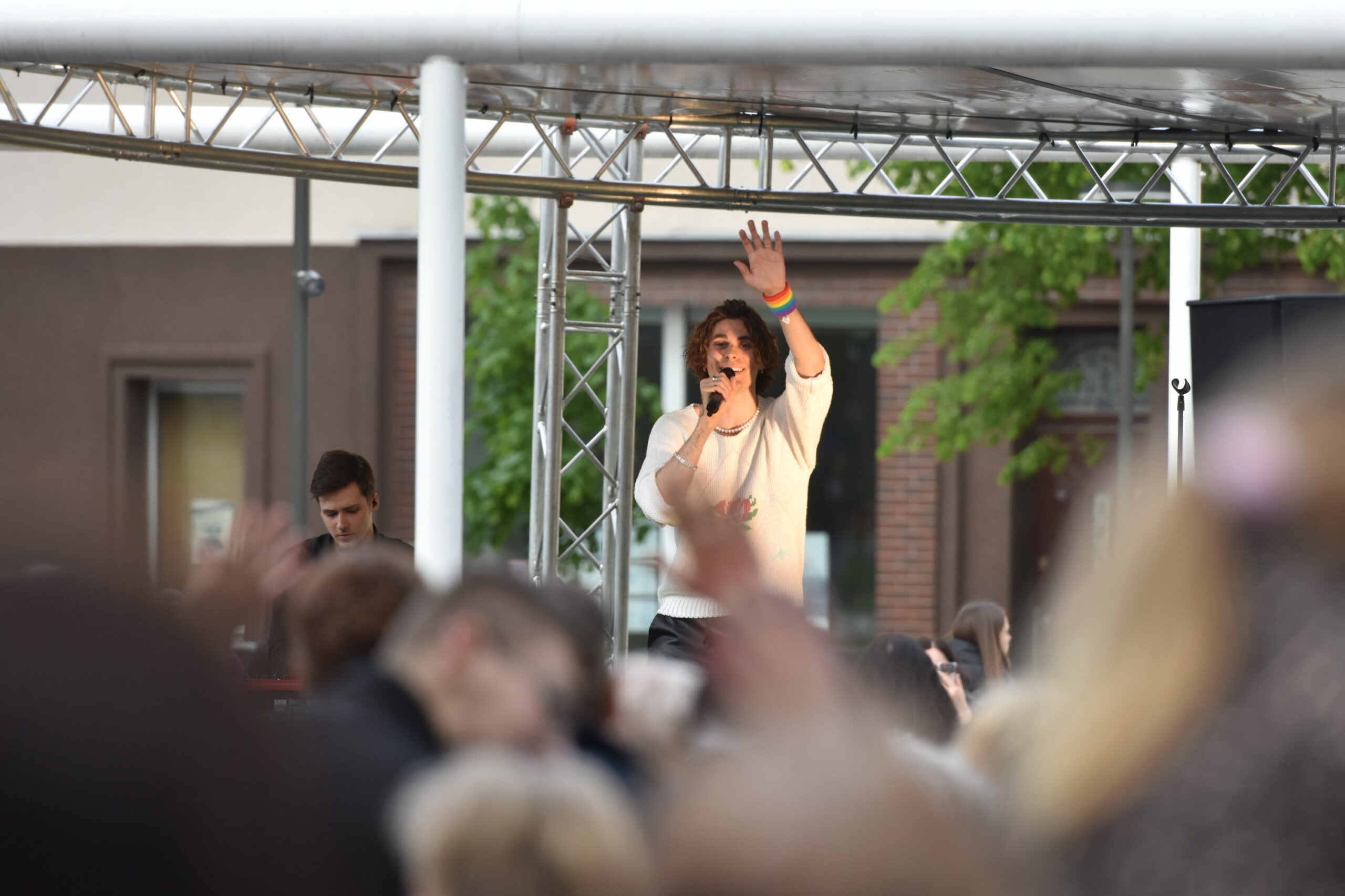 Vakare aikštėje koncertavo Vaikų ir jaunimo pučiamųjų orkestras, K. Paltaroko gimnazijos teatro studijos aktoriai pakvietė į spektaklį „Skruzdėlė atsiskyrėlė“.