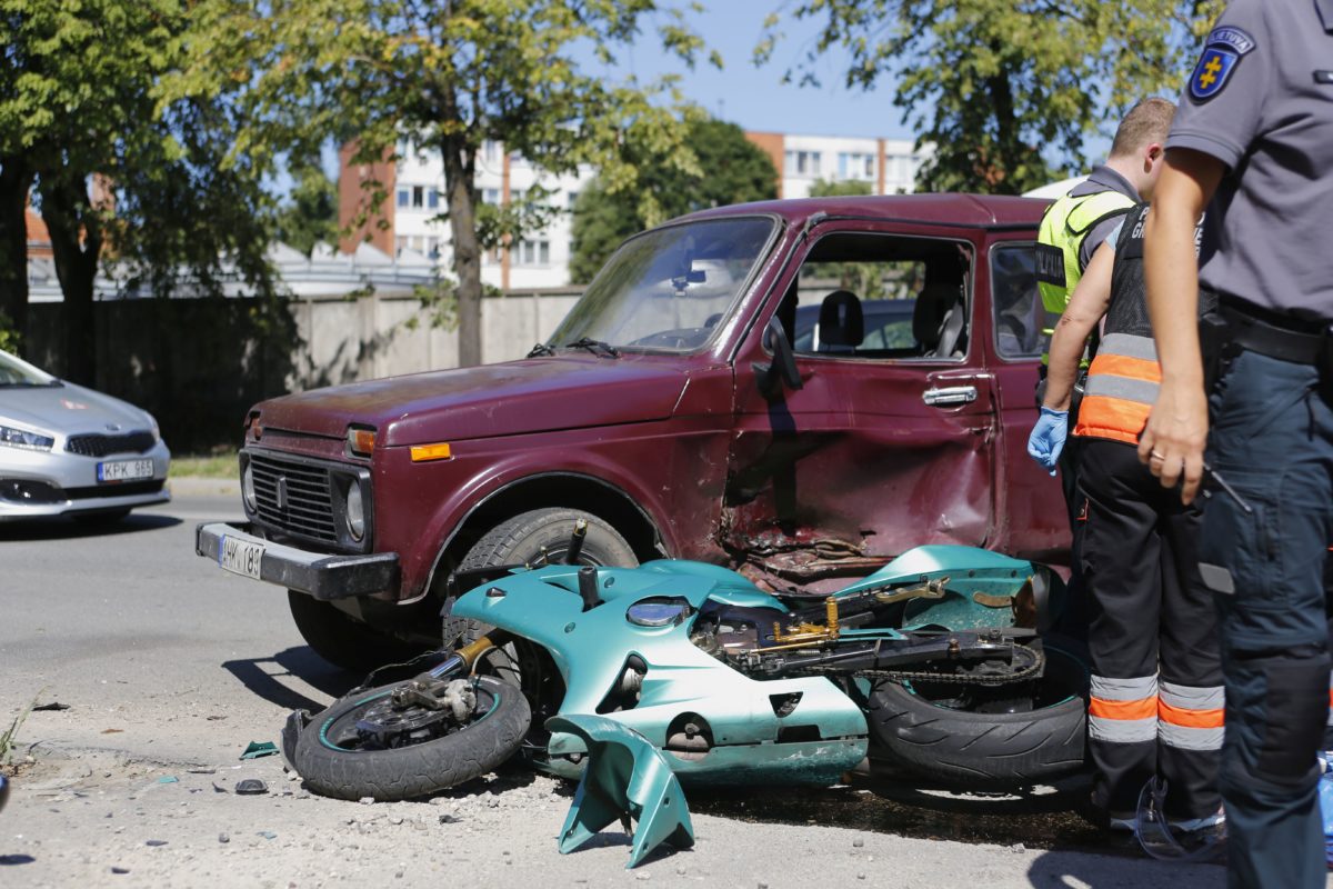 Pranešimo apie J. Janonio gatvėje susidūrusius automobilį „VIS“ ir motociklą „Kawasaki“ specialiosios tarnybos sulaukė ketvirtadienį apie 11.30 val. Į nelaimės vietą išskubėjo policija, net trys greitosios medicinos pagalbos ekipažai.