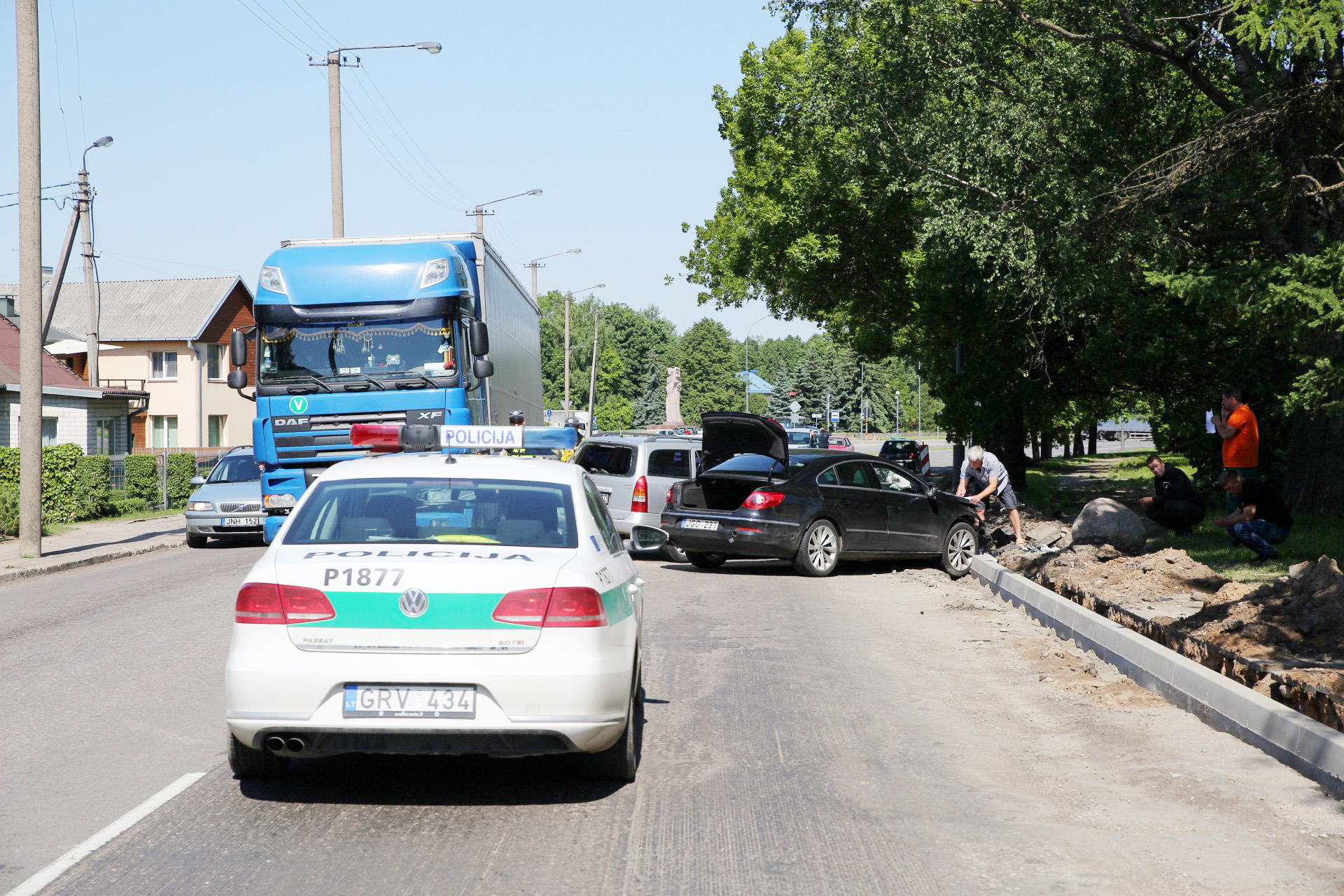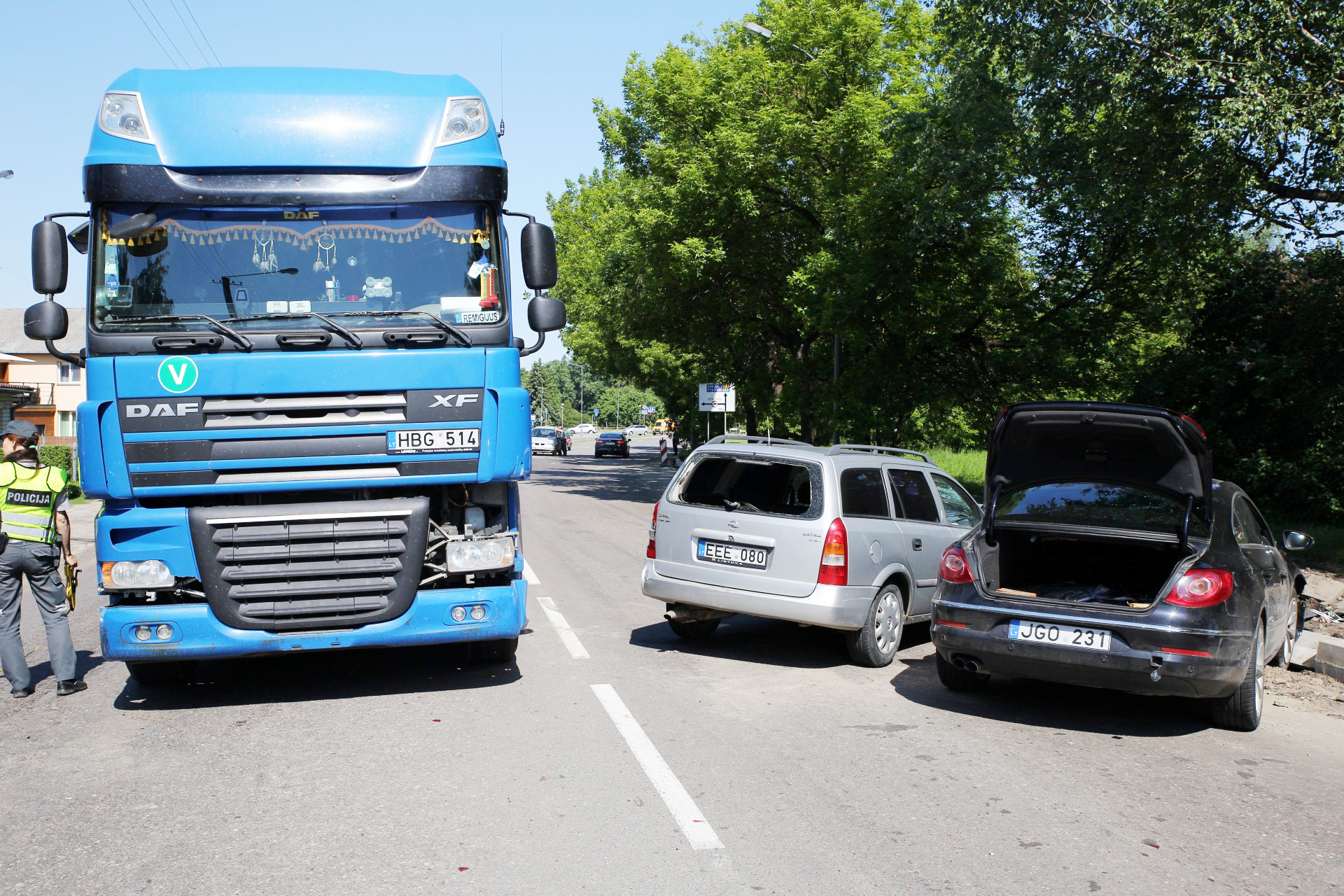 Bendrasis pagalbos centras apie 10.44 val sulaukė pranešimo apie susidūrusius du lengvuosius automobilius „Opel“ ir „Volkswagen Passat“ bei sunkiasvorį vilkiką „DAF“.