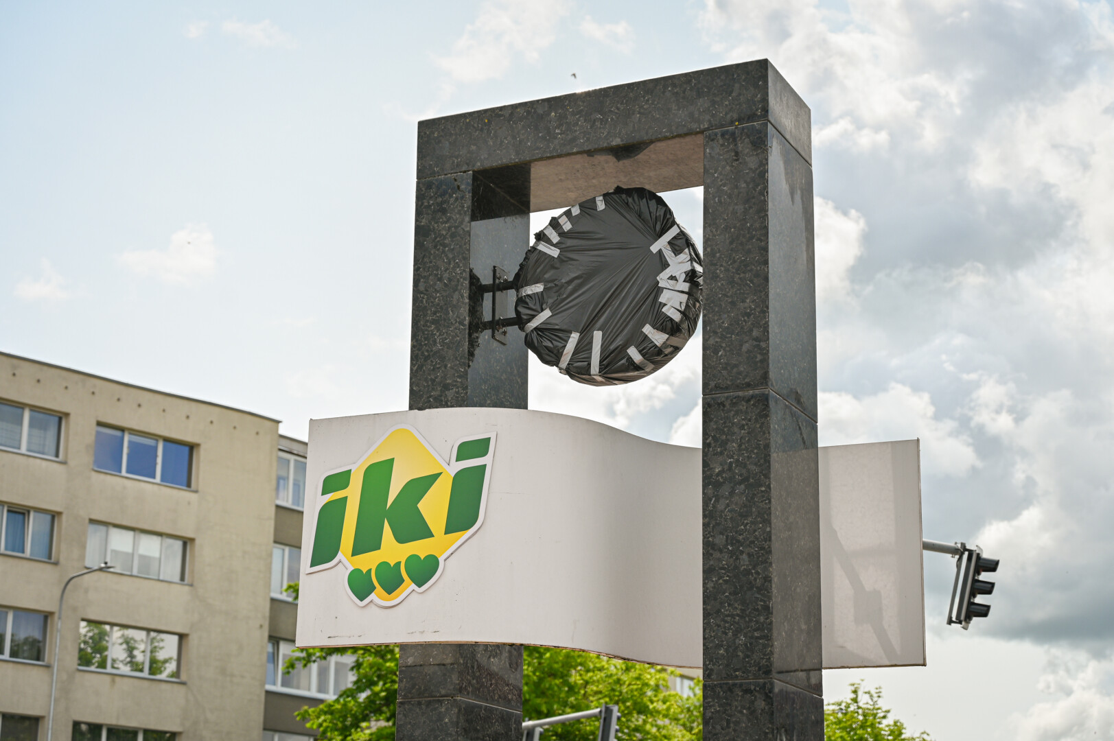 Ilgai gluminęs praeivius, šiomis dienomis laikrodis virto juoda dėme – iš abiejų pusių uždengtas plėvele.