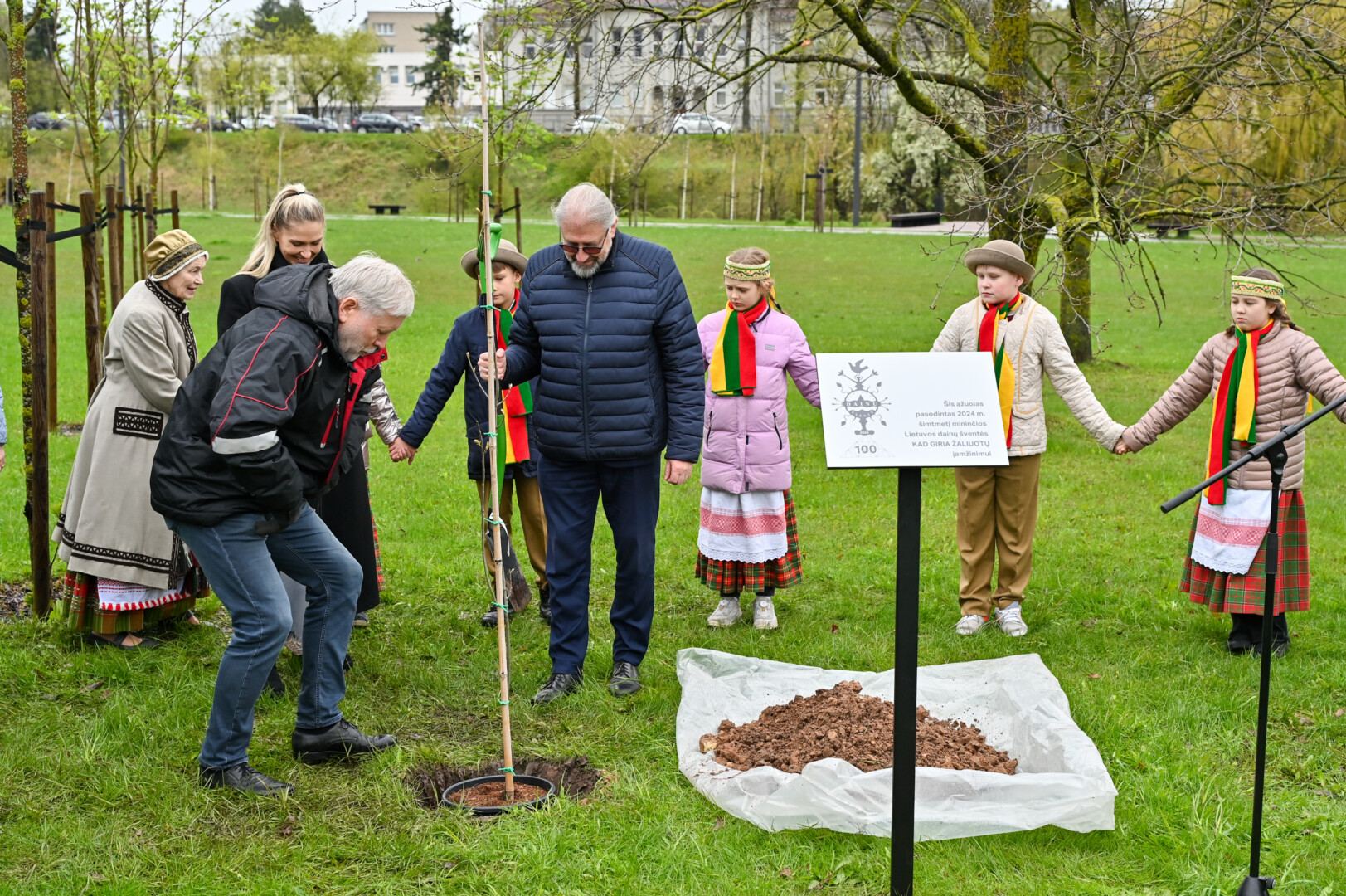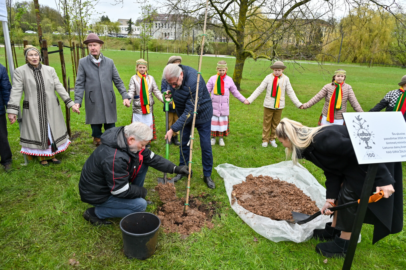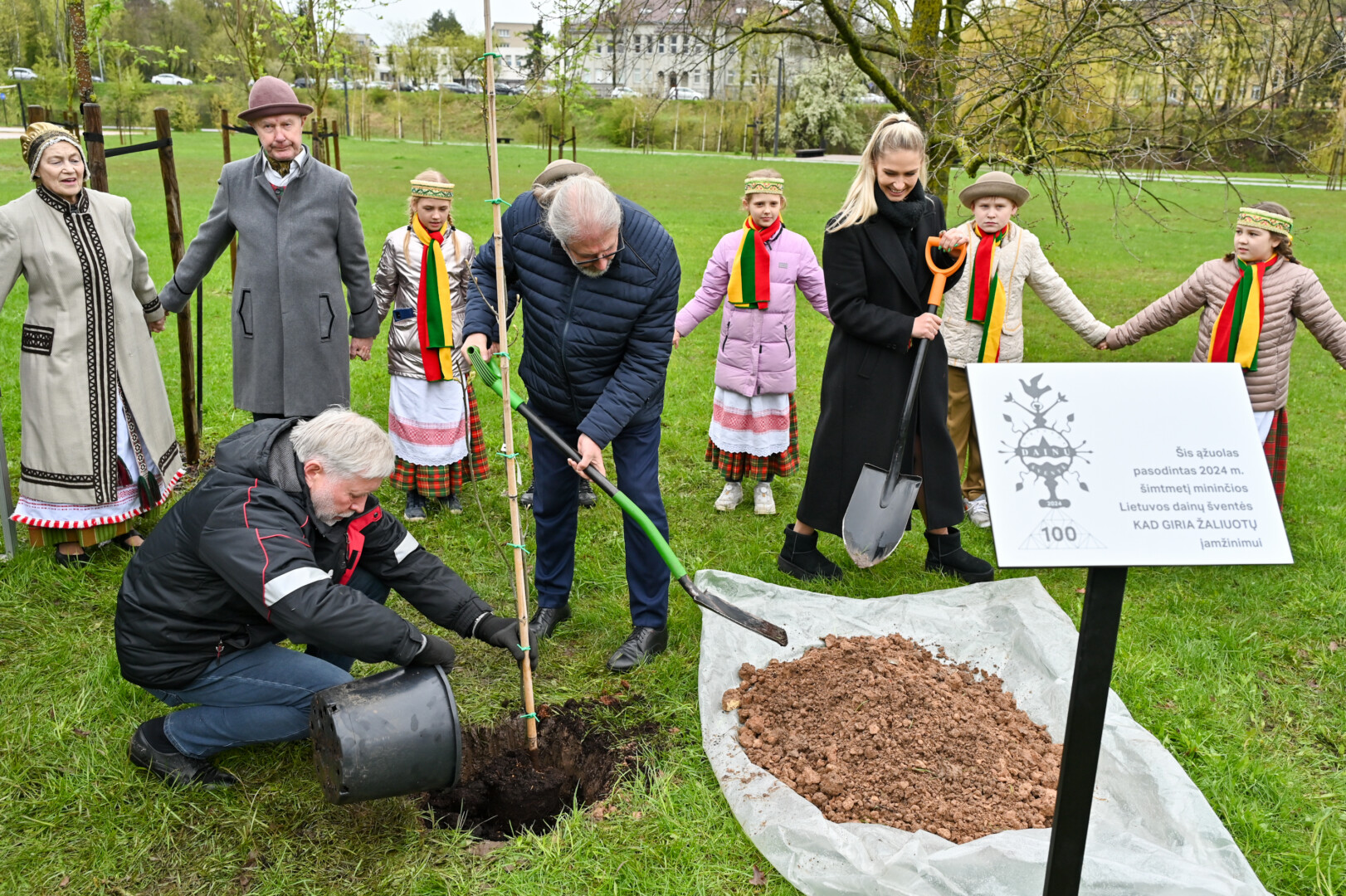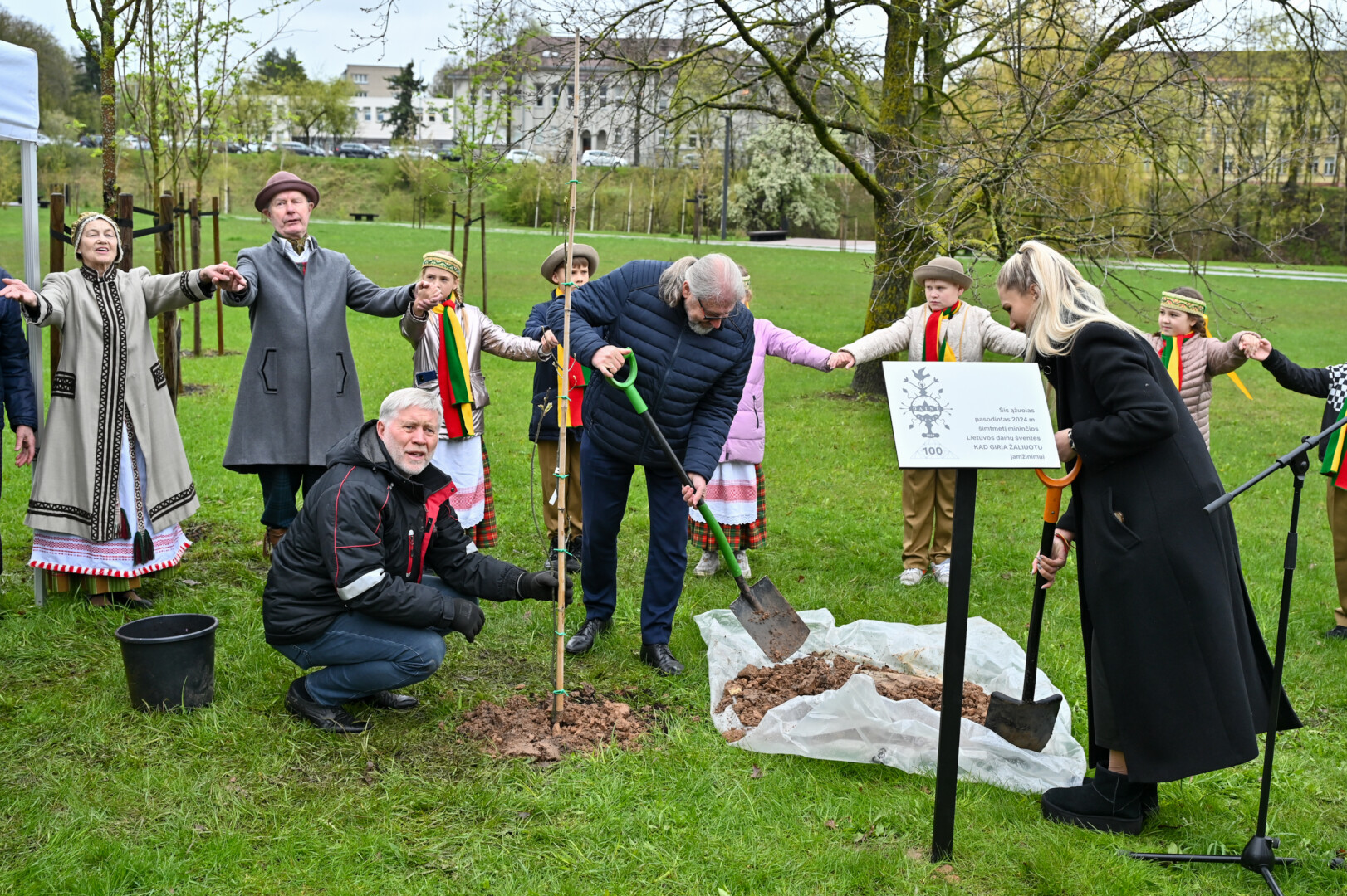 Panevėžiečiai prisijungė prie iniciatyvos įamžinti Lietuvos dainų šventės šimtmetį ir prie šventės dalyvių kalvės – Panevėžio kultūros centro – pasodino šimtmečio ąžuoliuką.