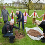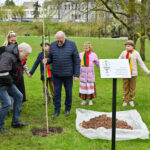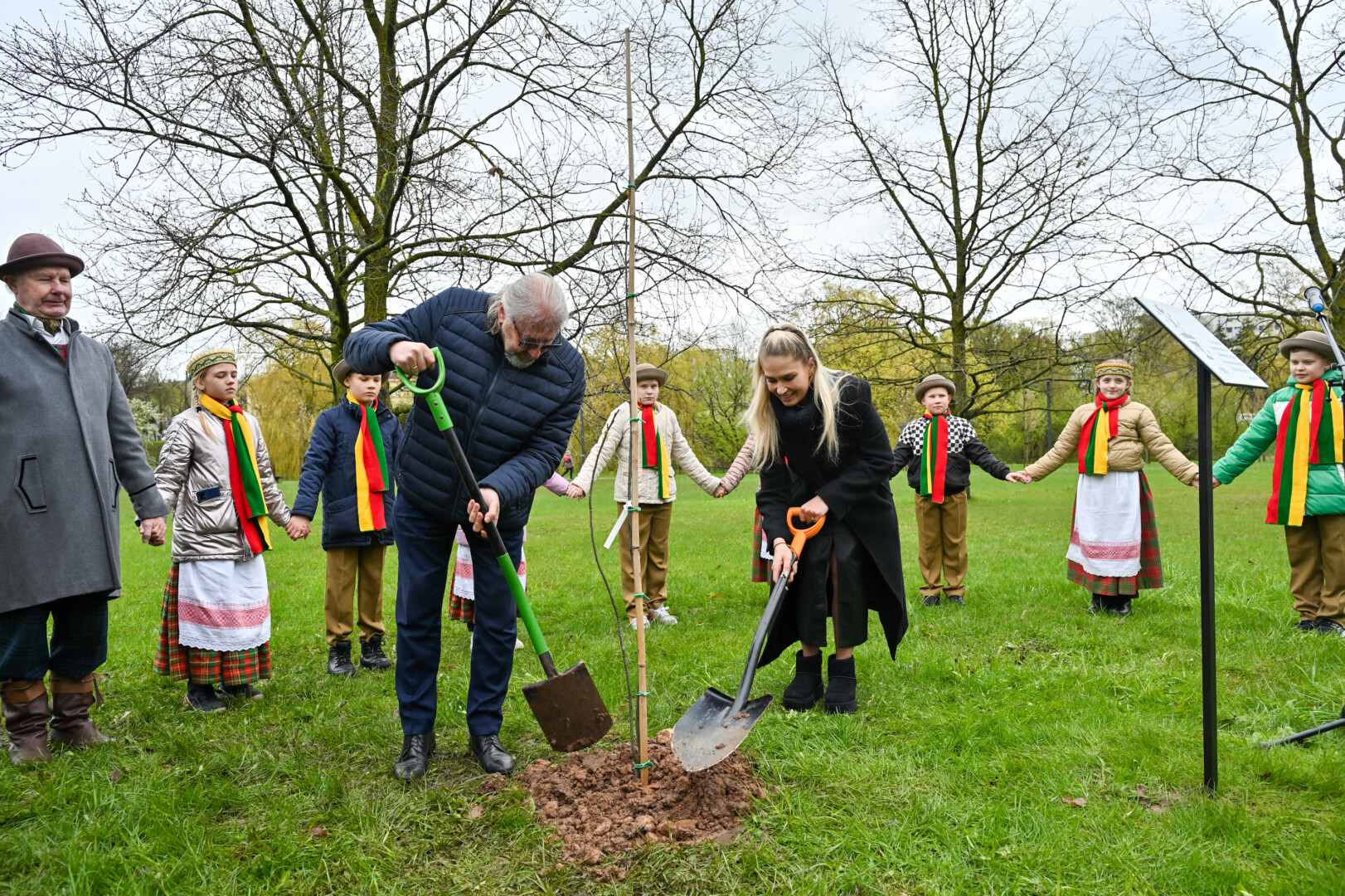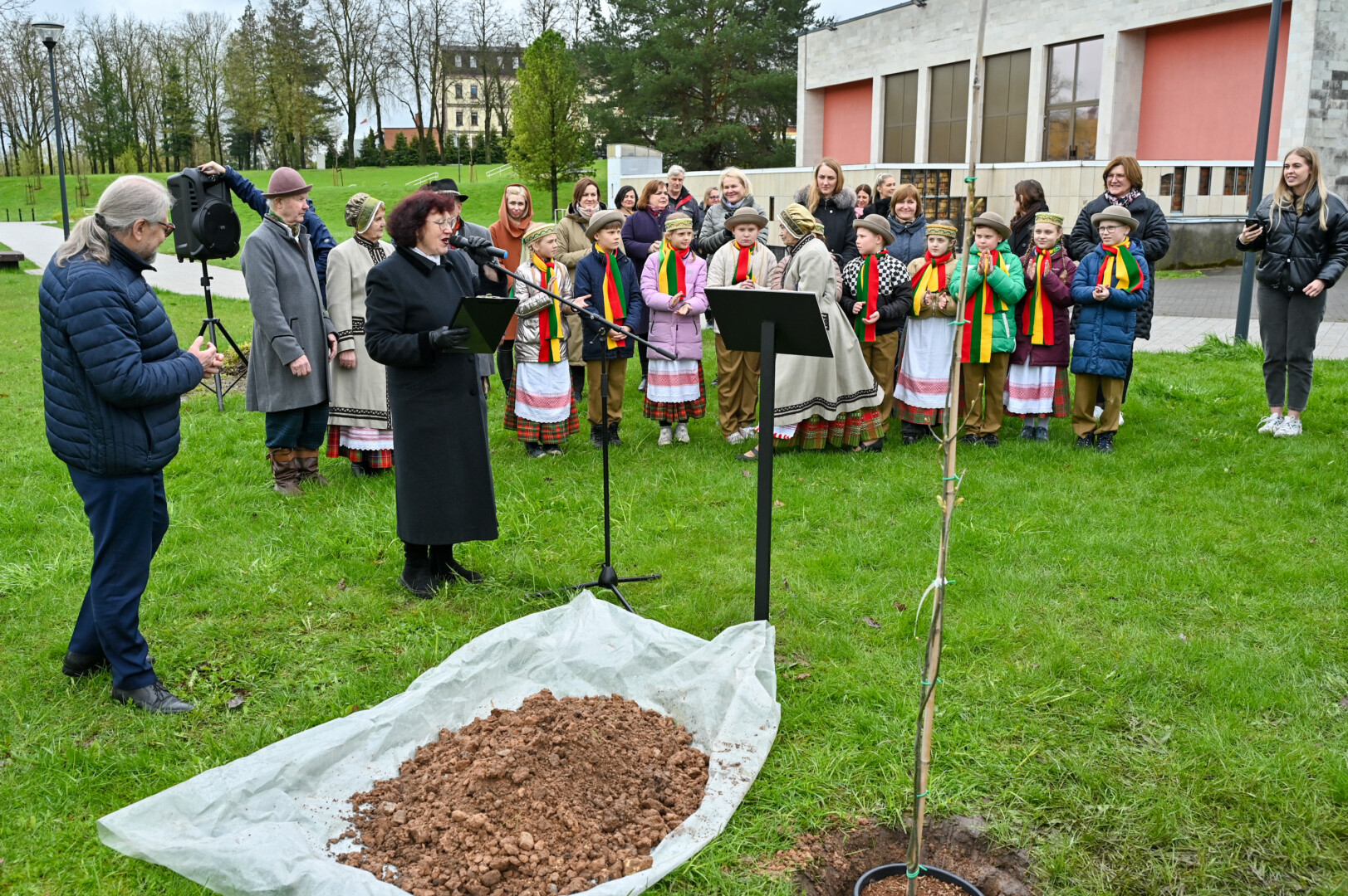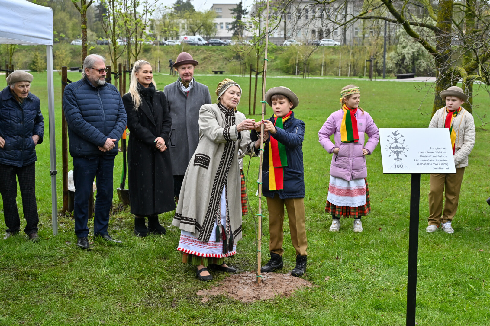 Panevėžiečiai prisijungė prie iniciatyvos įamžinti Lietuvos dainų šventės šimtmetį ir prie šventės dalyvių kalvės – Panevėžio kultūros centro – pasodino šimtmečio ąžuoliuką.