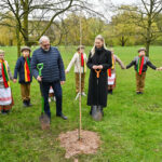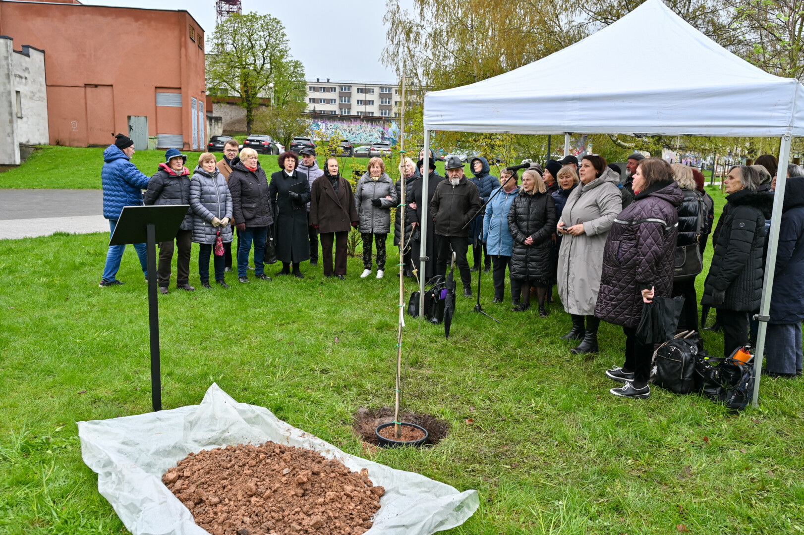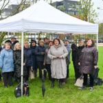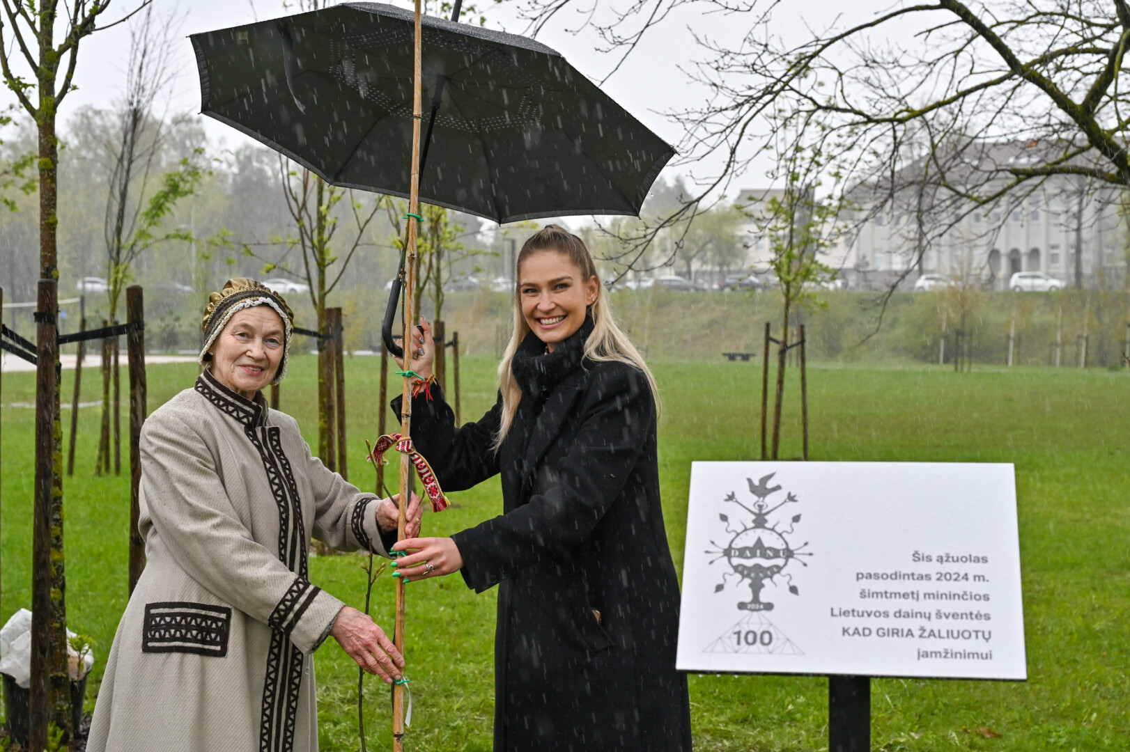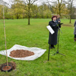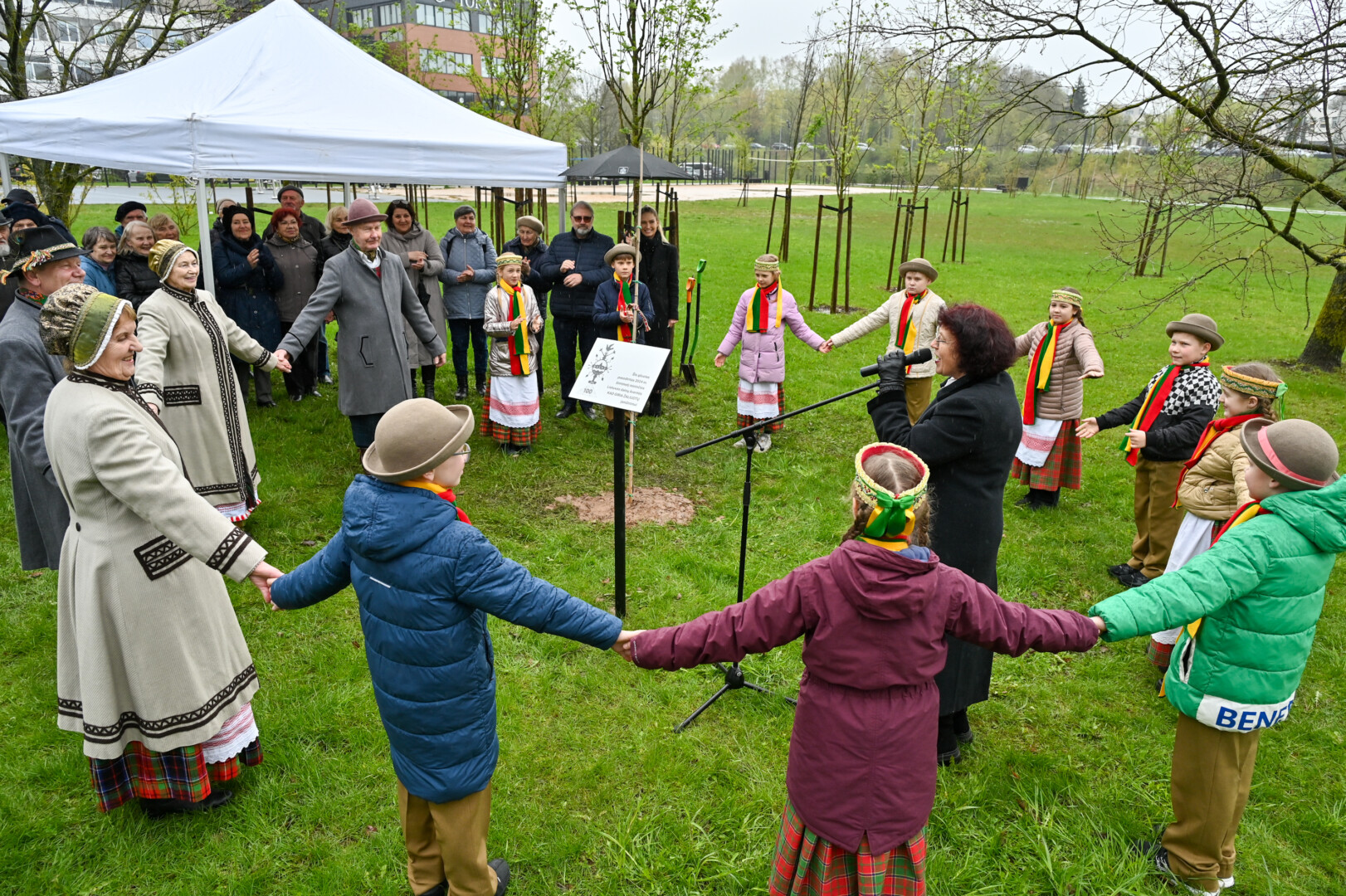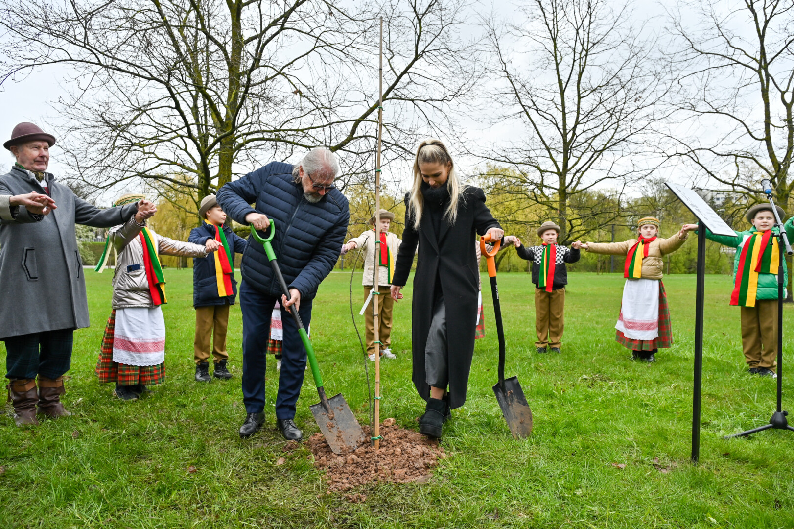 Panevėžiečiai prisijungė prie iniciatyvos įamžinti Lietuvos dainų šventės šimtmetį ir prie šventės dalyvių kalvės – Panevėžio kultūros centro – pasodino šimtmečio ąžuoliuką.