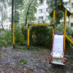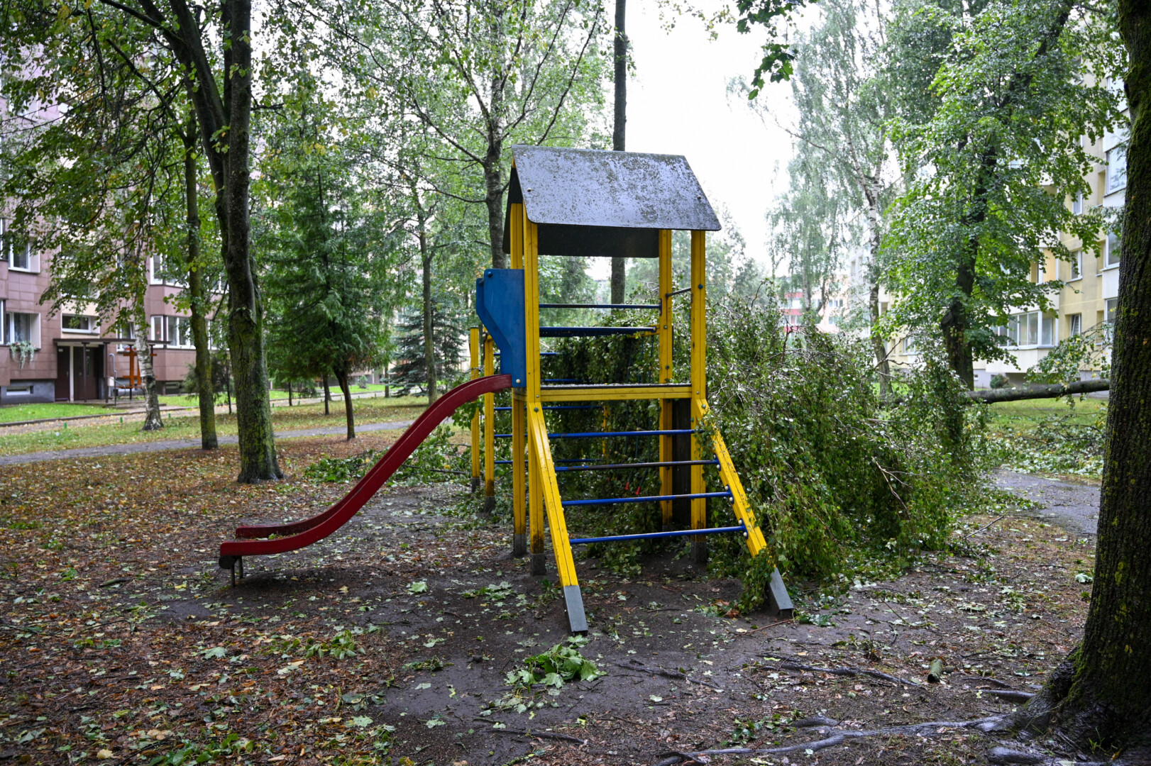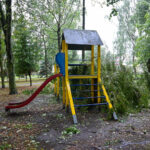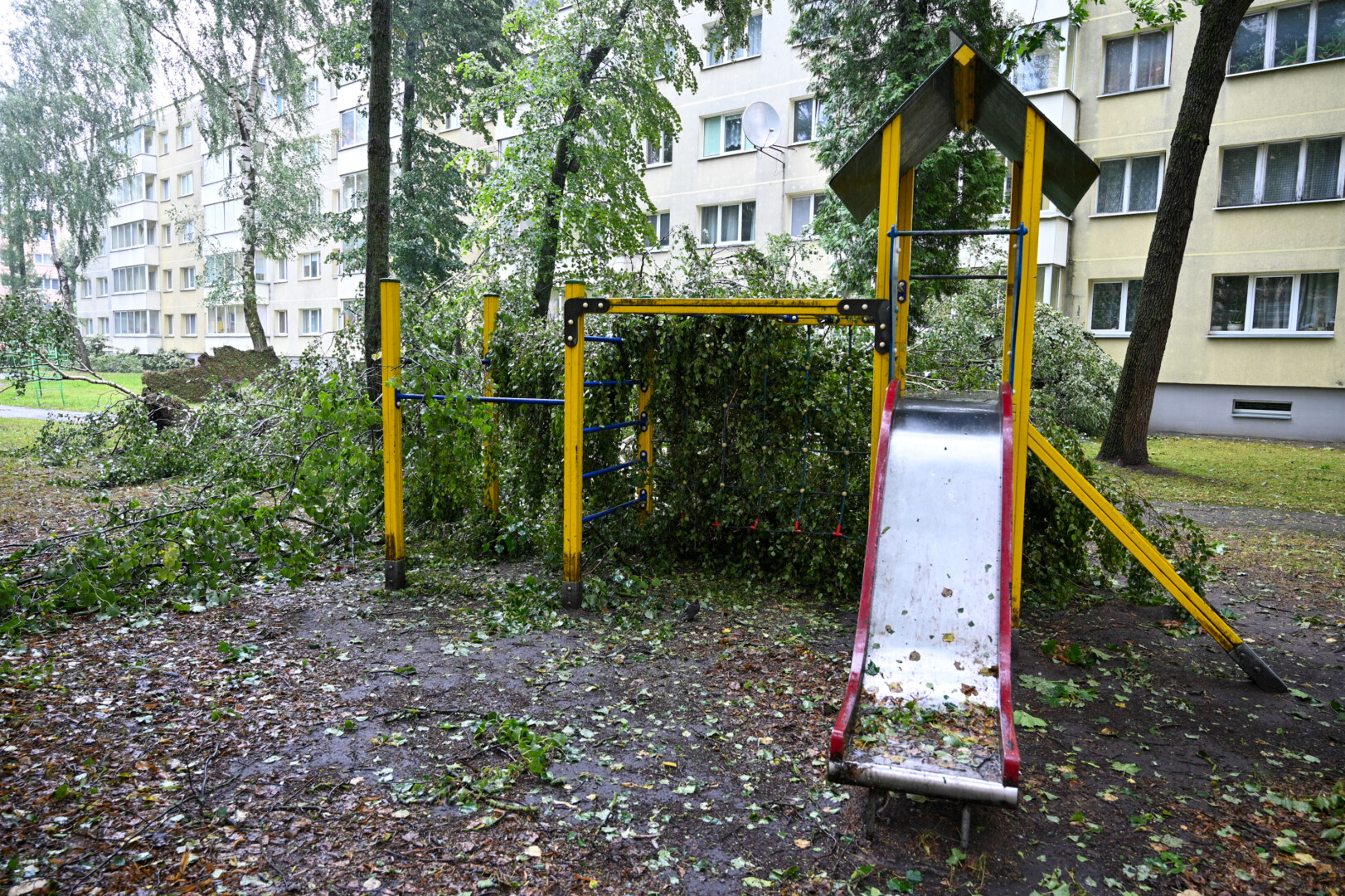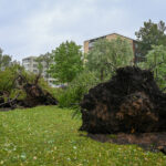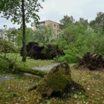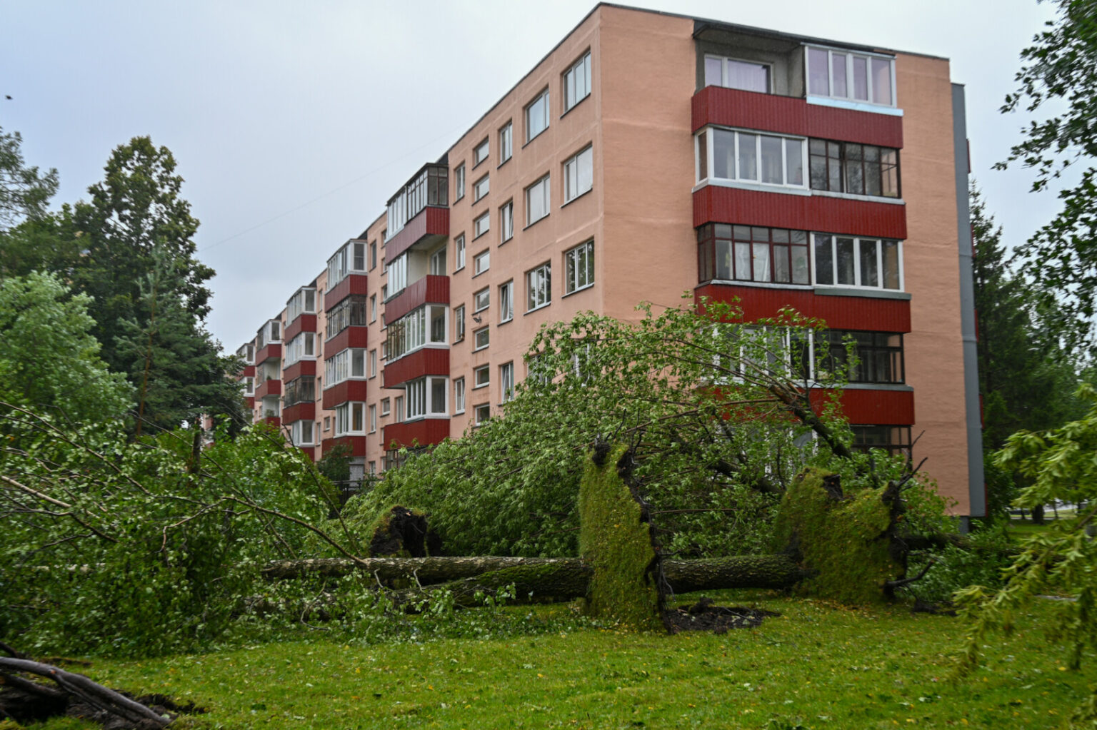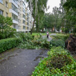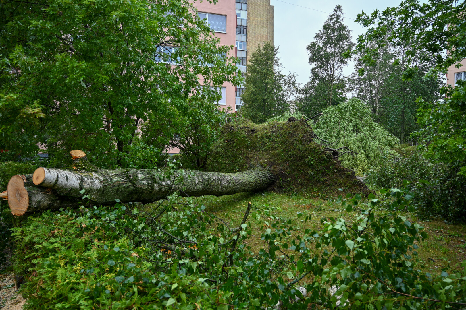 Panevėžyje vėjas ne tik laužė, bet ir rovė medžius. Didžiulė eglė išversta Sietyno skvere, naktį Tulpių g. 16-ojo daugiabučio kieme su šaknimis išversti net keturi didžiuliai medžiai, tarp jų – ir už penkiaaukštį aukštesnis beržas.