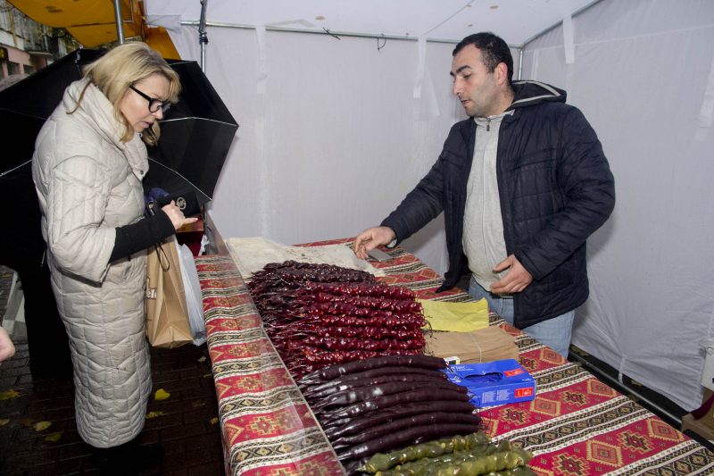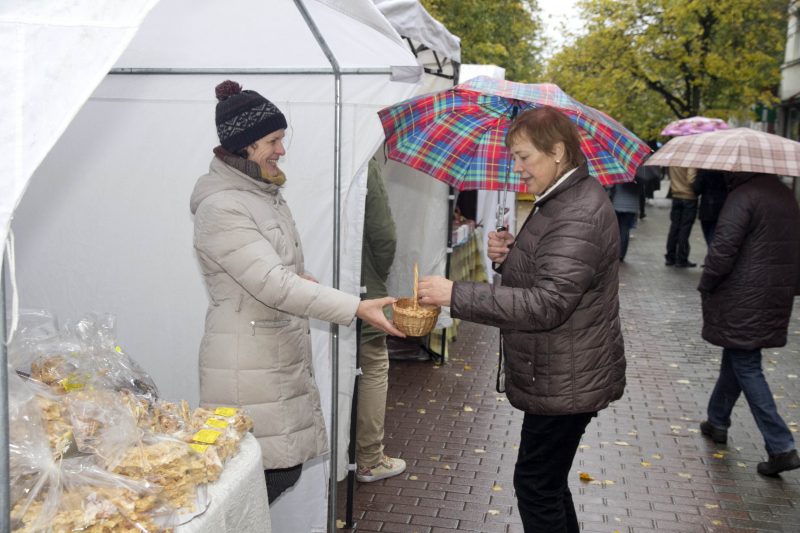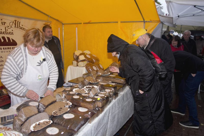 Duonos kepėja iš Daujėnų Panevėžio mugėje su savo gaminiais dalyvauja jau ne pirmą kartą. Tiek duoną, pyragus, šakočius ir net girą ji gamina savo rankomis. Verslininkė tikino, kad visi produktai natūralūs, be jokių priedų. Pasak kepėjos, panevėžiečiais skųsis negalinti – net ir pliaupiant lietui žmonės stojo prie pyragais apkrauto prekystalio ir traukė iš rankinių pinigines.