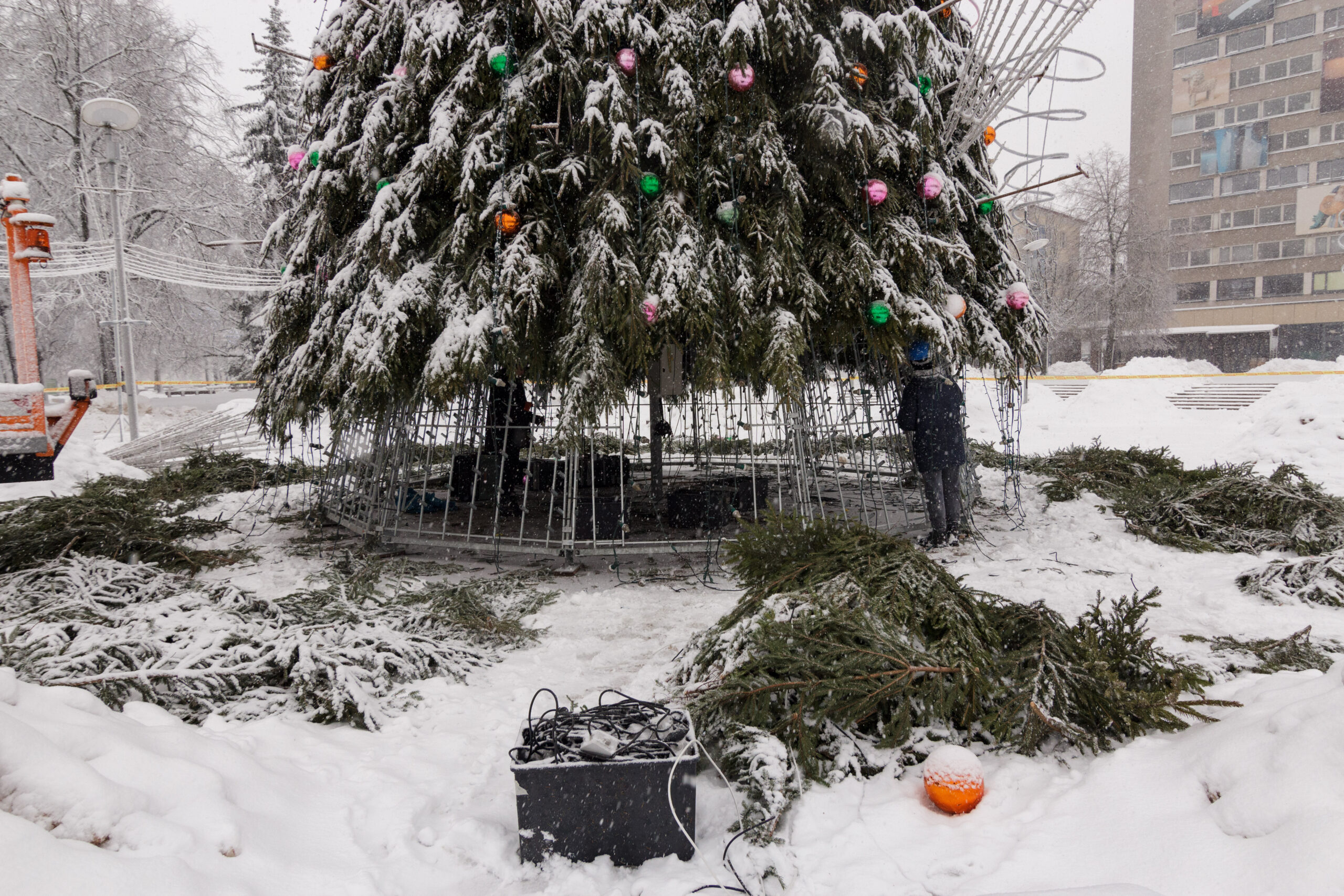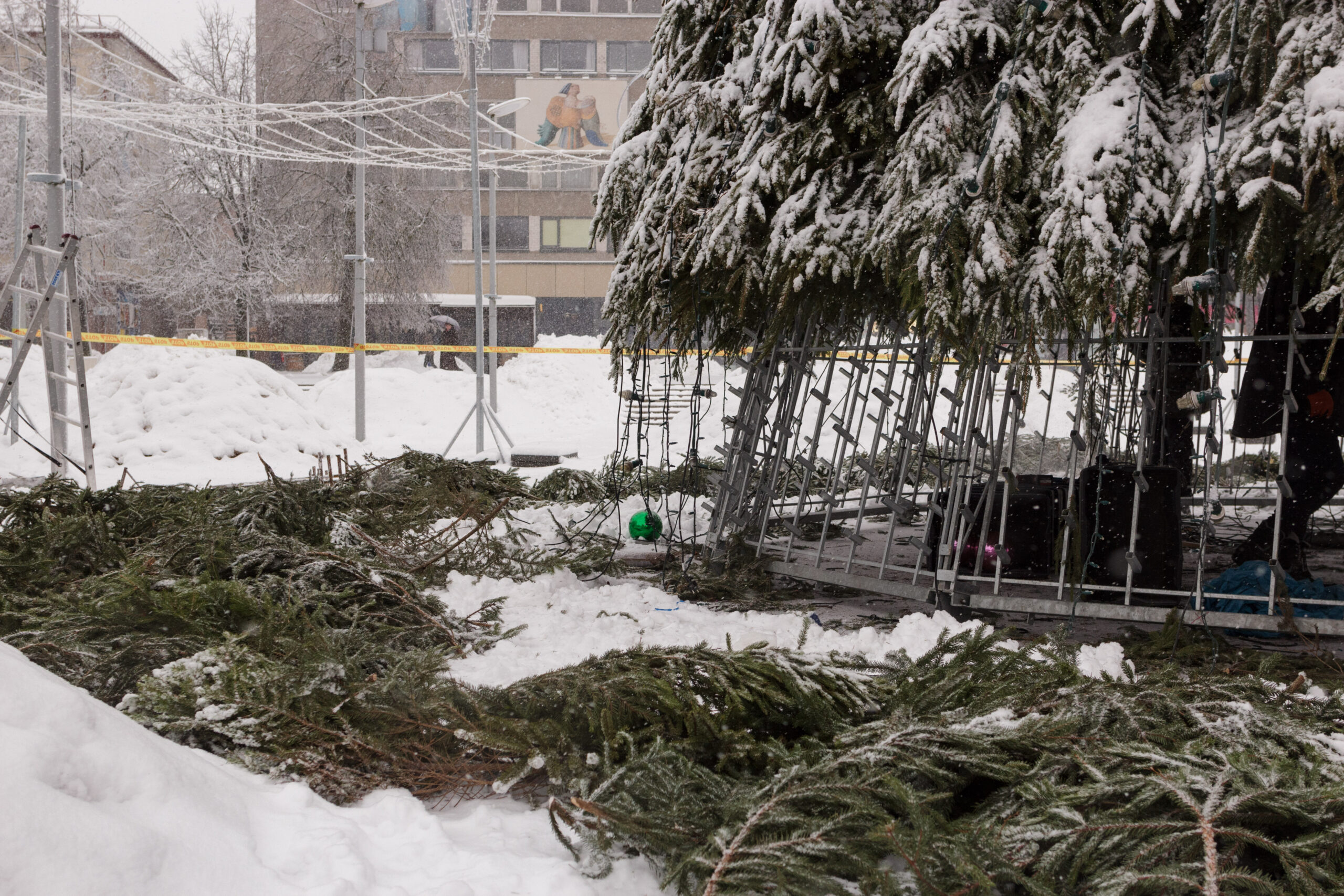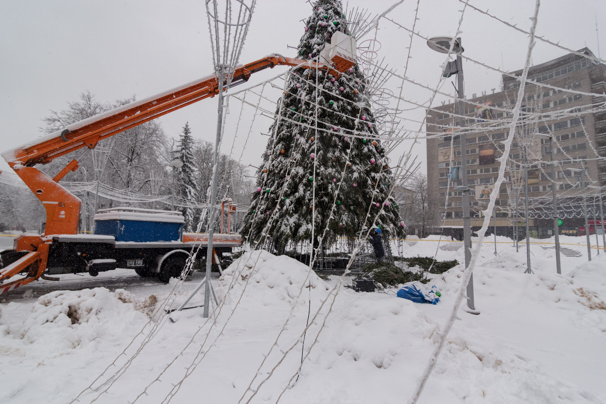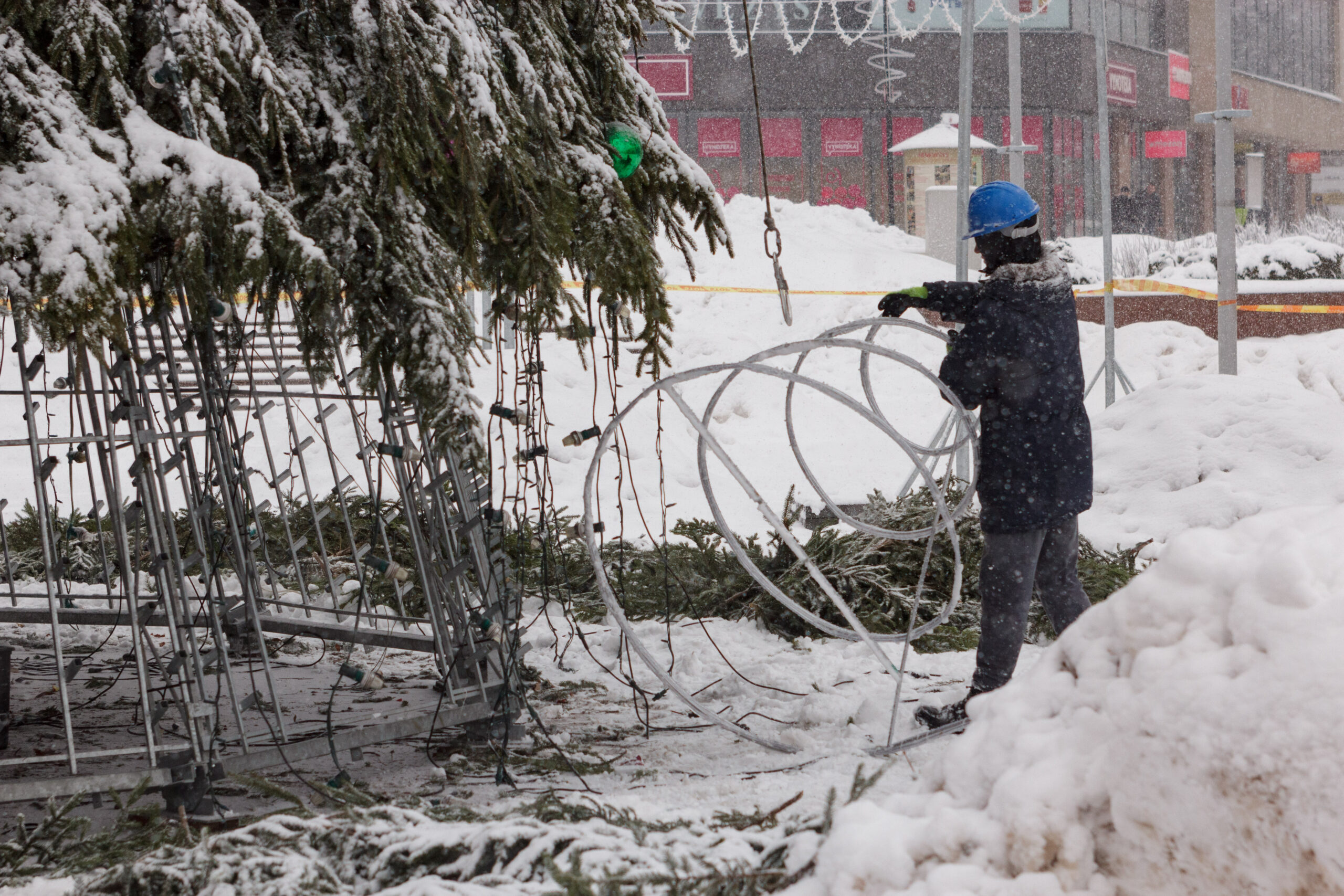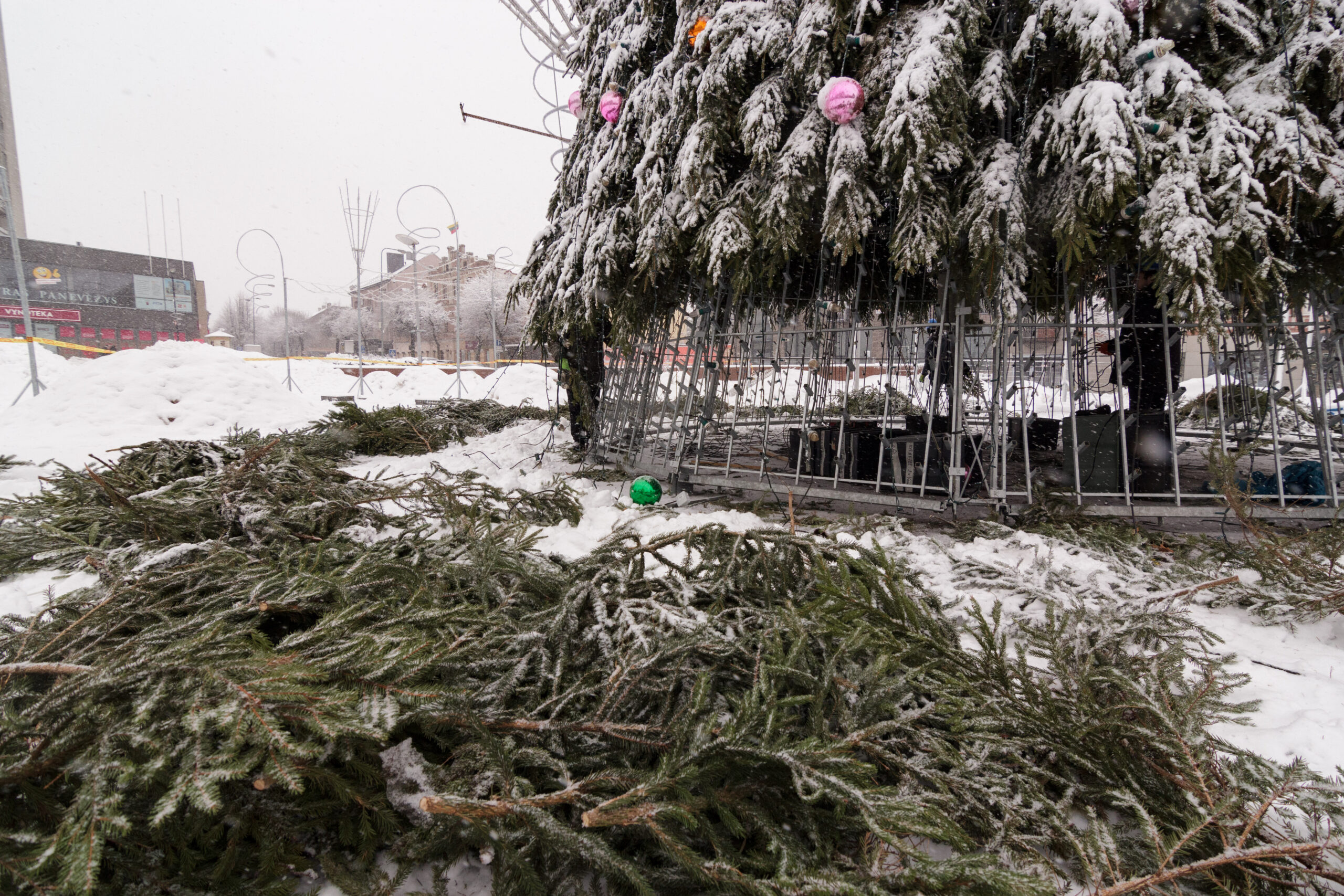 Iki kalendorinio pavasario likus trims savaitėms, Panevėžys užbaigė šventinį laikotarpį. Pirmadienį nuo ankstaus ryto Laisvės aikštėje verda eglės nupuošimo darbai.