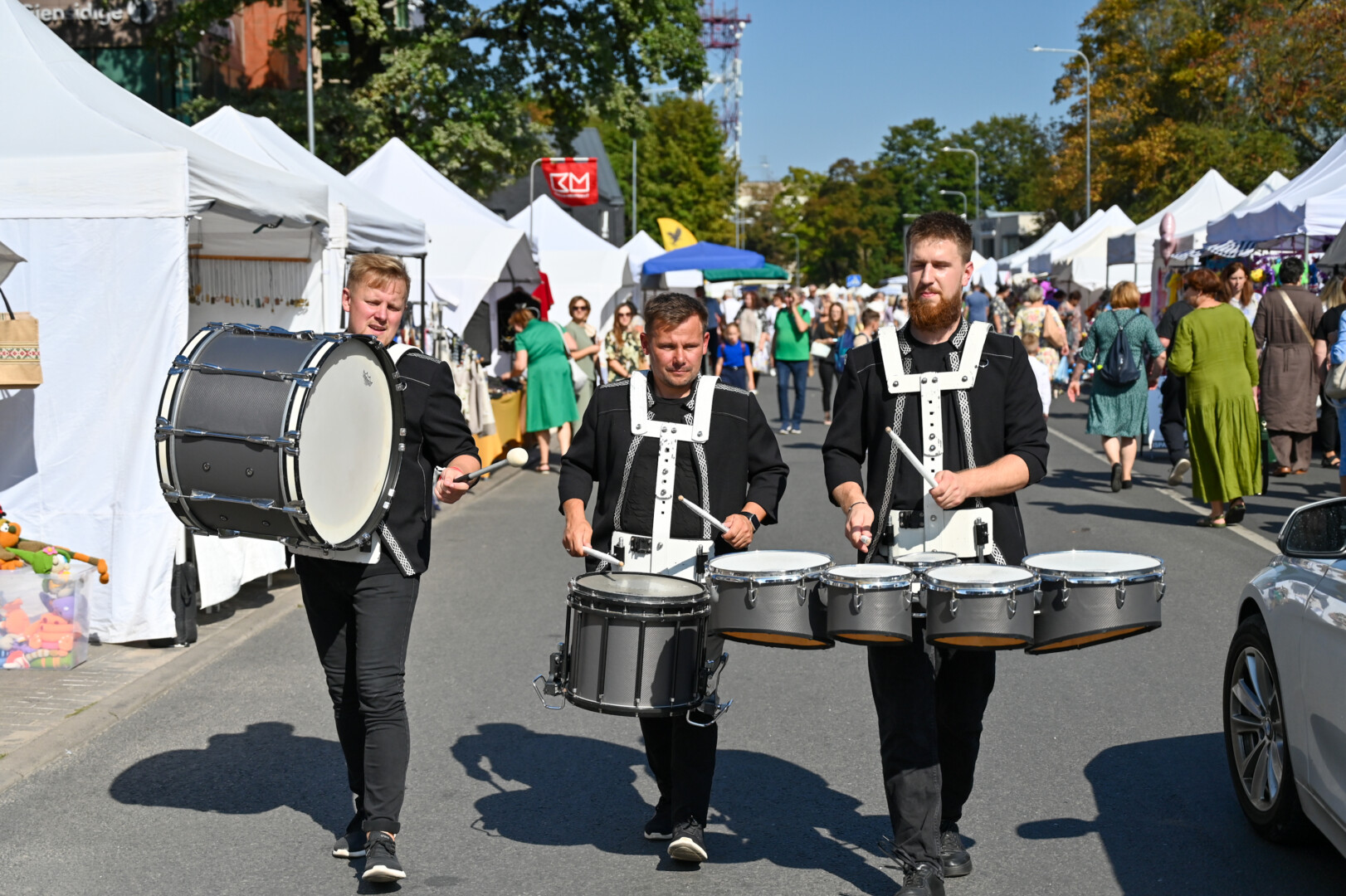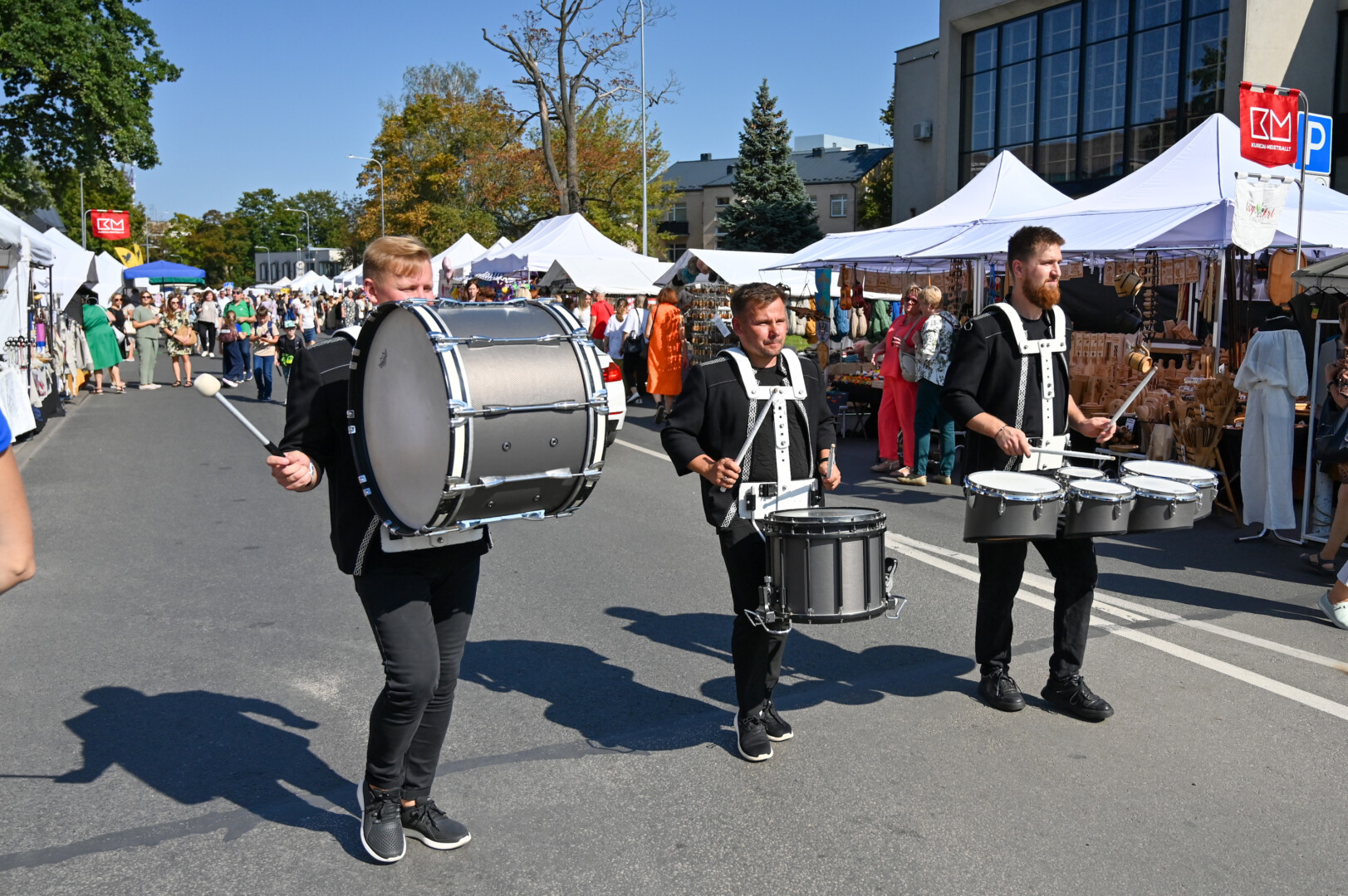 Mugės lankytojus ir jos dalyvius pirmieji pasveikino būgnininkai, žygiavę Respublikos ir J. Urbšio gatvėmis.