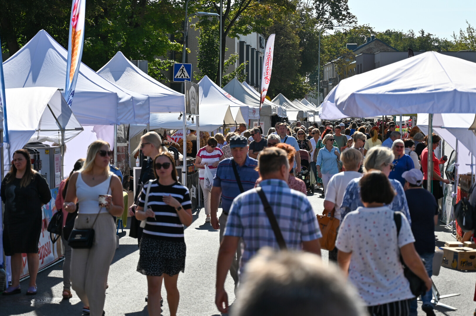 Panevėžio centre nuo penktadienio įsitaisę mugės prekeiviai. Ant jų prekystalių – tekstilės ir namų apyvokos daiktai, gausybė įvairiausių prekių, saldumynų, nosį kutena rūkytos žuvies ir ką tik iš rūkyklos atvežtų dešrų kvapai.